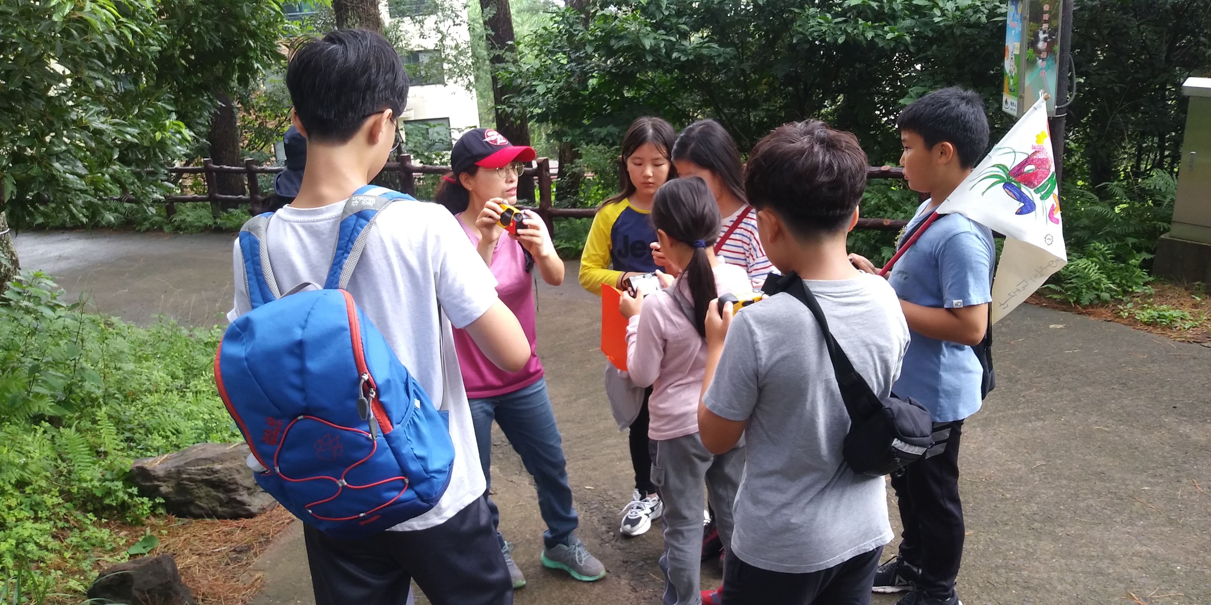 처음 만져보는 일회용카메라가 신기하기만 하는 친구들.