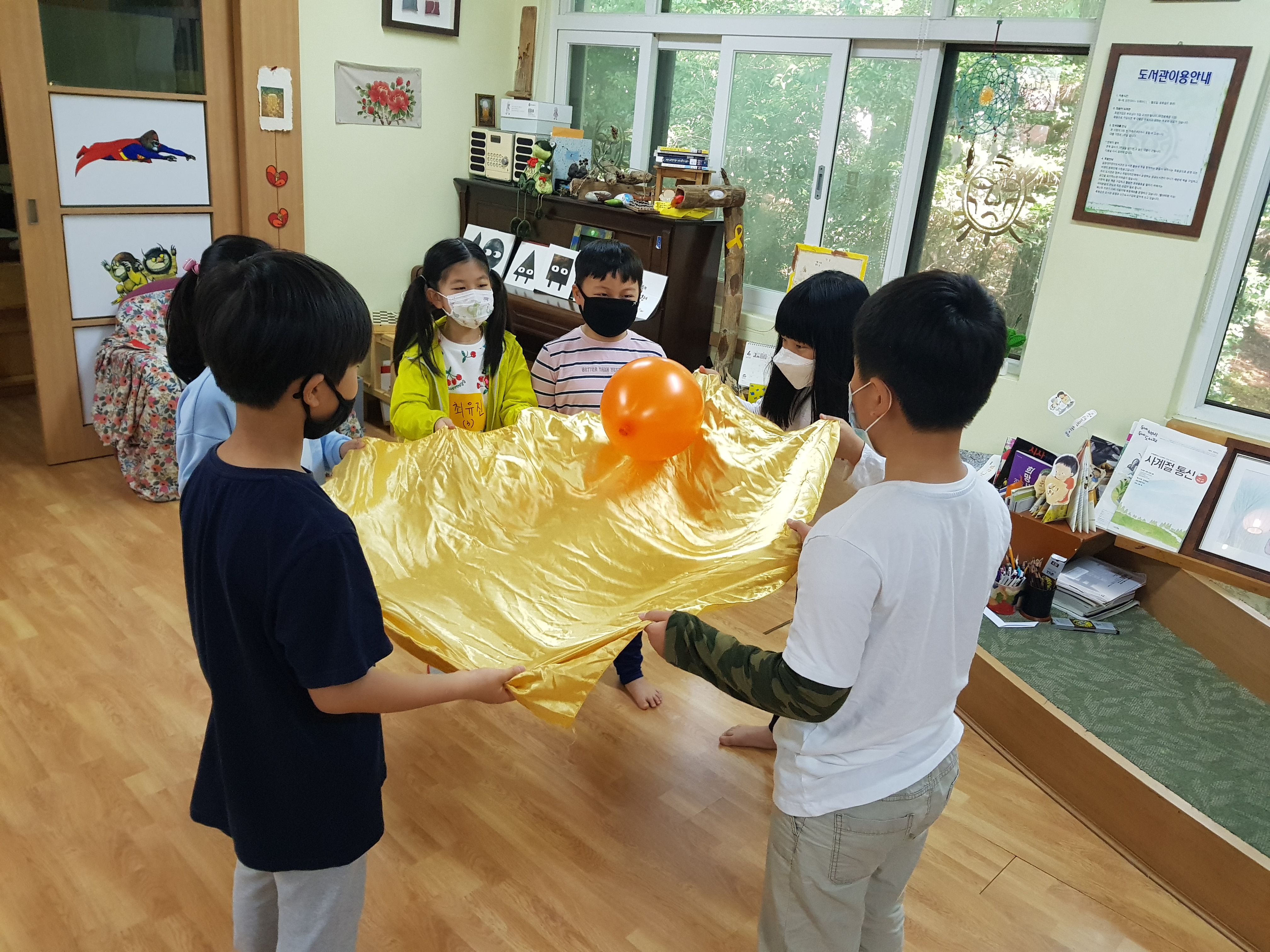 출렁이는 보자기를 따라 몸도 함께 움직인다.