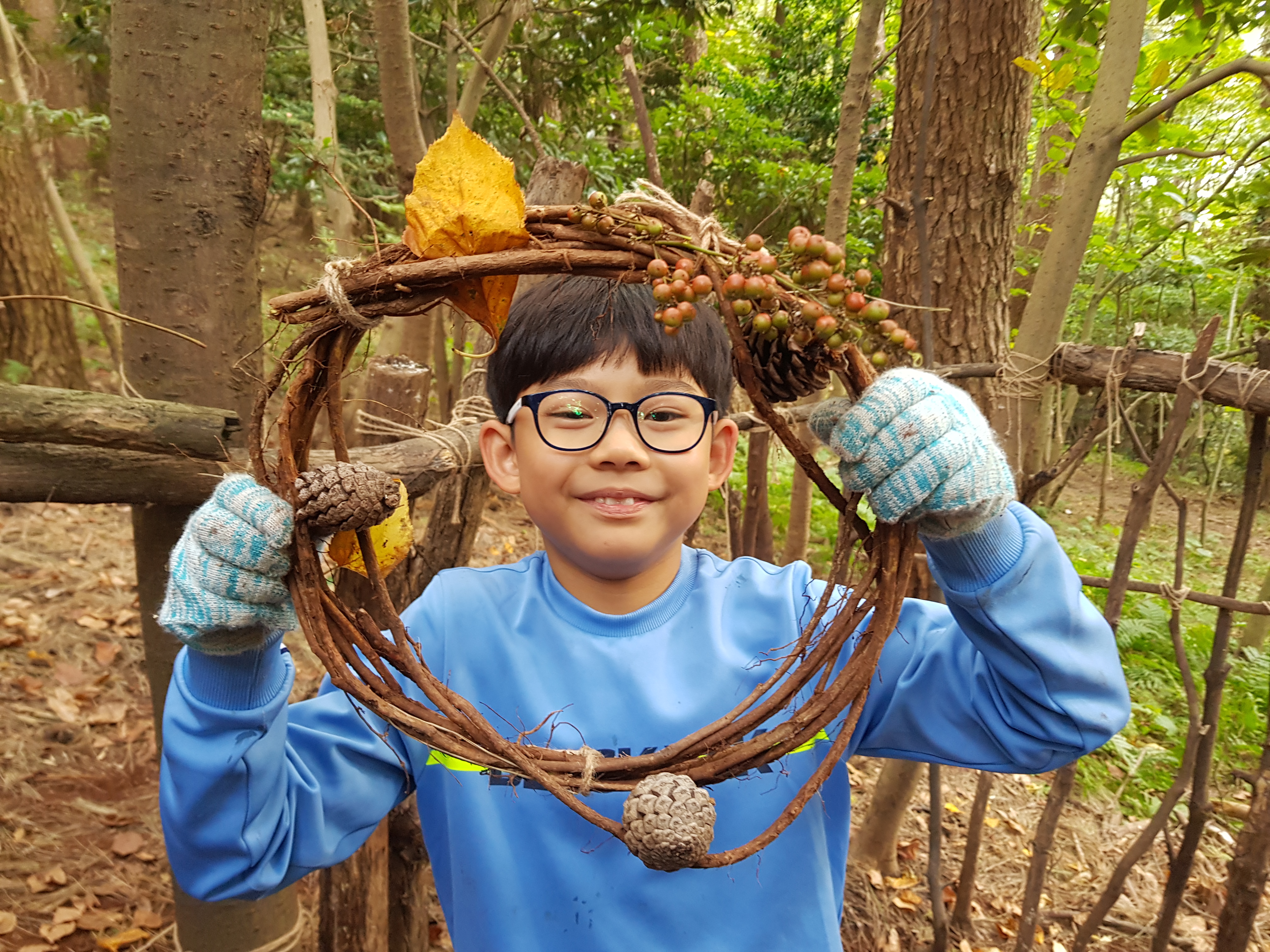 깃털과 새둥지로 만든 장식이 너무 맘에 드는 찬민이.