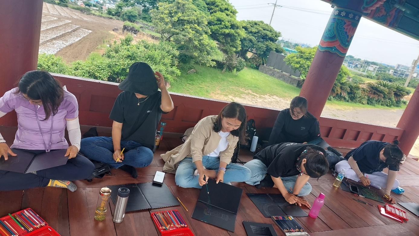우리가 느끼고 온 비양도를 색연필로 표현한다.