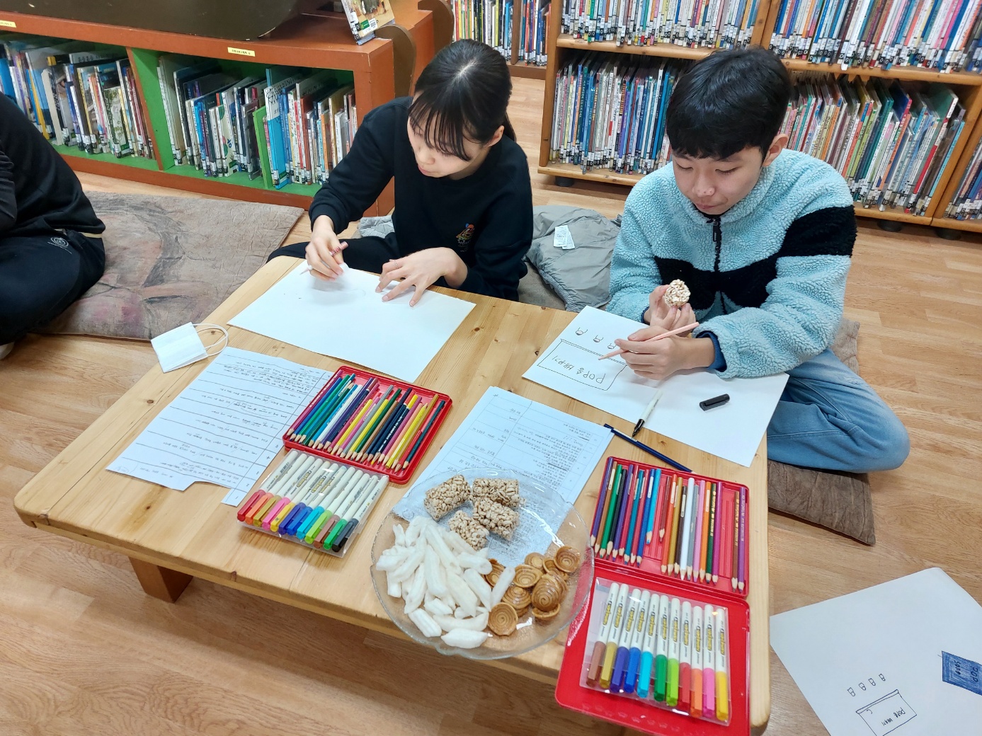 과자의 도움으로 쓱쓱 싹싹 그리는 민서 & 인