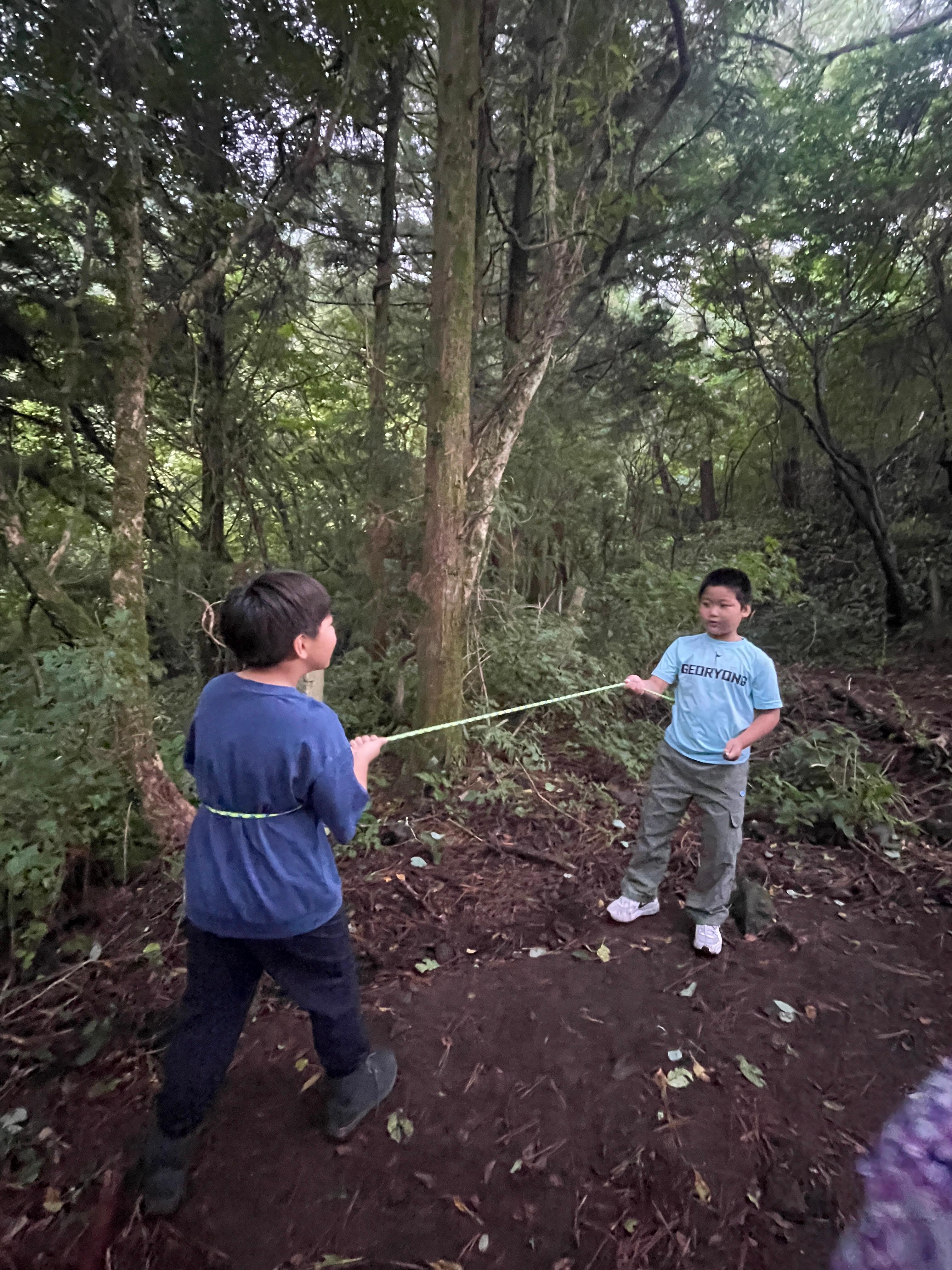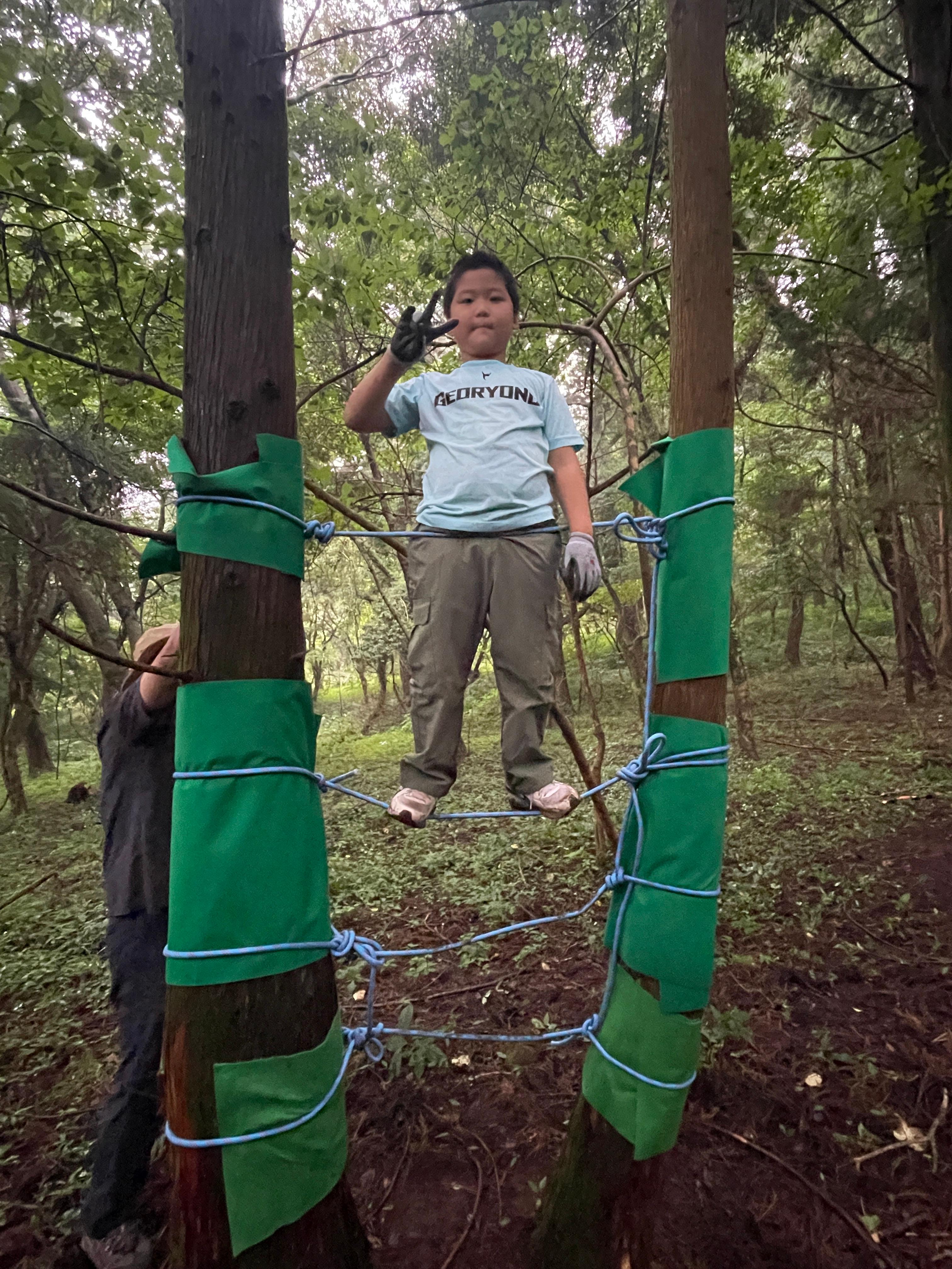 엉성하지만 우리가 만든 밧줄 놀이터라 신난다.