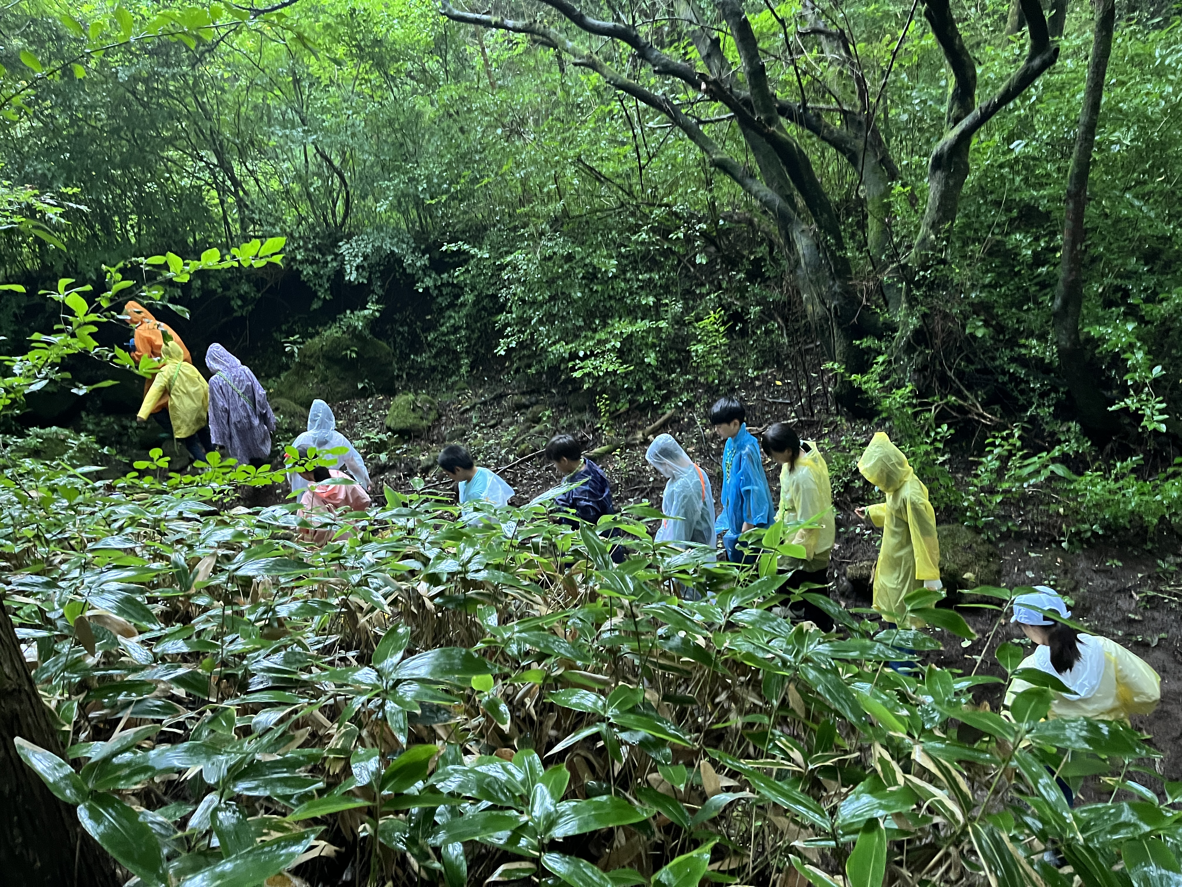 비옷을 입어서 불편하지만 어린이들은 아주 잘 뛴다.