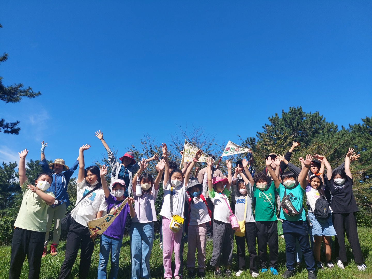 아름다운 자연 안에 친구들이 있다.