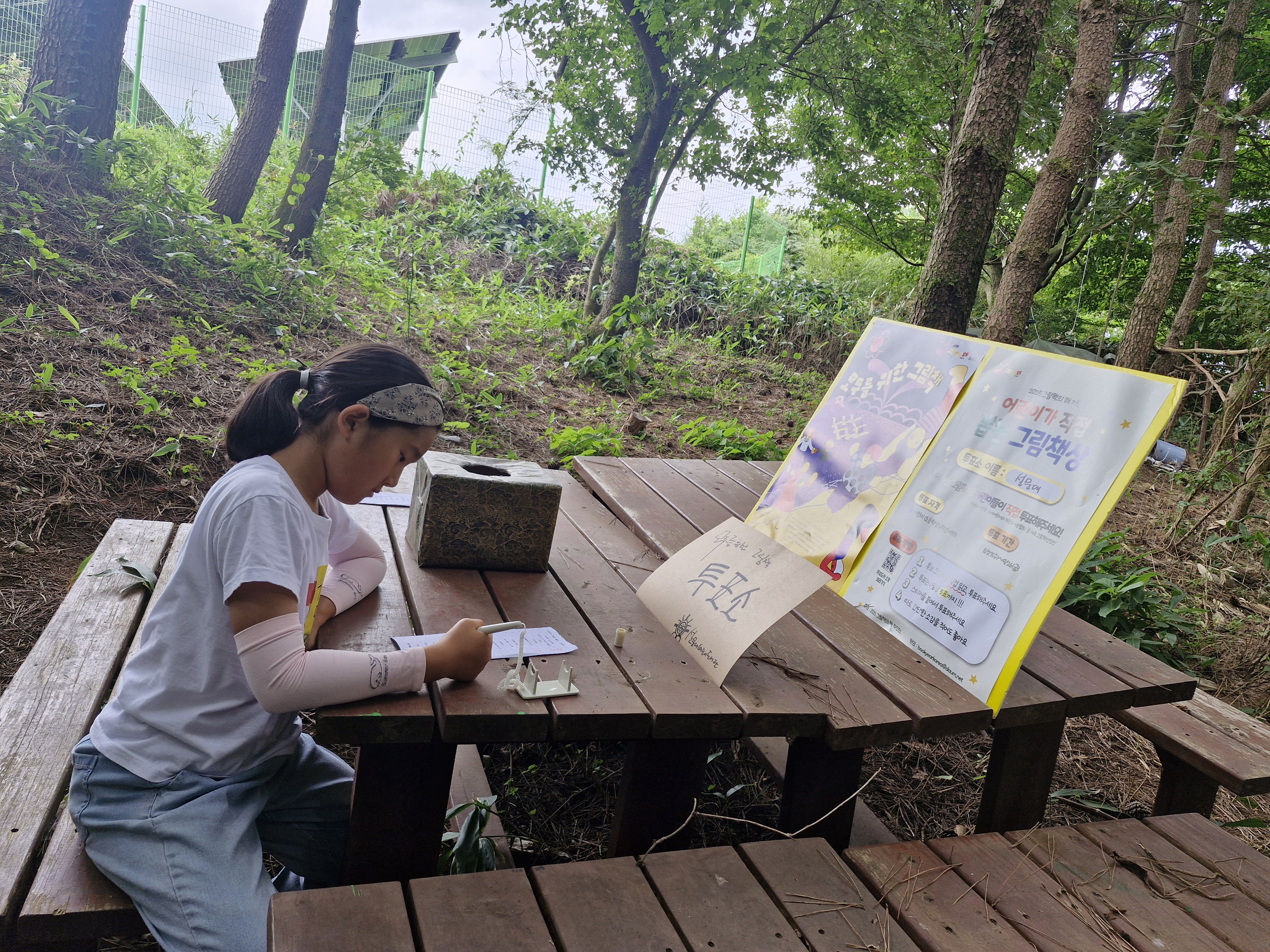 숲속에 투표소가 마련되었다.