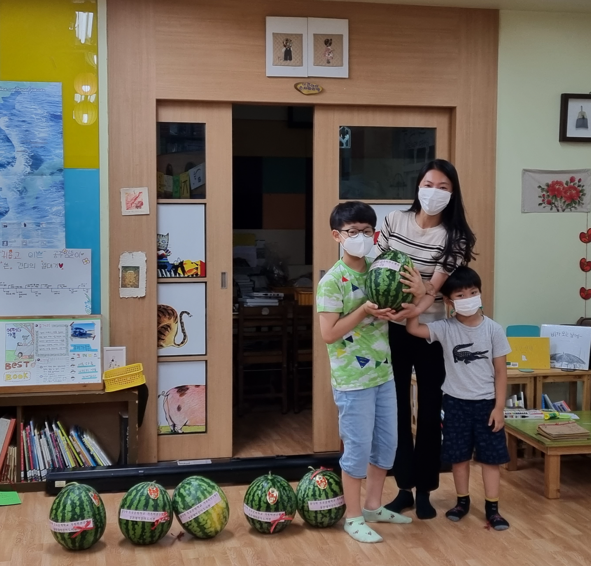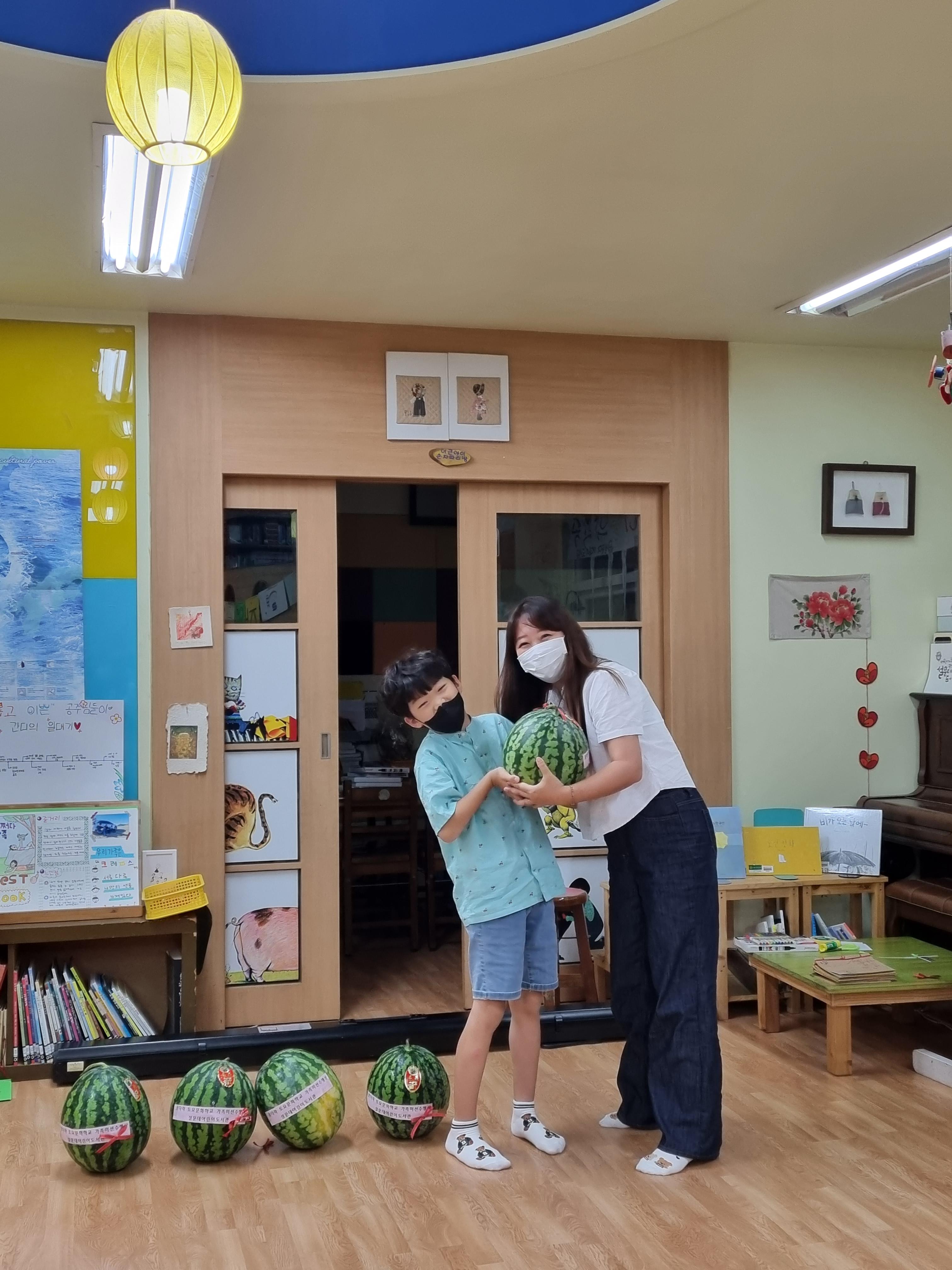 수박 한덩이에 함박 웃음꽃이 피었습니다.
