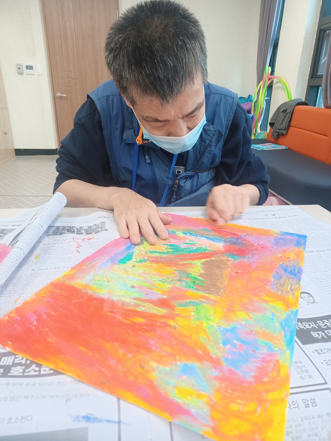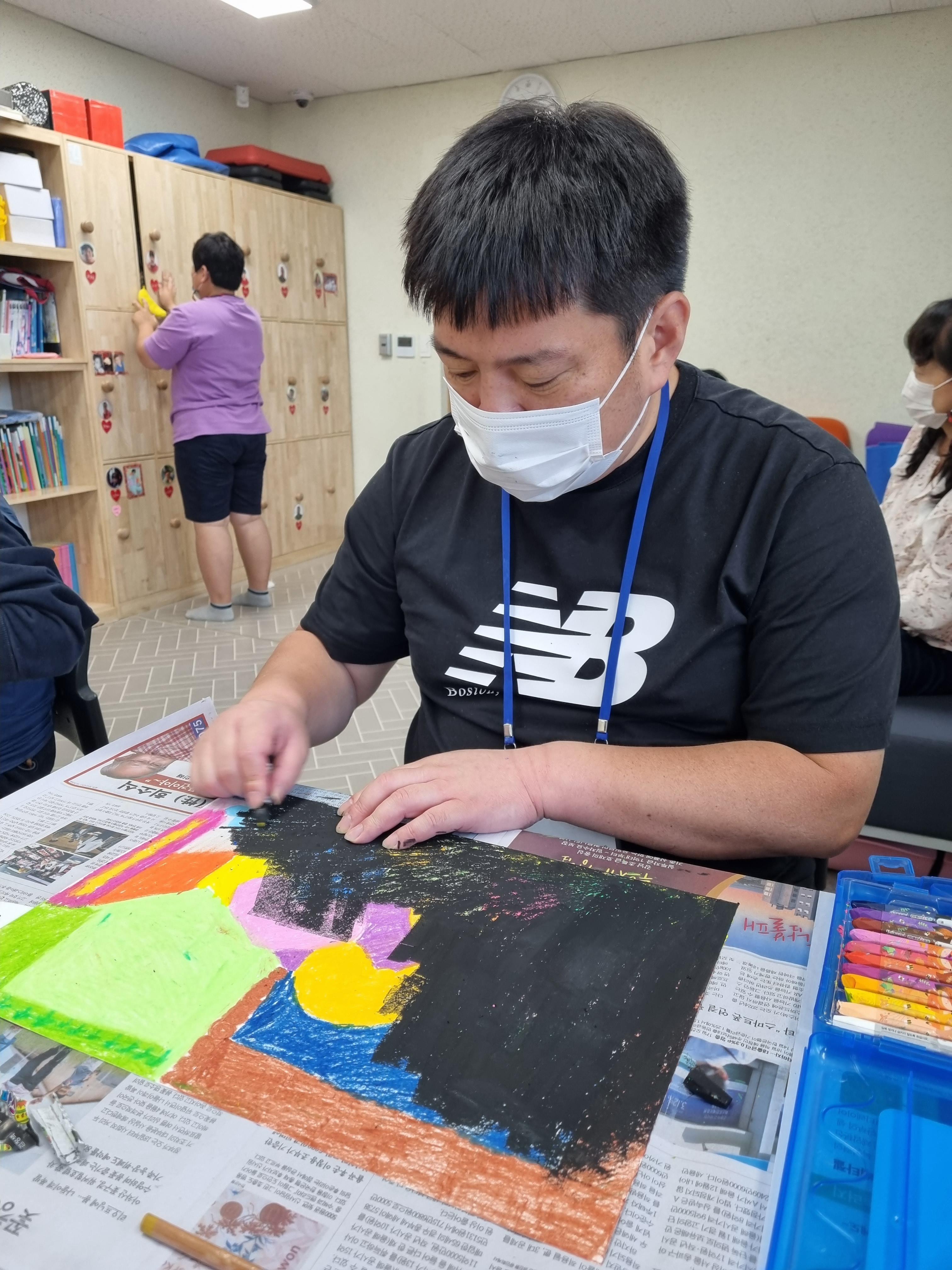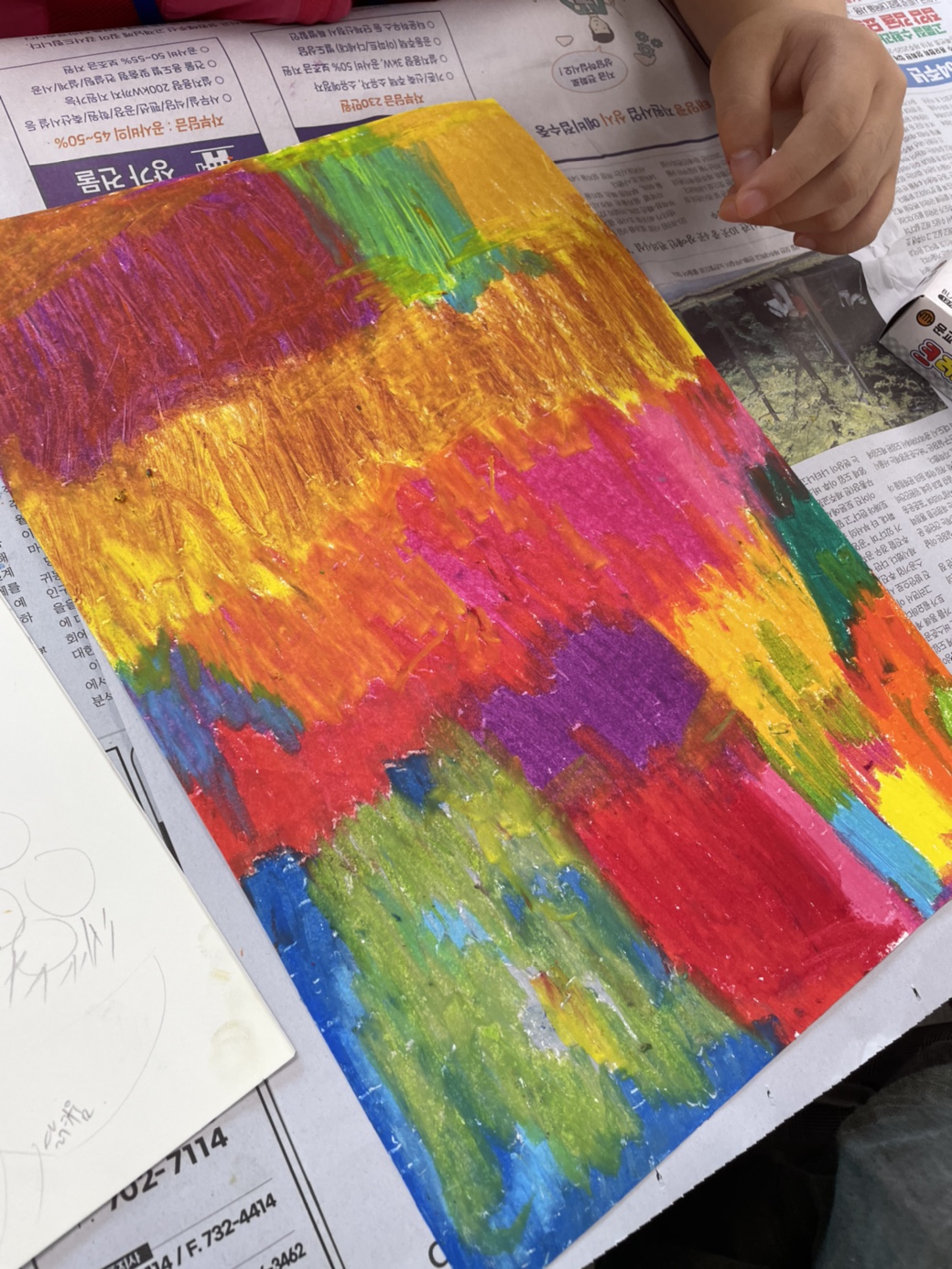 크레파스로 알록하게 색을 칠합니다.