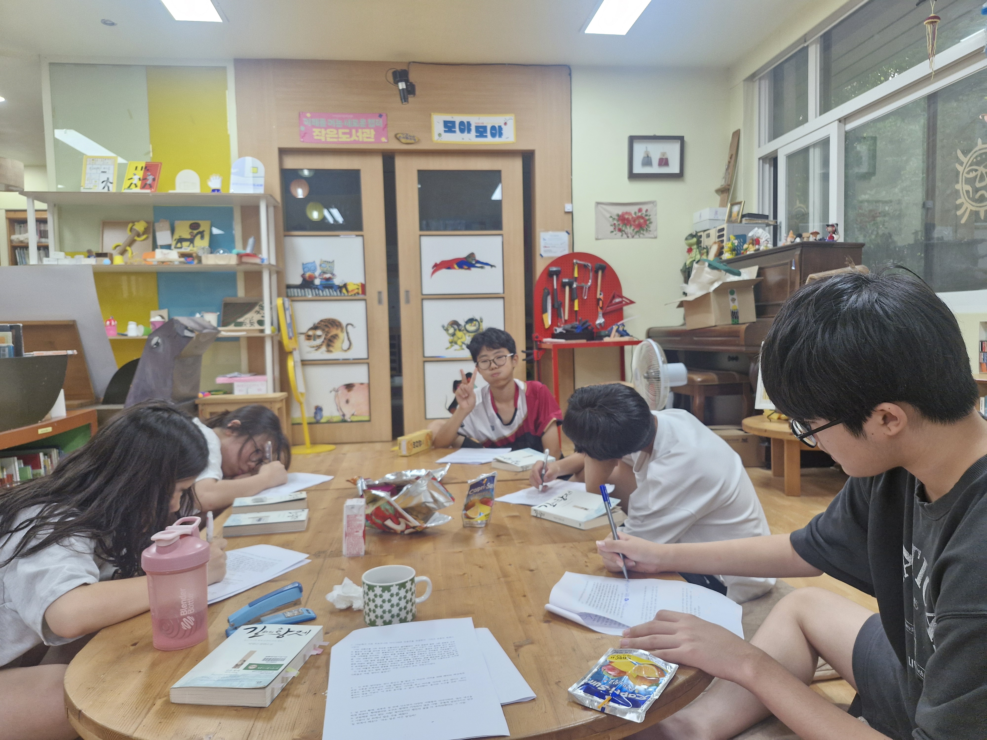 학교가 다른 친구들이 모여 함께 할 수 있는 도서관.