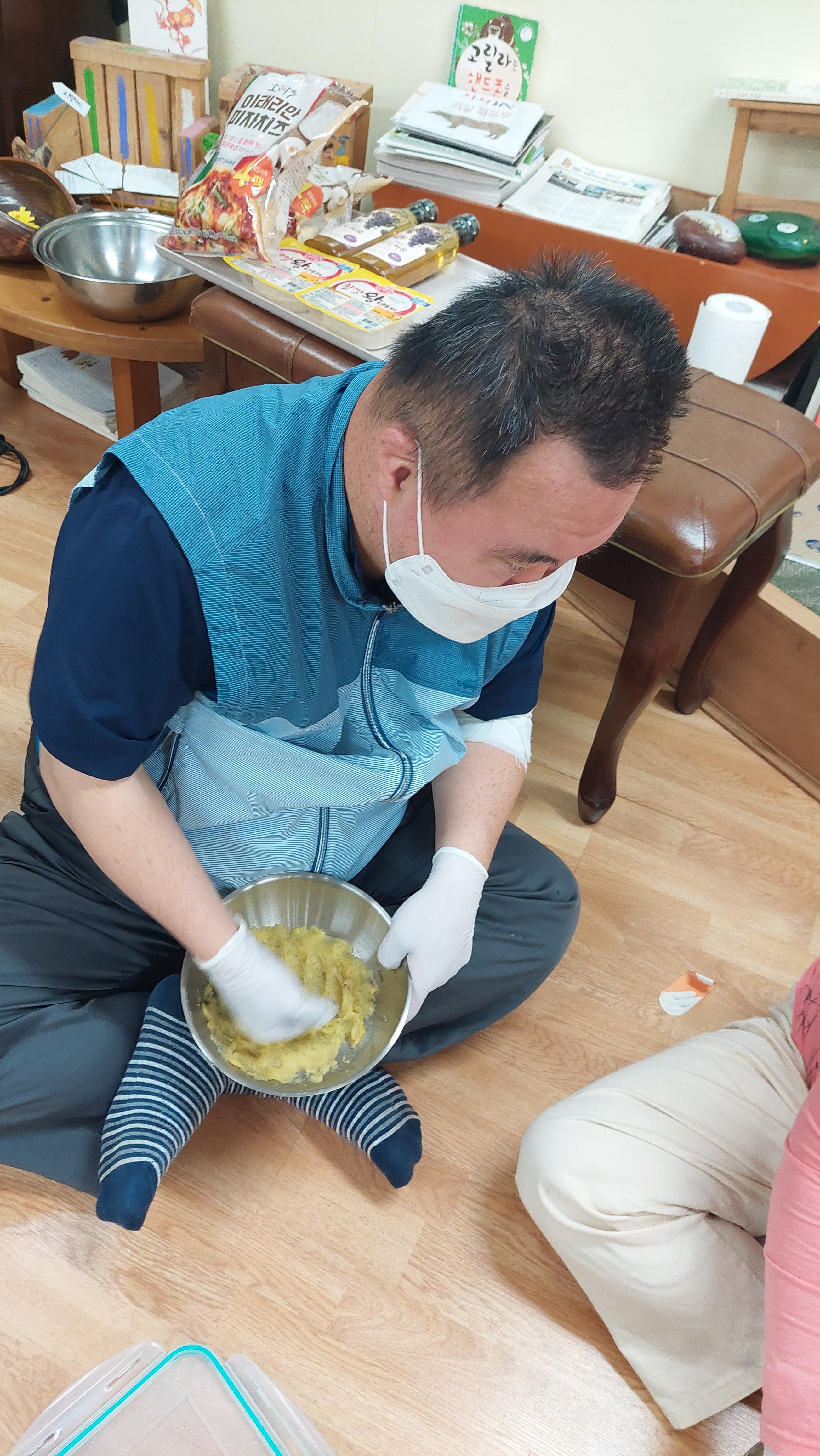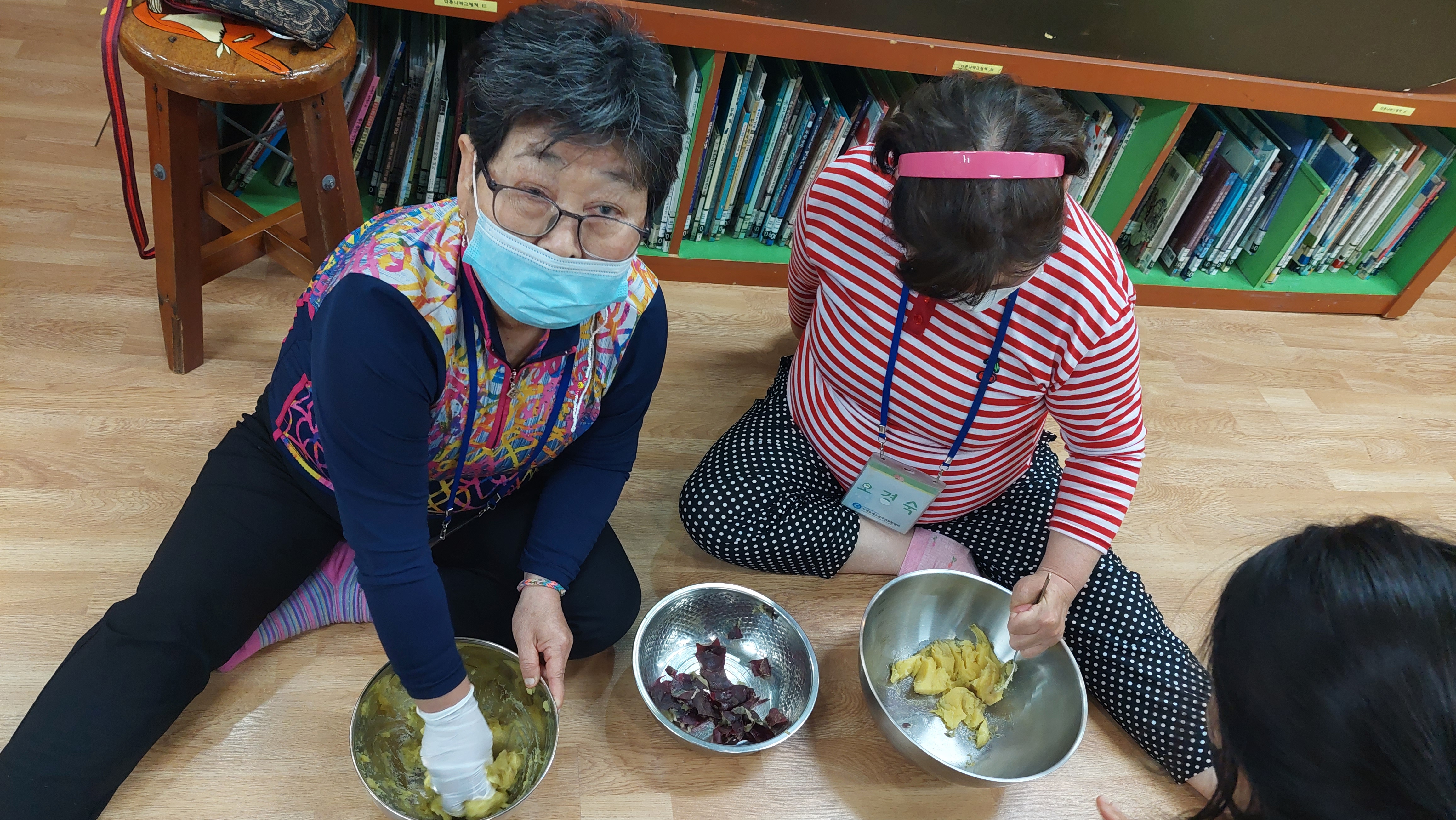 꾸욱 꾸욱 고구마를 으깨서