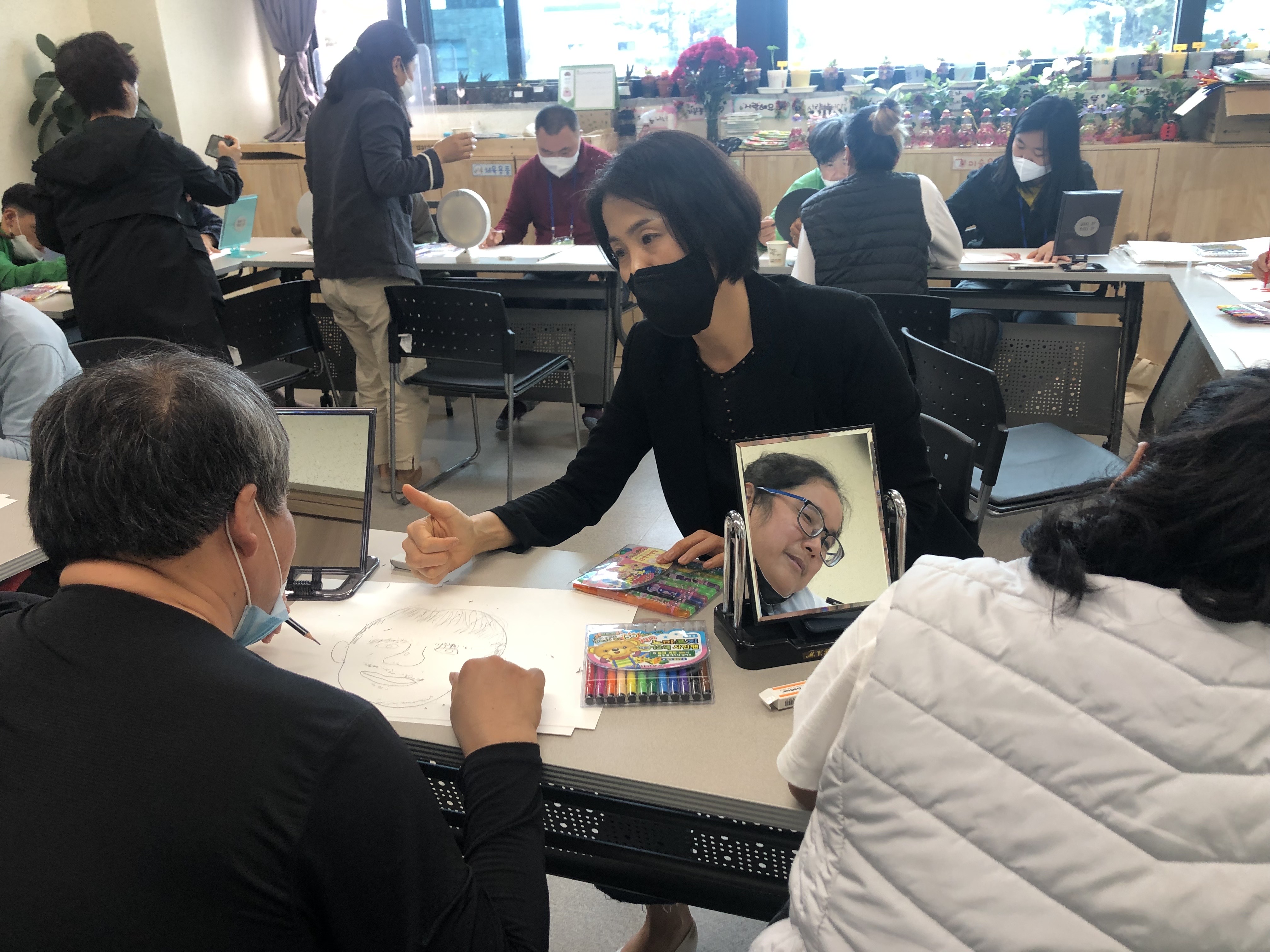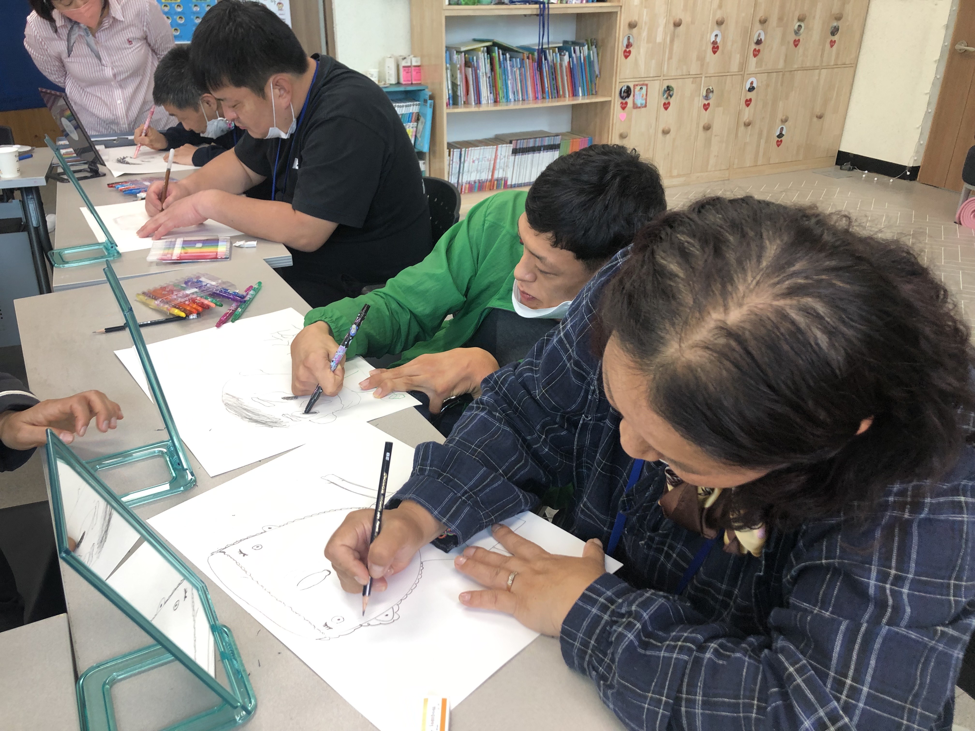 늘 보는 얼굴이지만 거울로 자세히 보며 내 얼굴을 그린다.