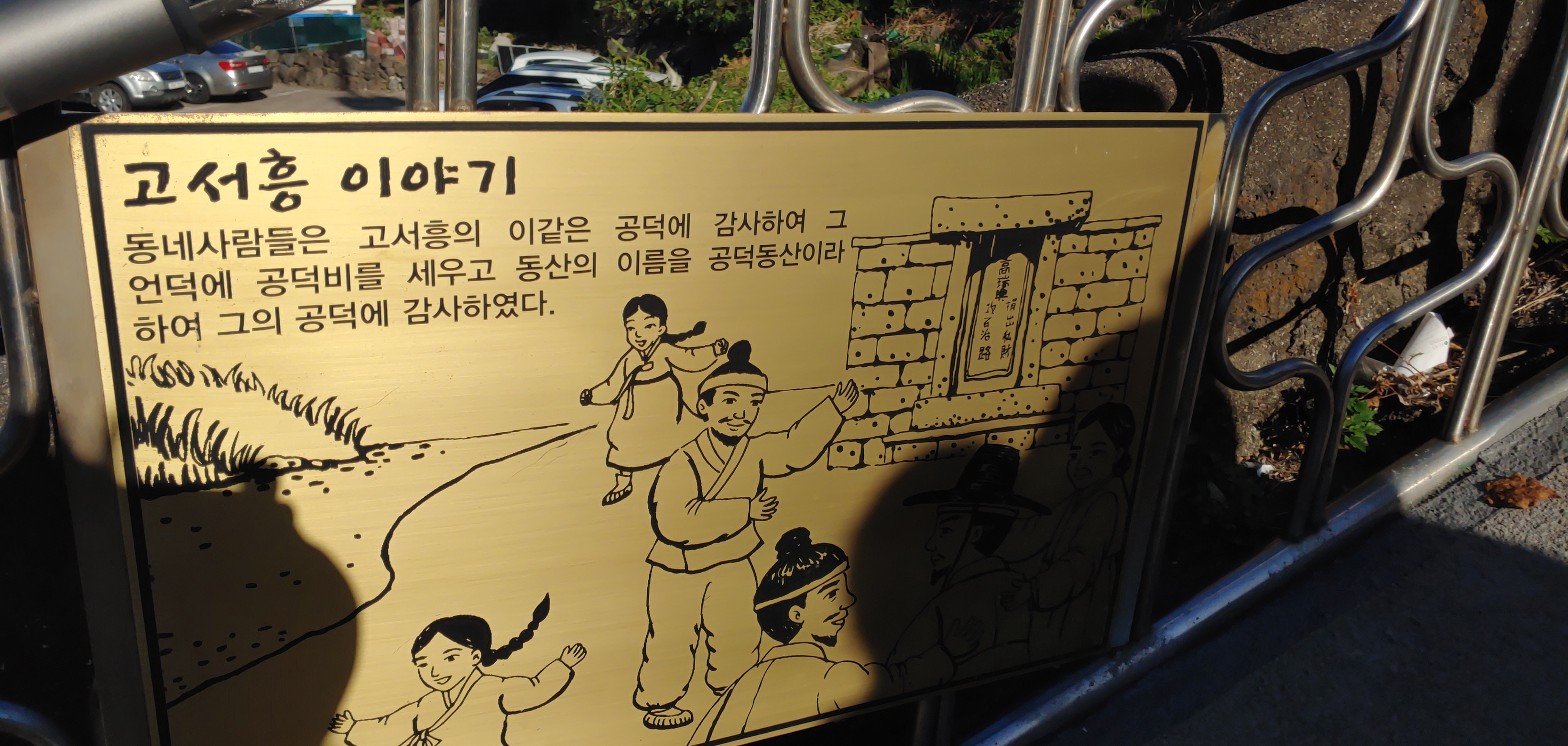 동네 사람들은 고서흥의 이같은 공덕에 감사하여 언덕에 공덕비를 세우고 동산의 이름을 '공덕동산'이라 하였다.