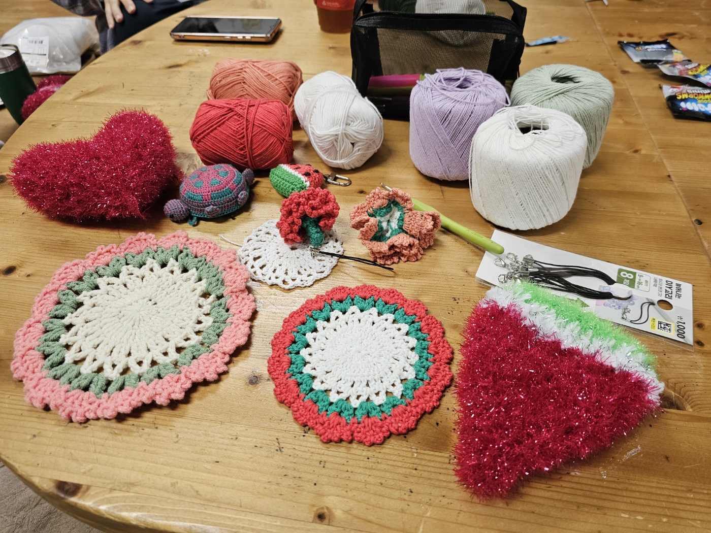도서관에서 수세미 뜨기에 집중합니다.
