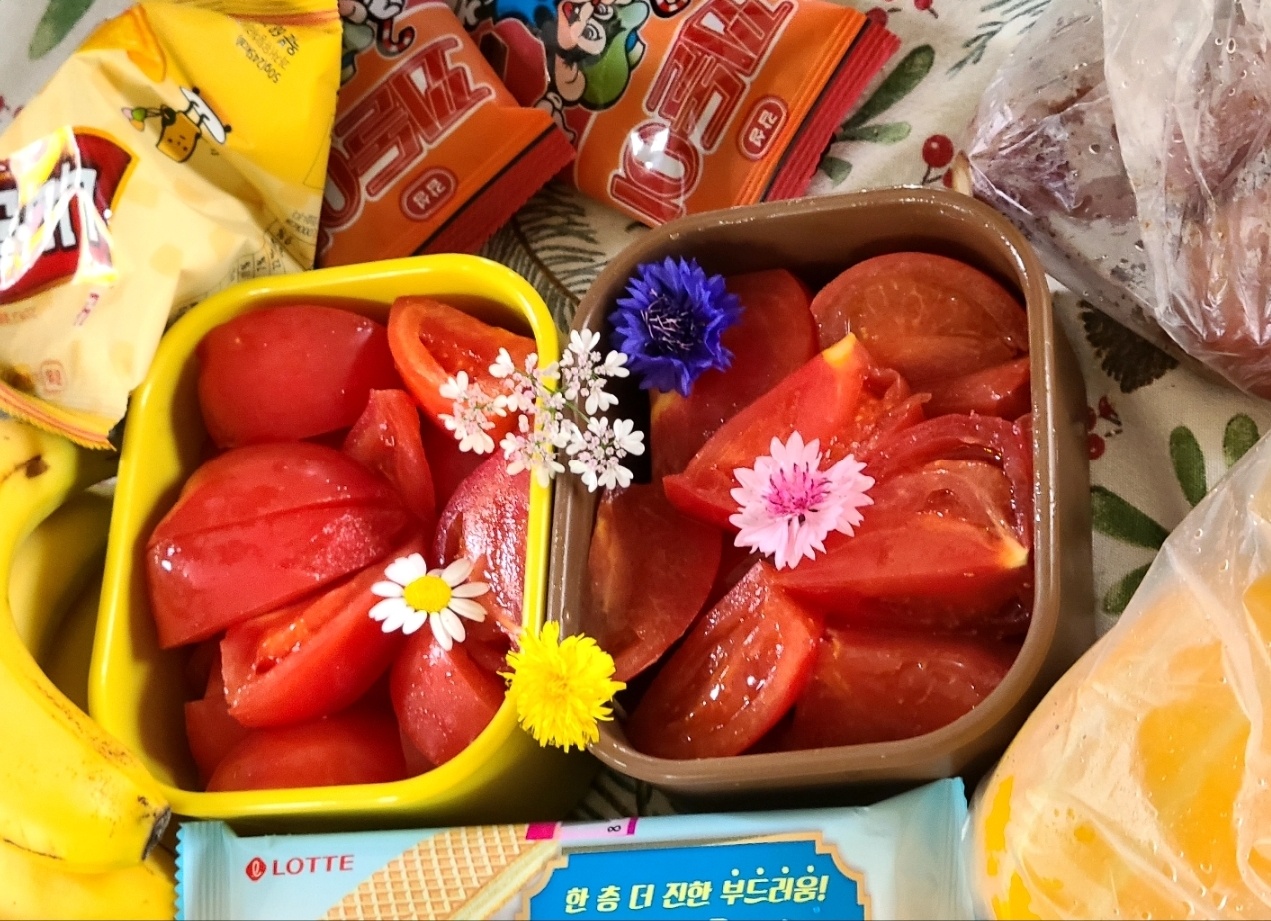 꽃을 들고 집으로 갑니다.