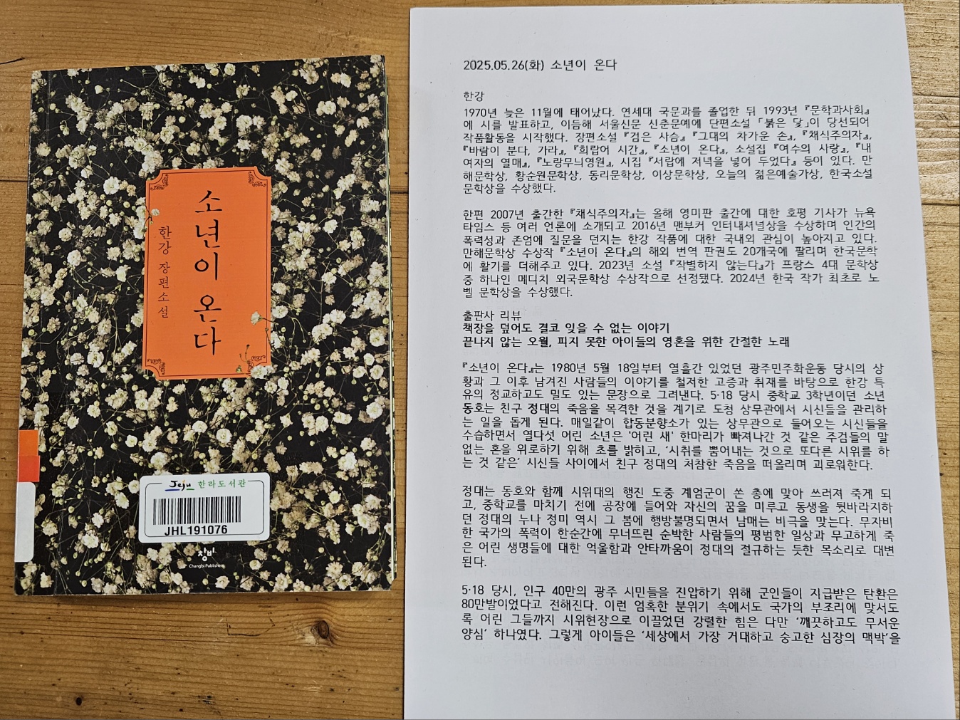 한강의 '소년이 온다'로 함께 했다.