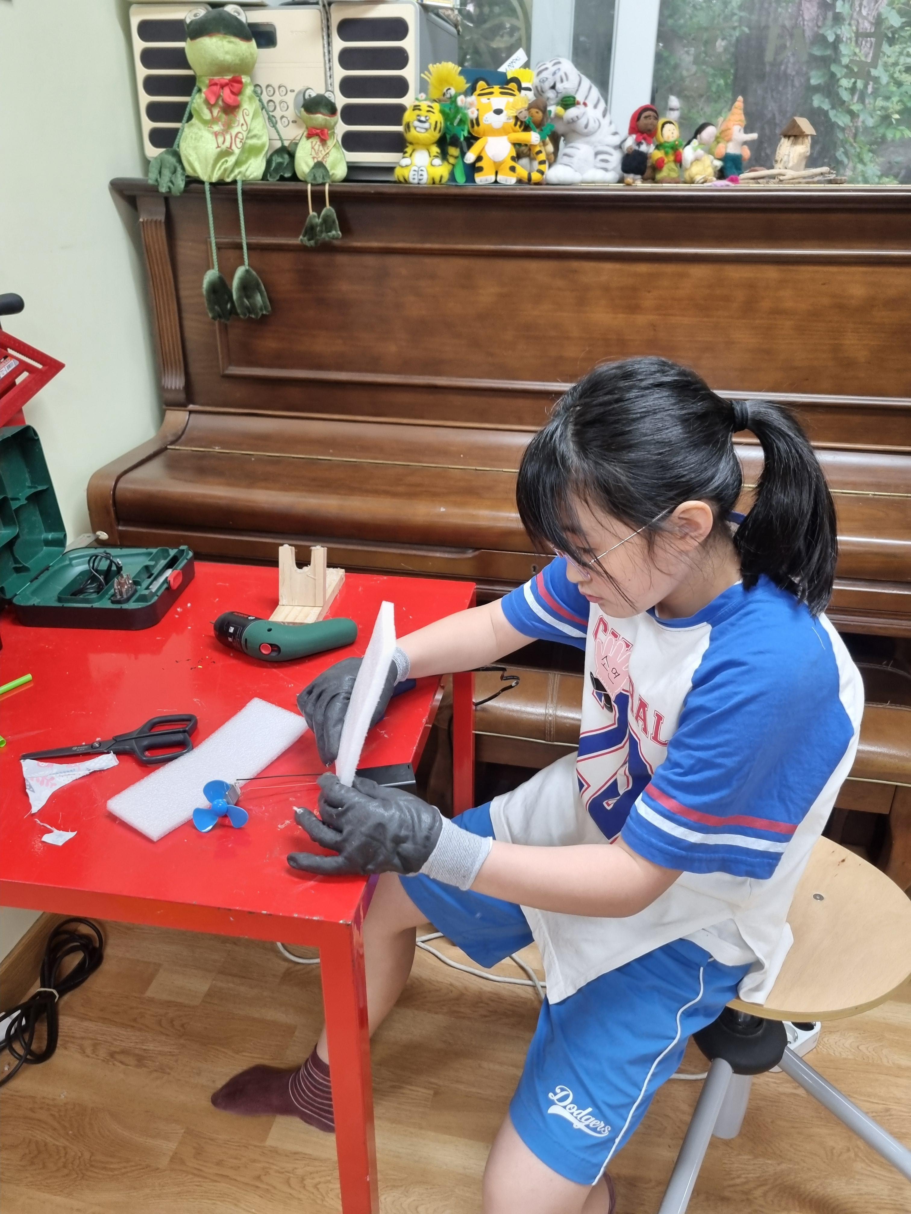 밧데리와 프로펠러를 이용한 세사을 경험한 작은손.