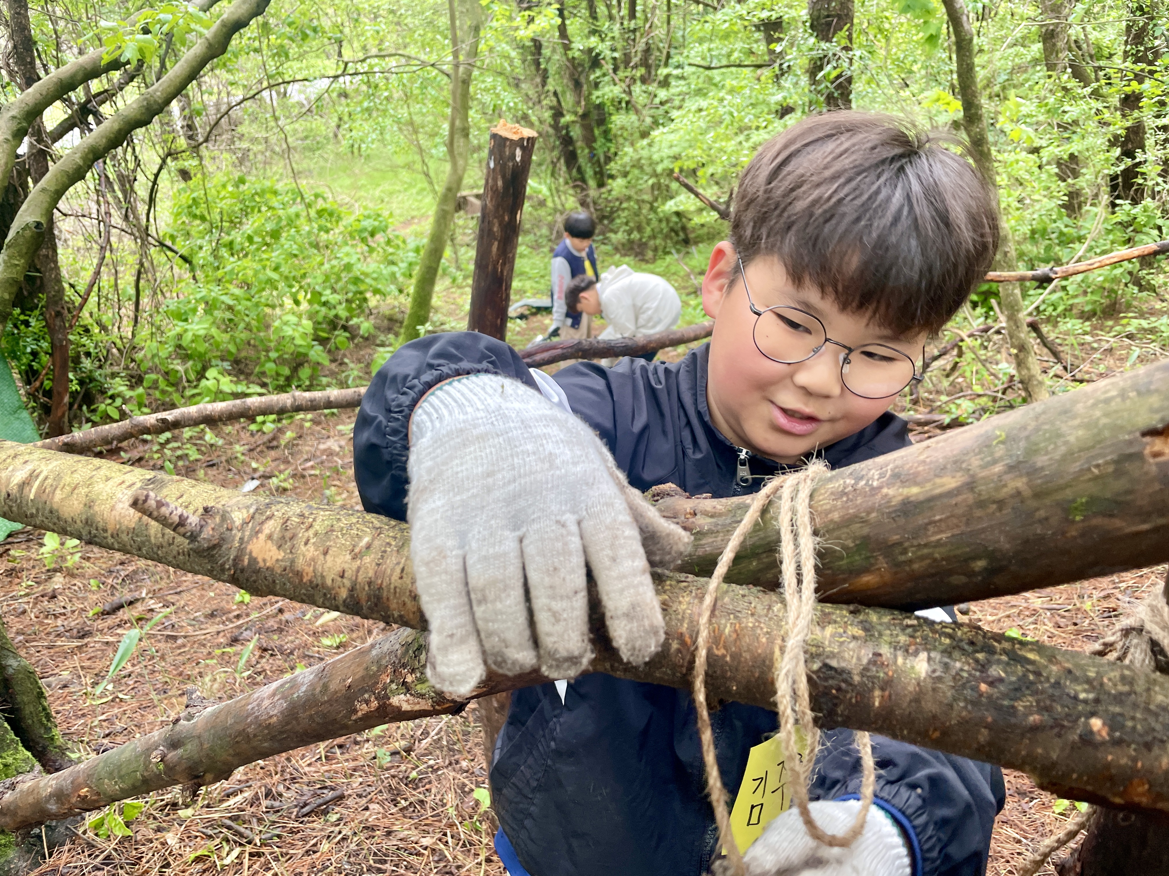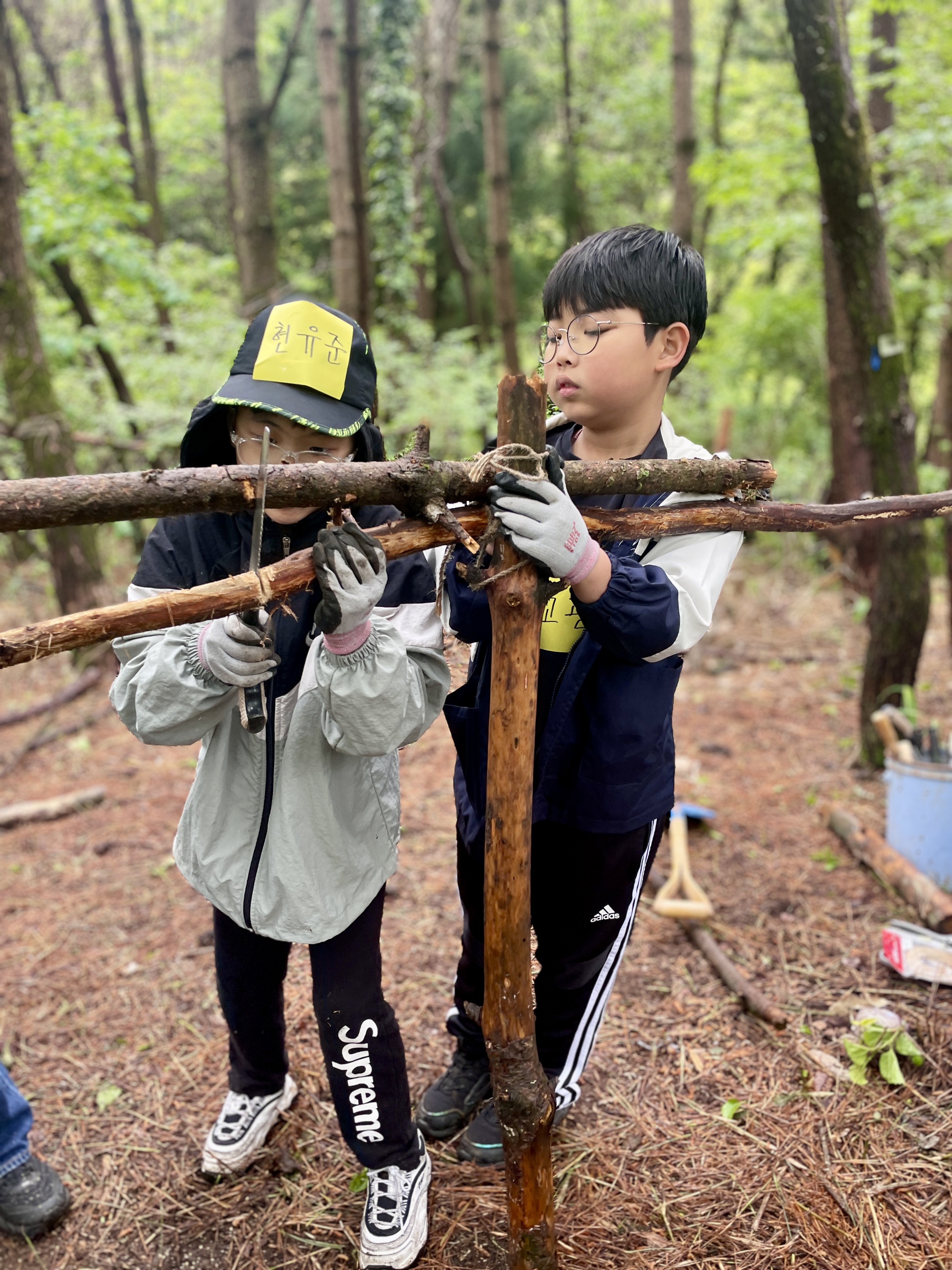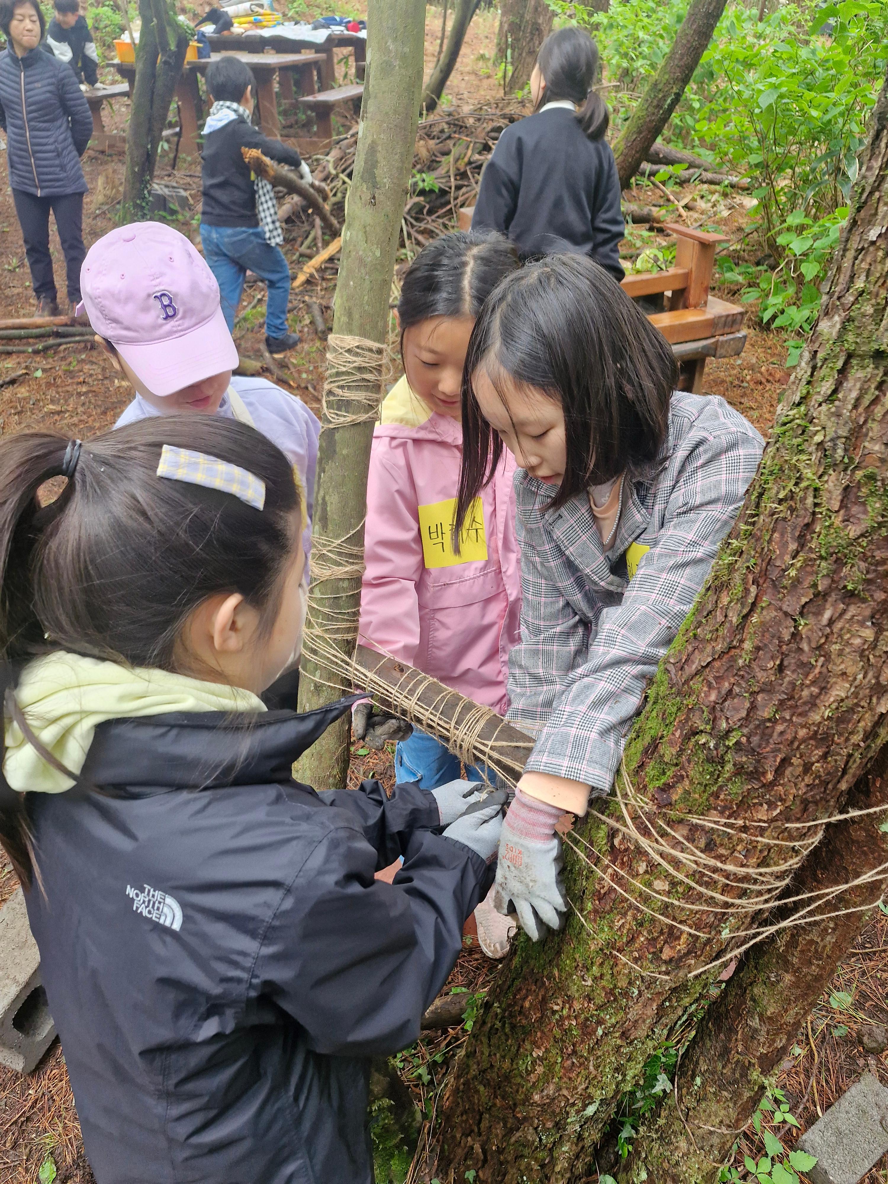 의자가 만들고 싶은 친구들은 나무와 마끈을 이용해서 의자를 만듭니다.