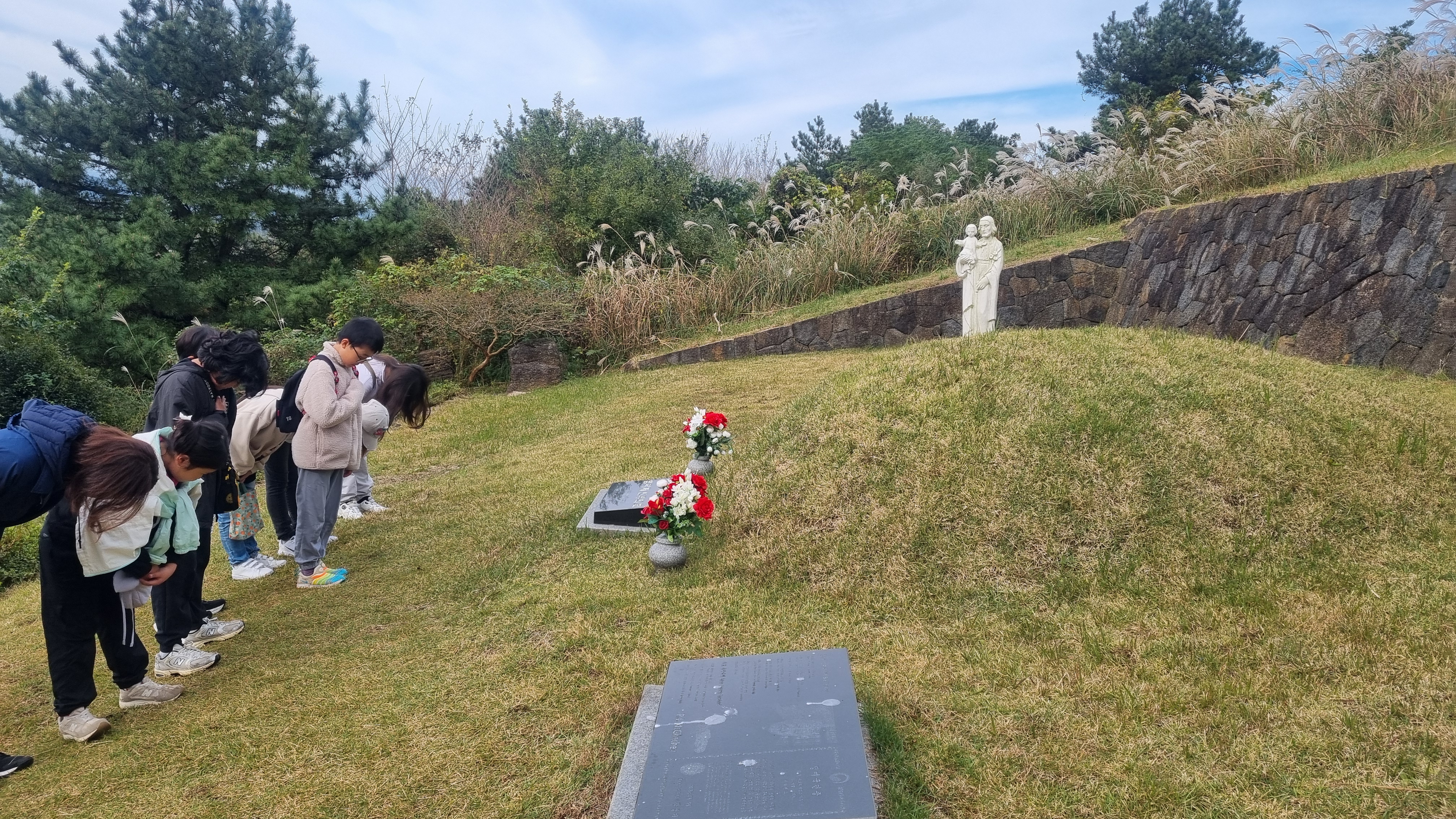 가장 먼저 신부님의 묘를 향해 갔다.