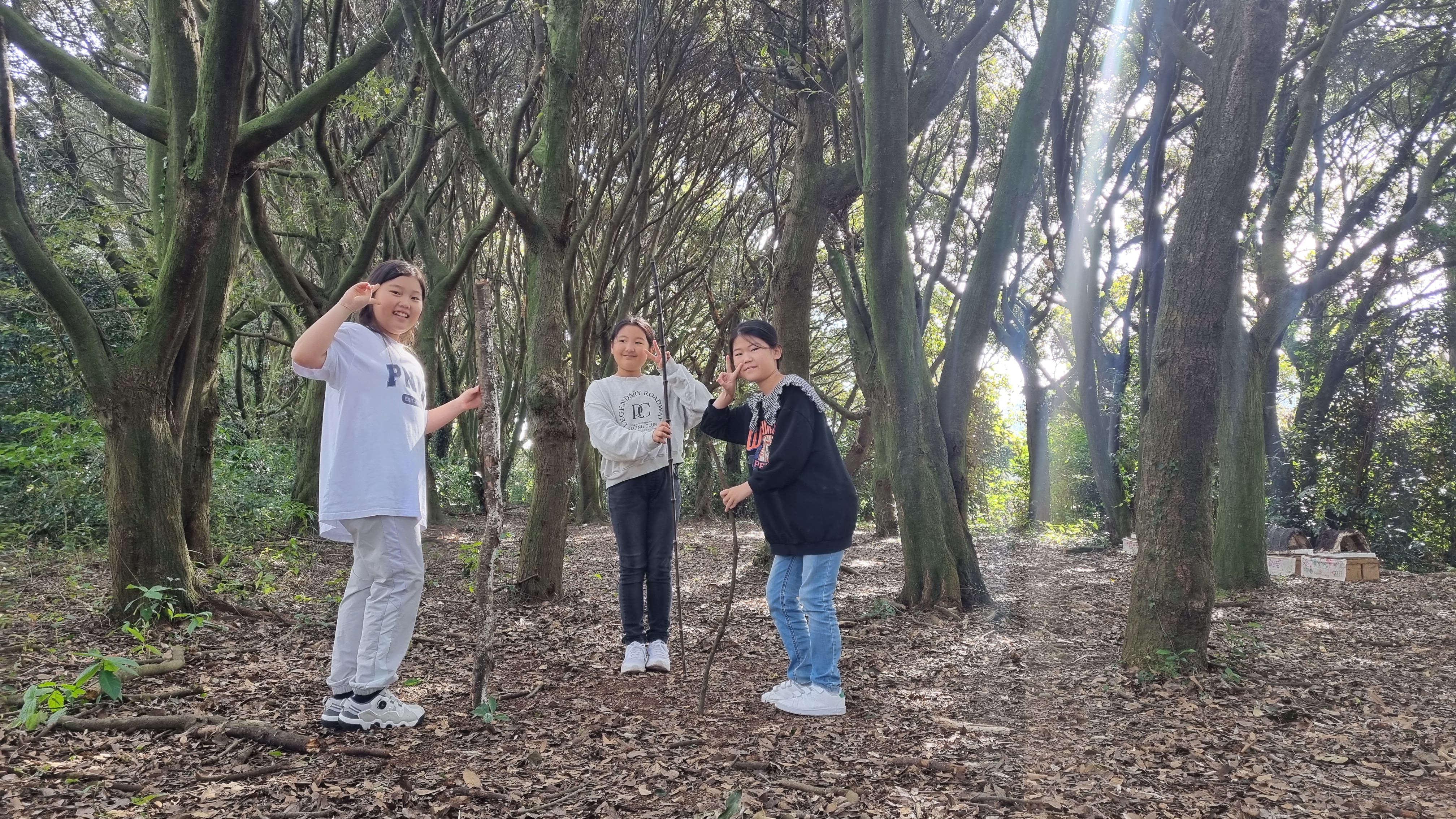 주위에서 막대기를 찾아서 막대놀이 했다.