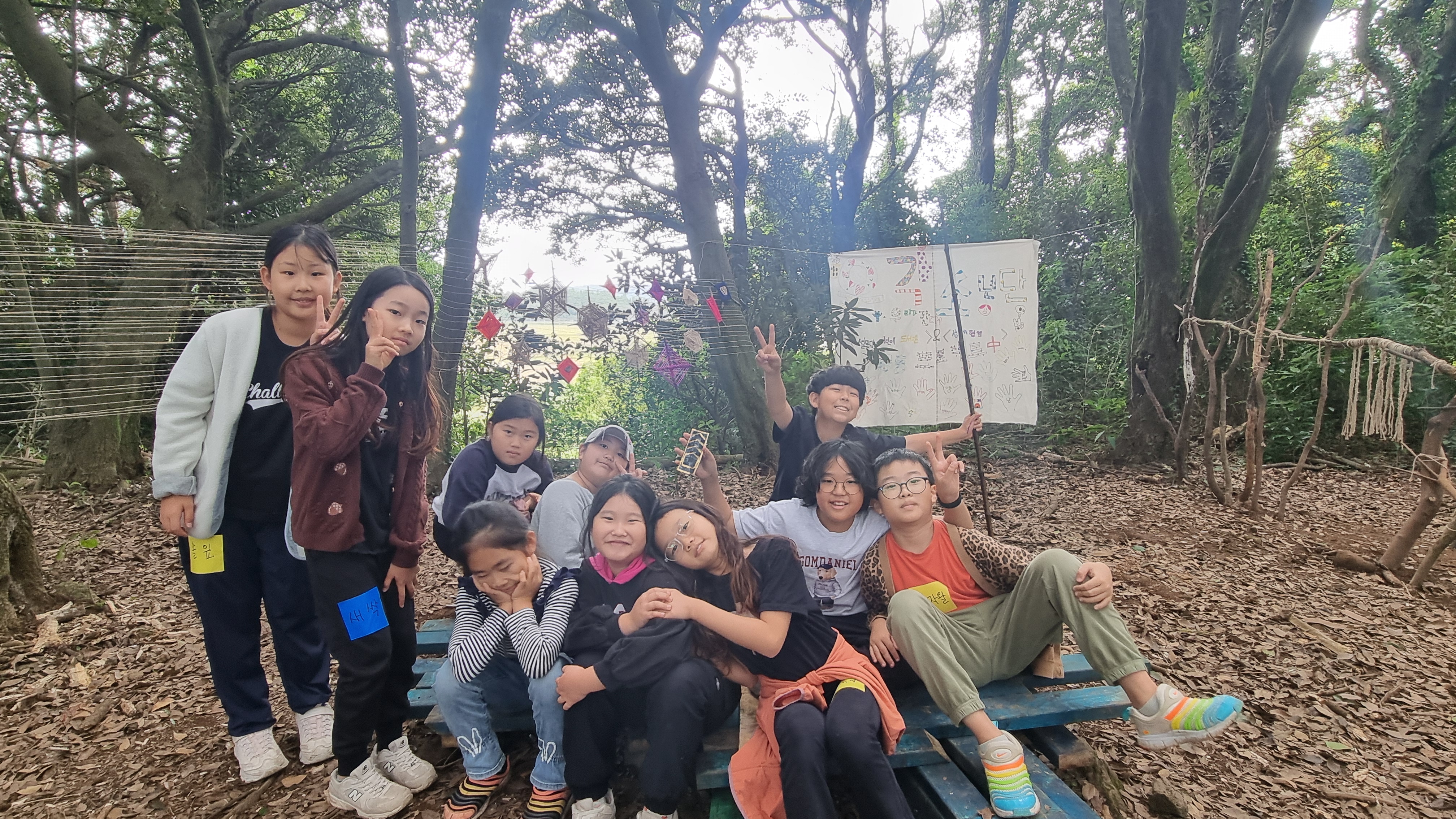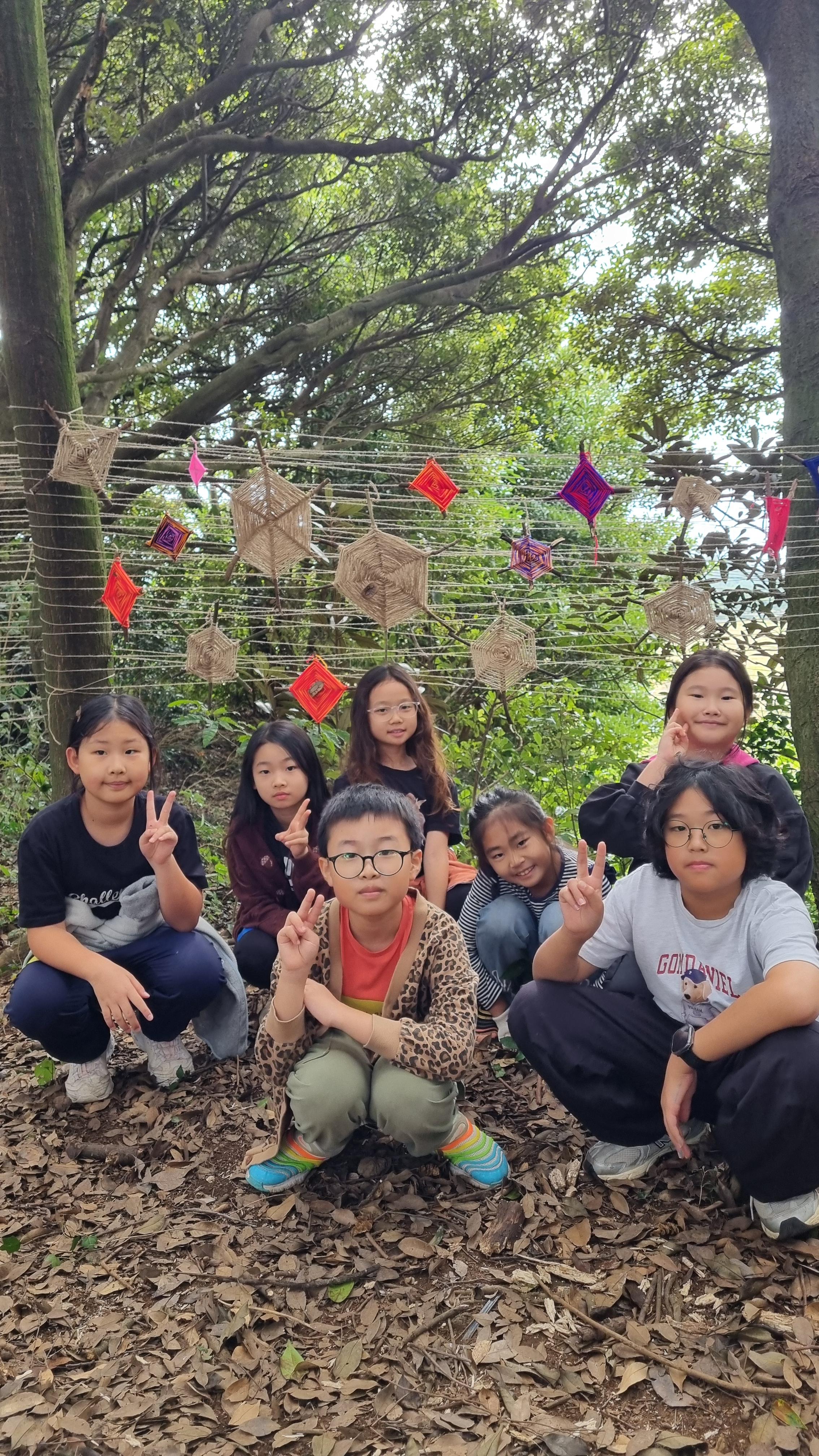 아이들이 하나 하나 만든 거미줄을 아지트 안에 전시했답니다.