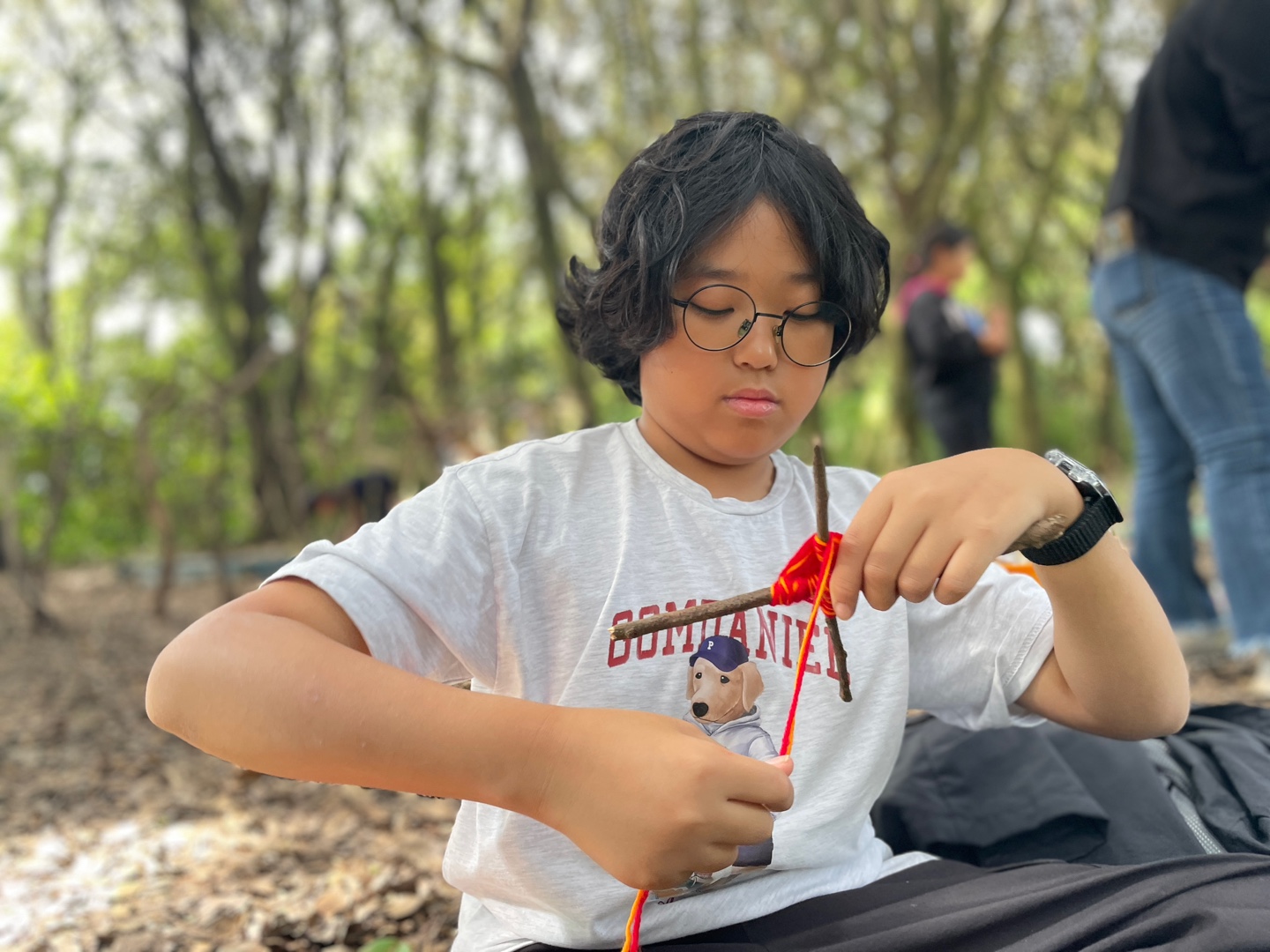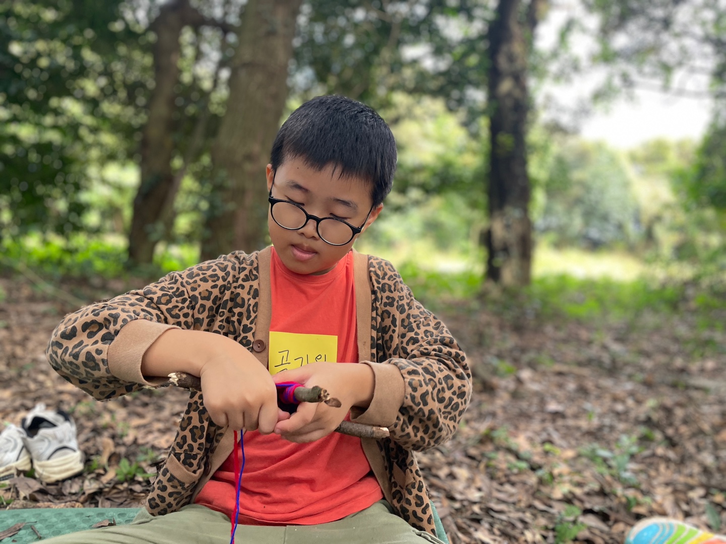 나무 막대기 2개를 찾아서 십자 모양을 만든 다음에