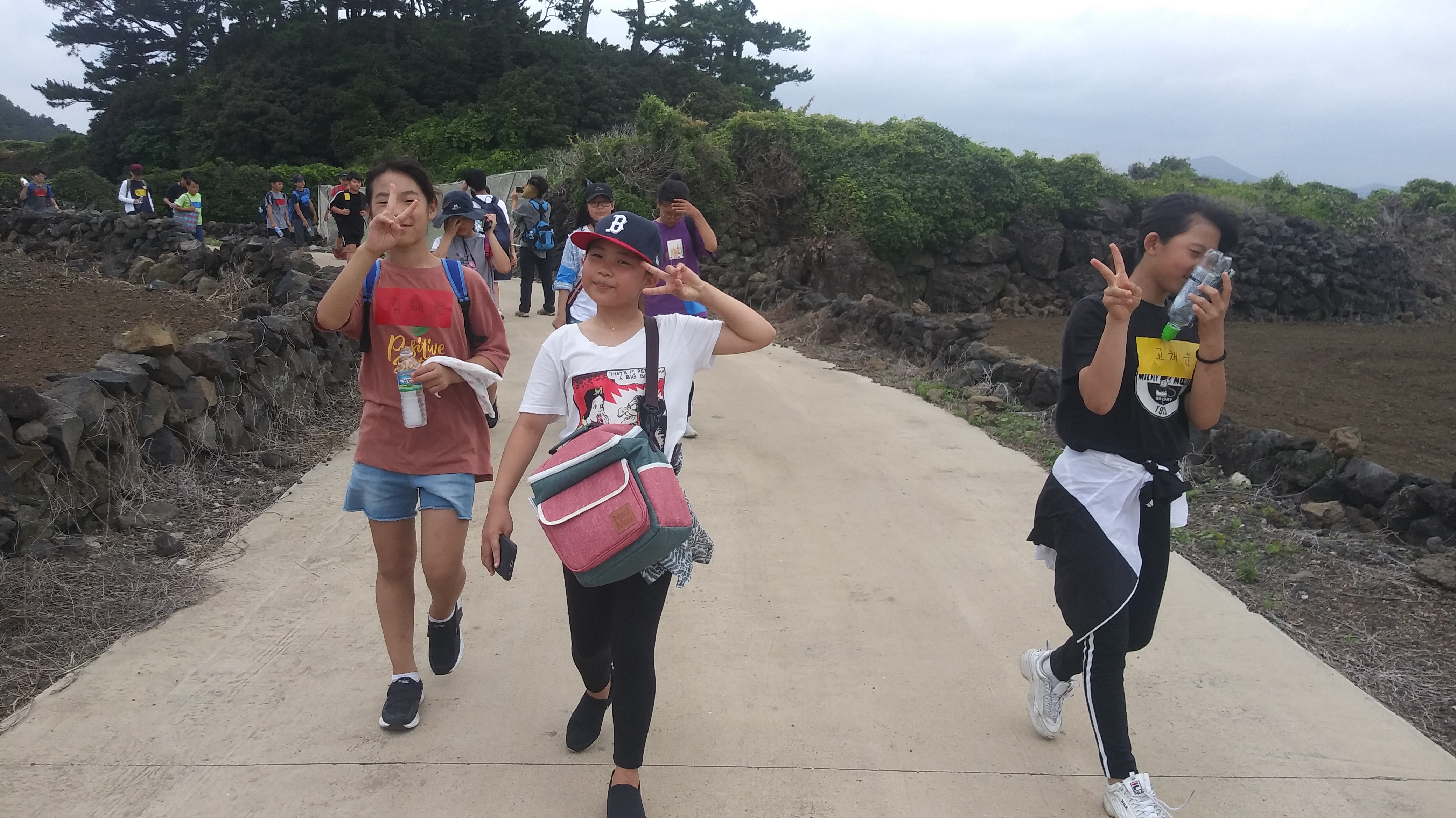 걸으면서도 카메라를 들이대면 브이 해주는 센스~~