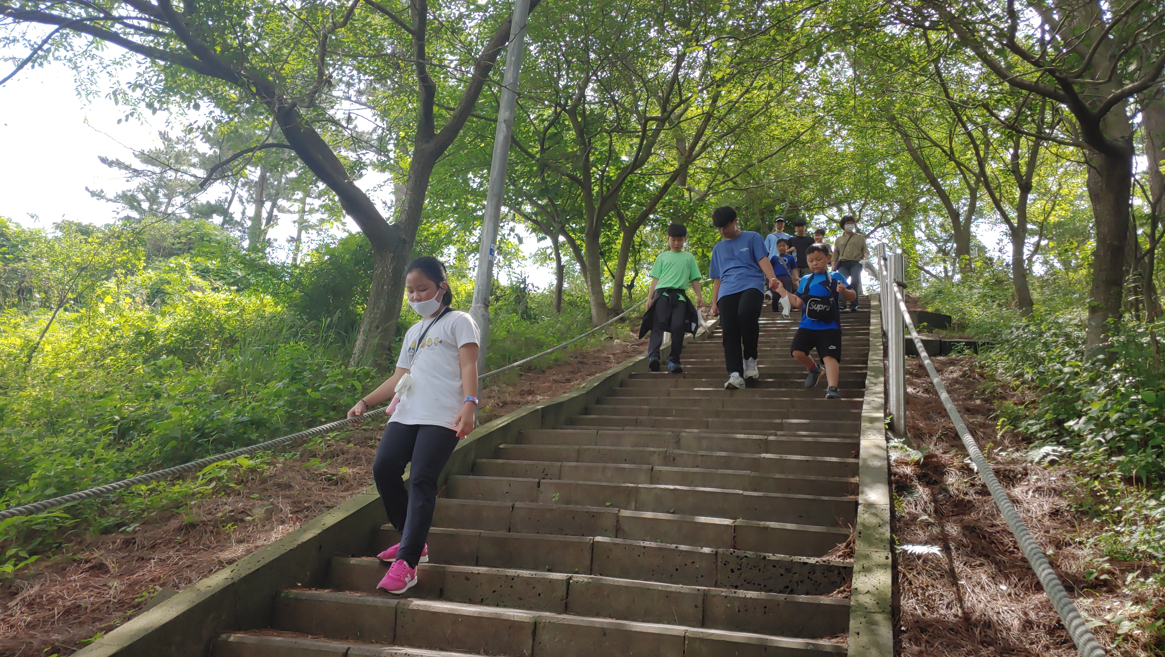 먼저 온 친구들이 뒤에 무겁게 들고 오는 친구들을 향해 달려간다.
