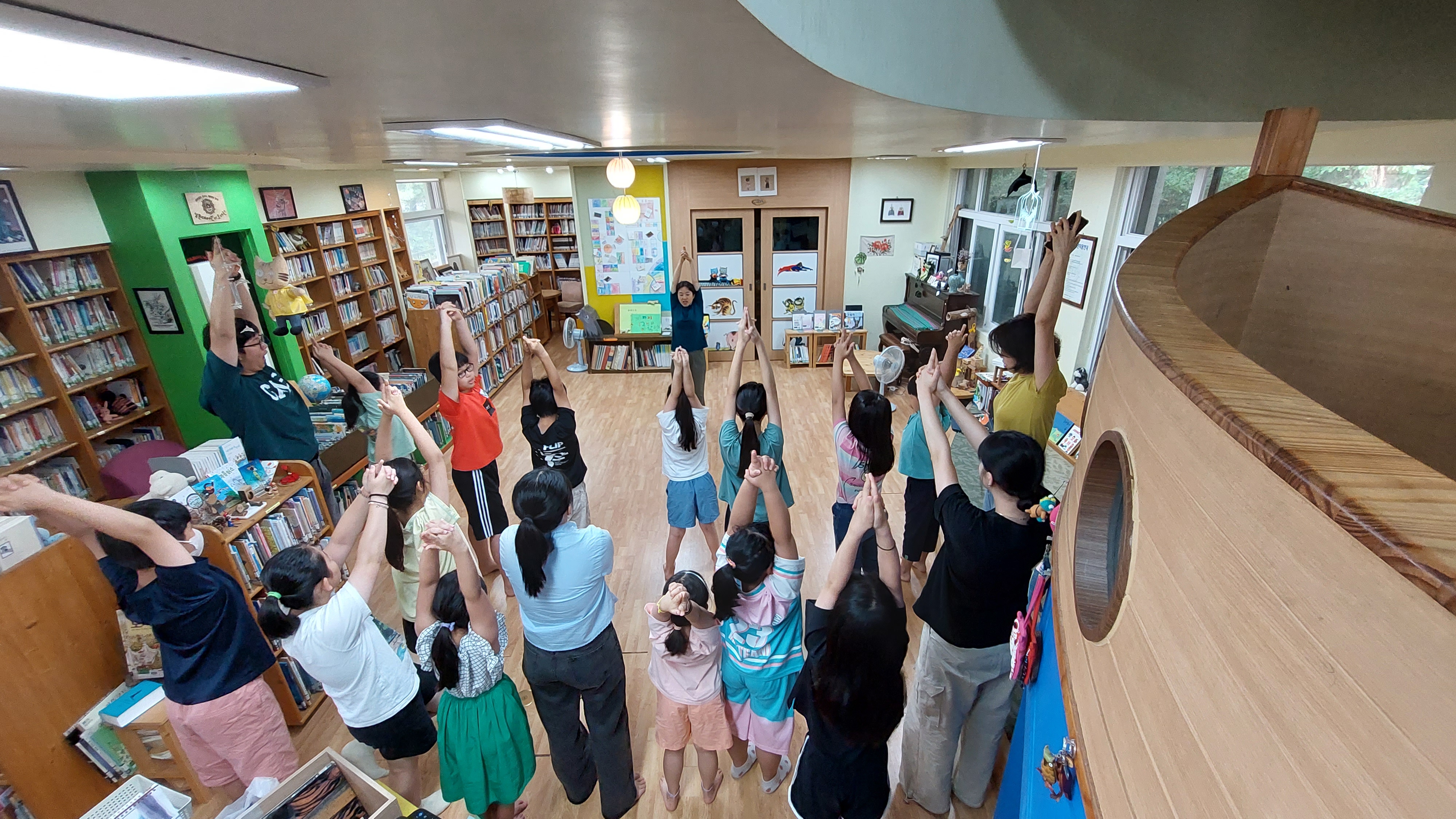 방학 시작과 동시에 설문대어린이도서관에 온 아이들.