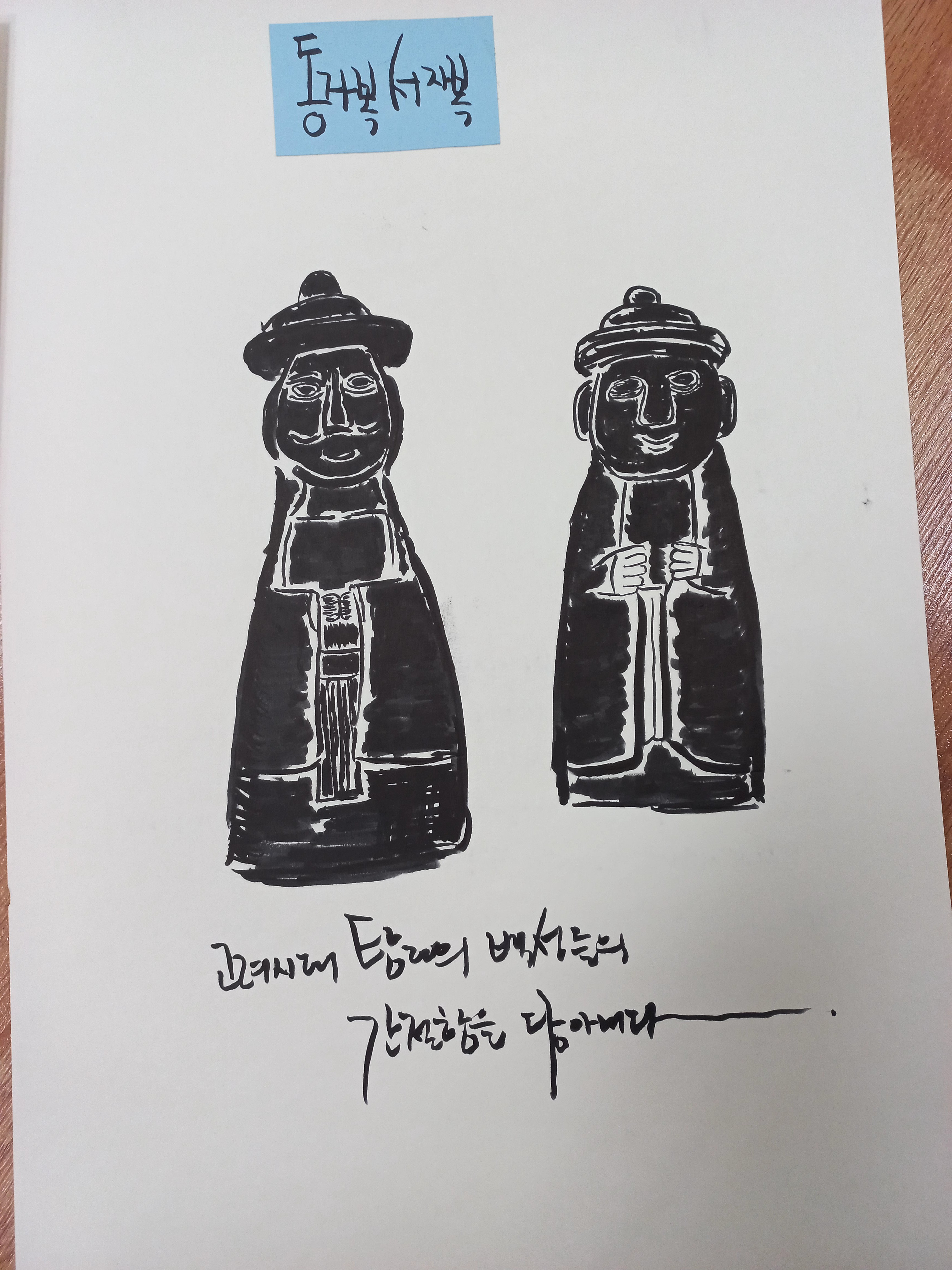 삼성혈 앞 돌하르방에게도 인사를 하고