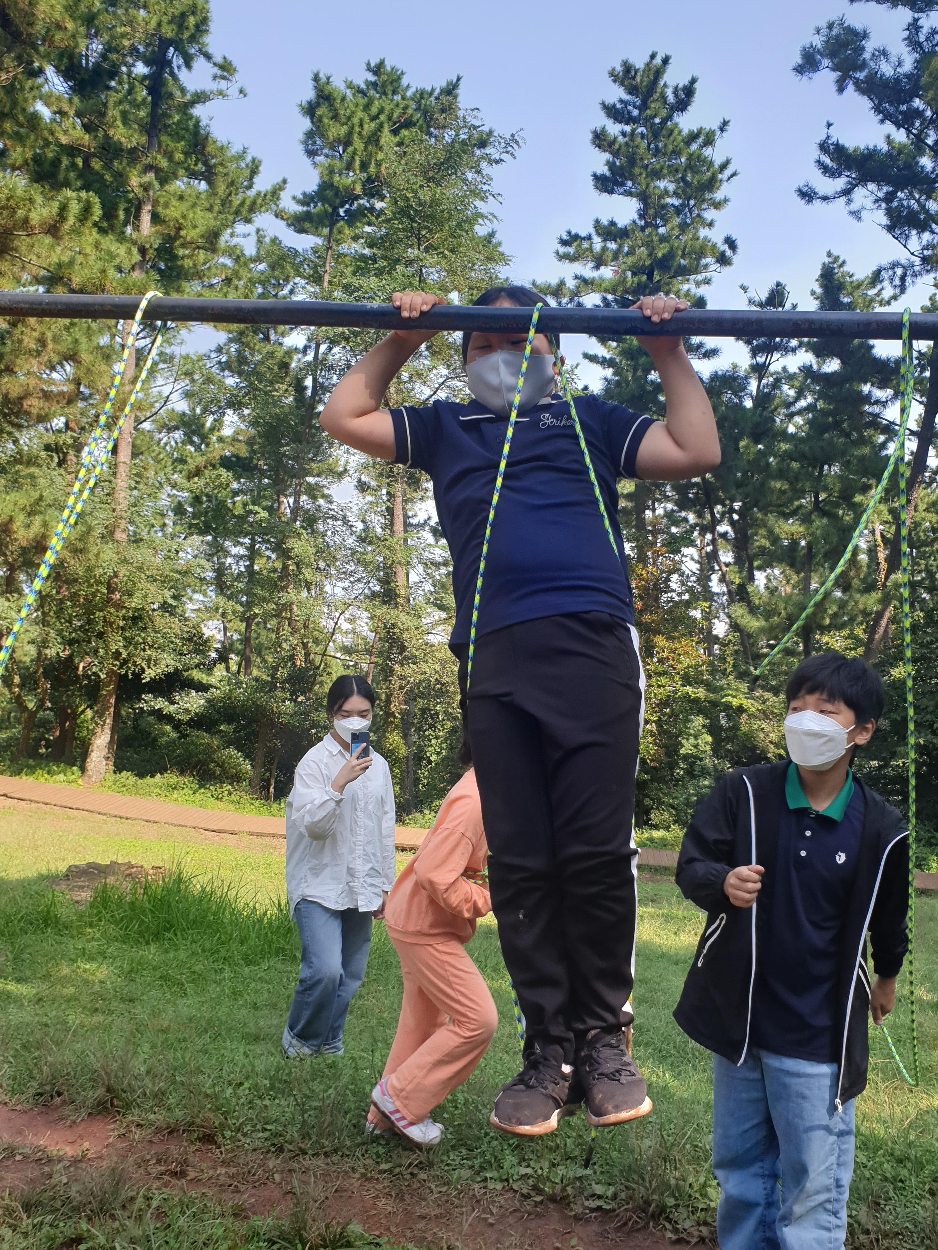 아지트 터를 정하기 위해 단체 줄넘기로 순서를 정한다.