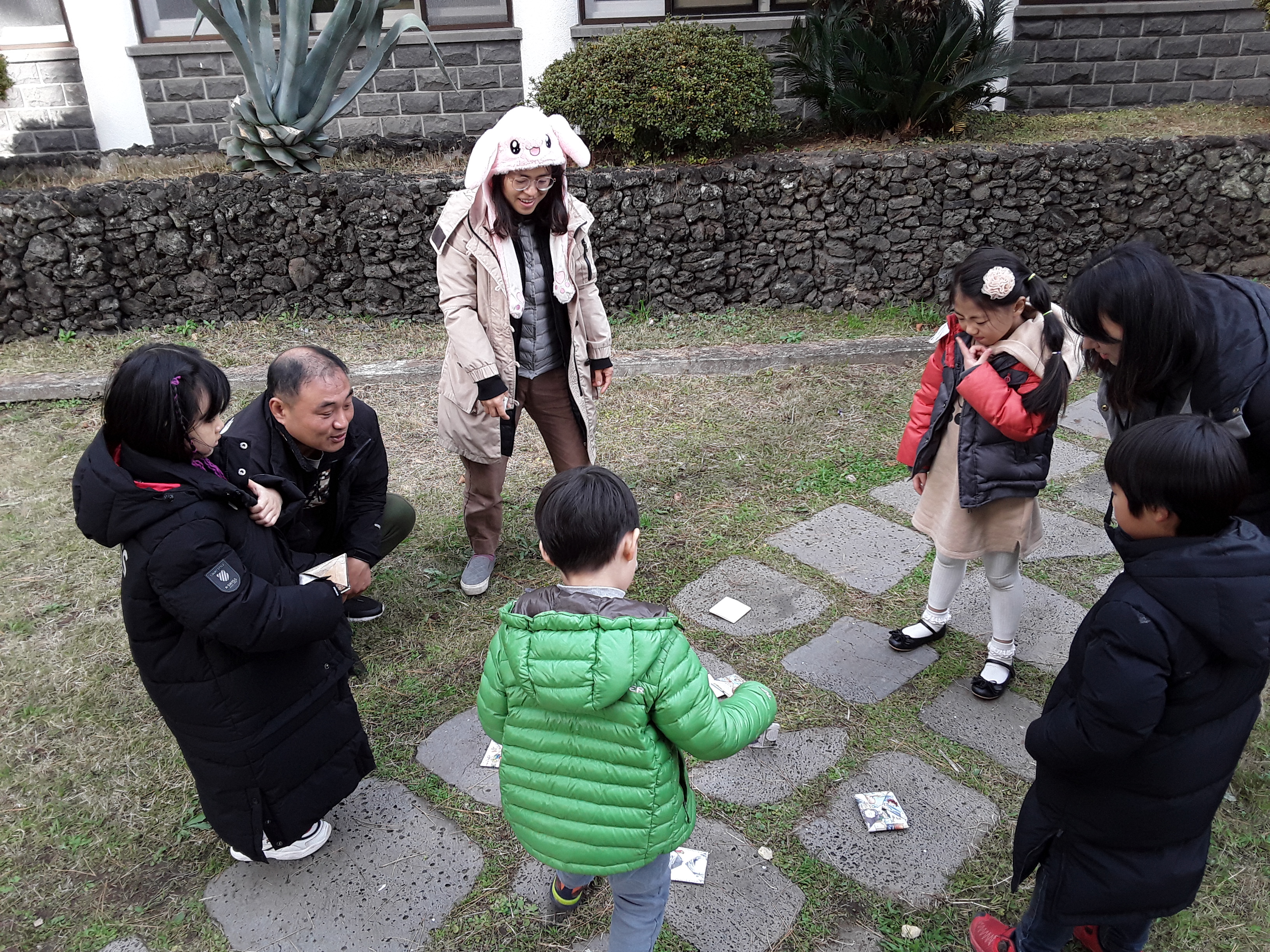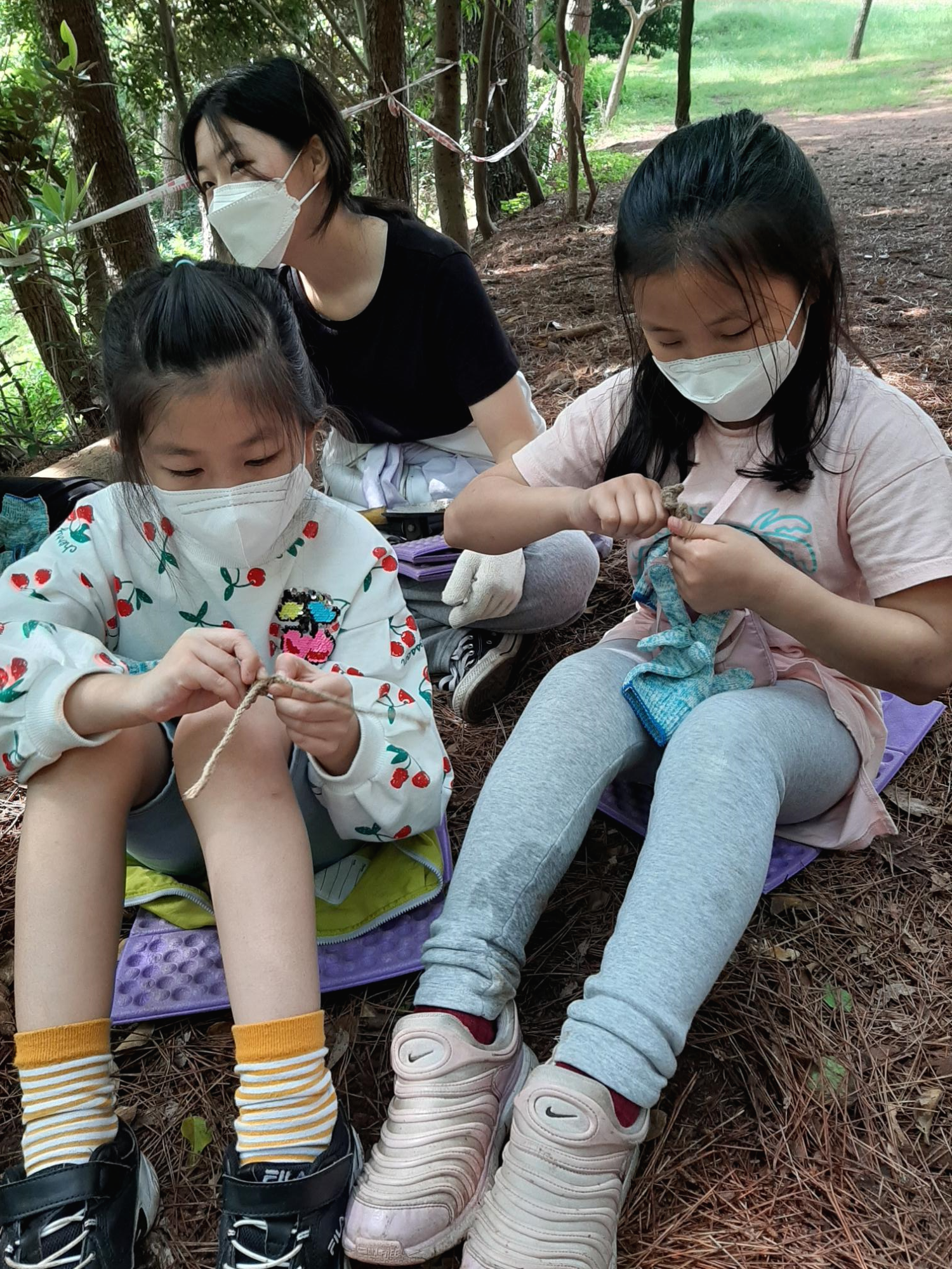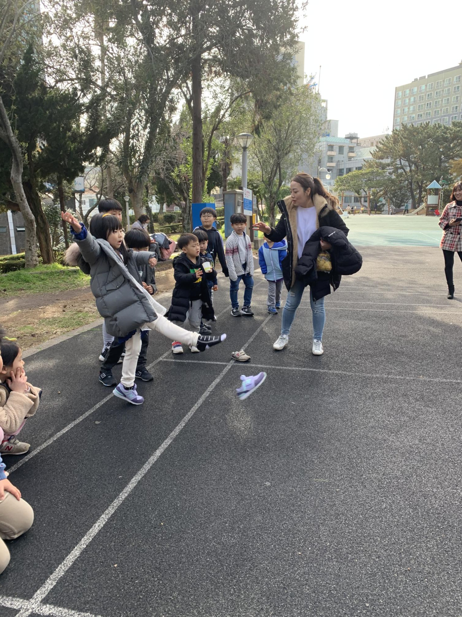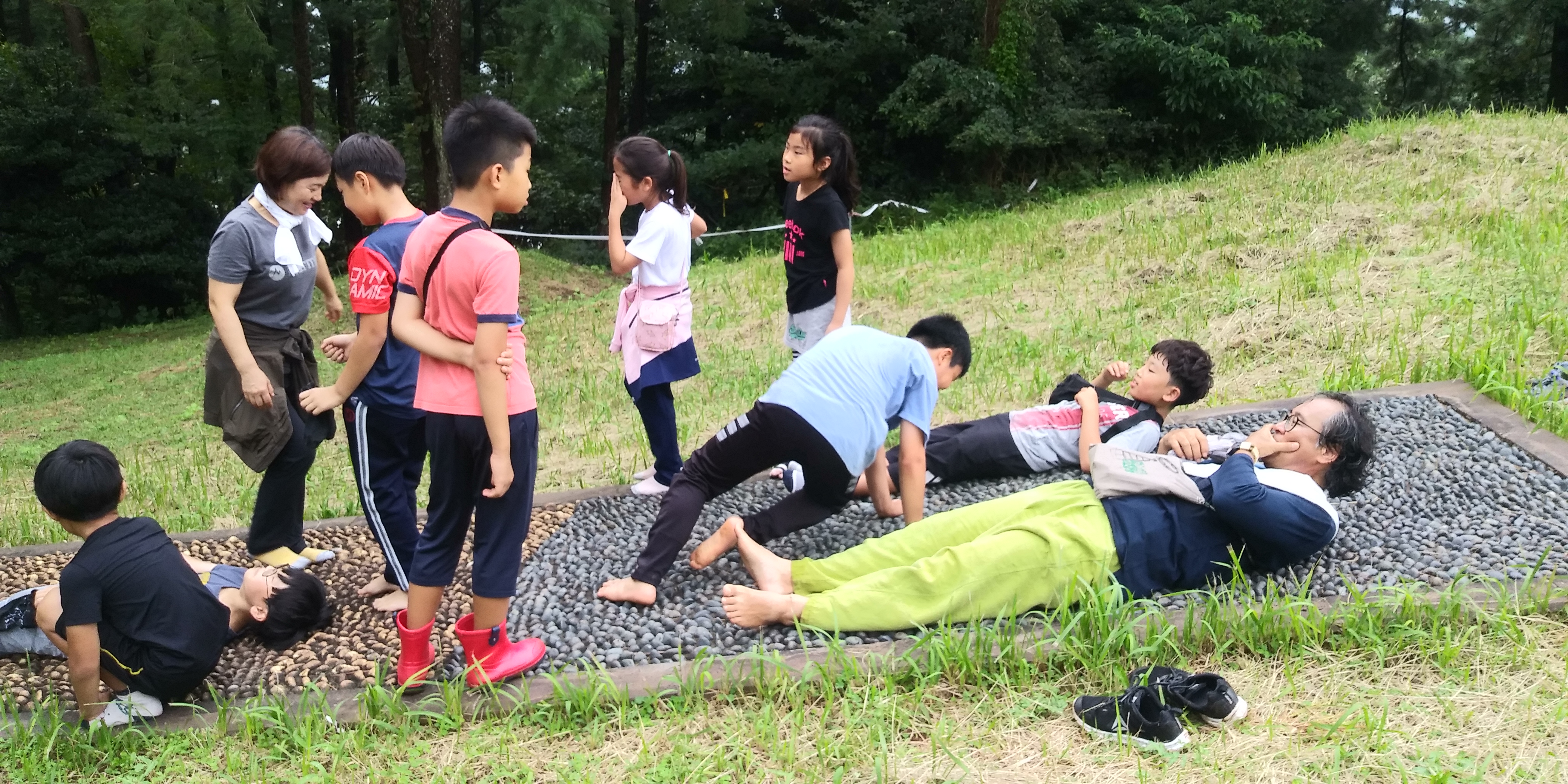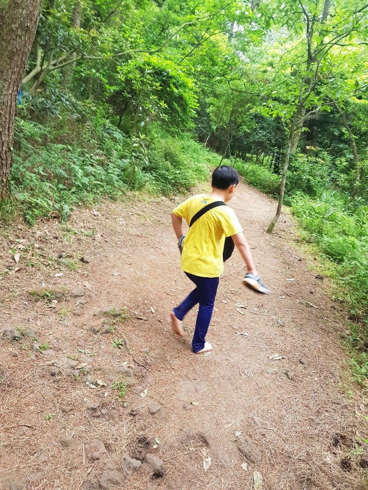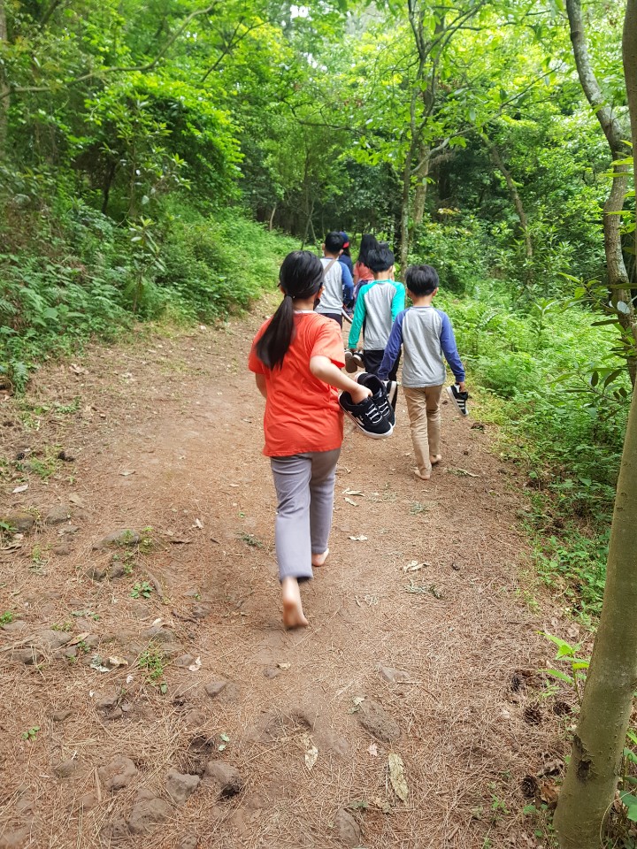 애들아 맨발로 걸어볼까?