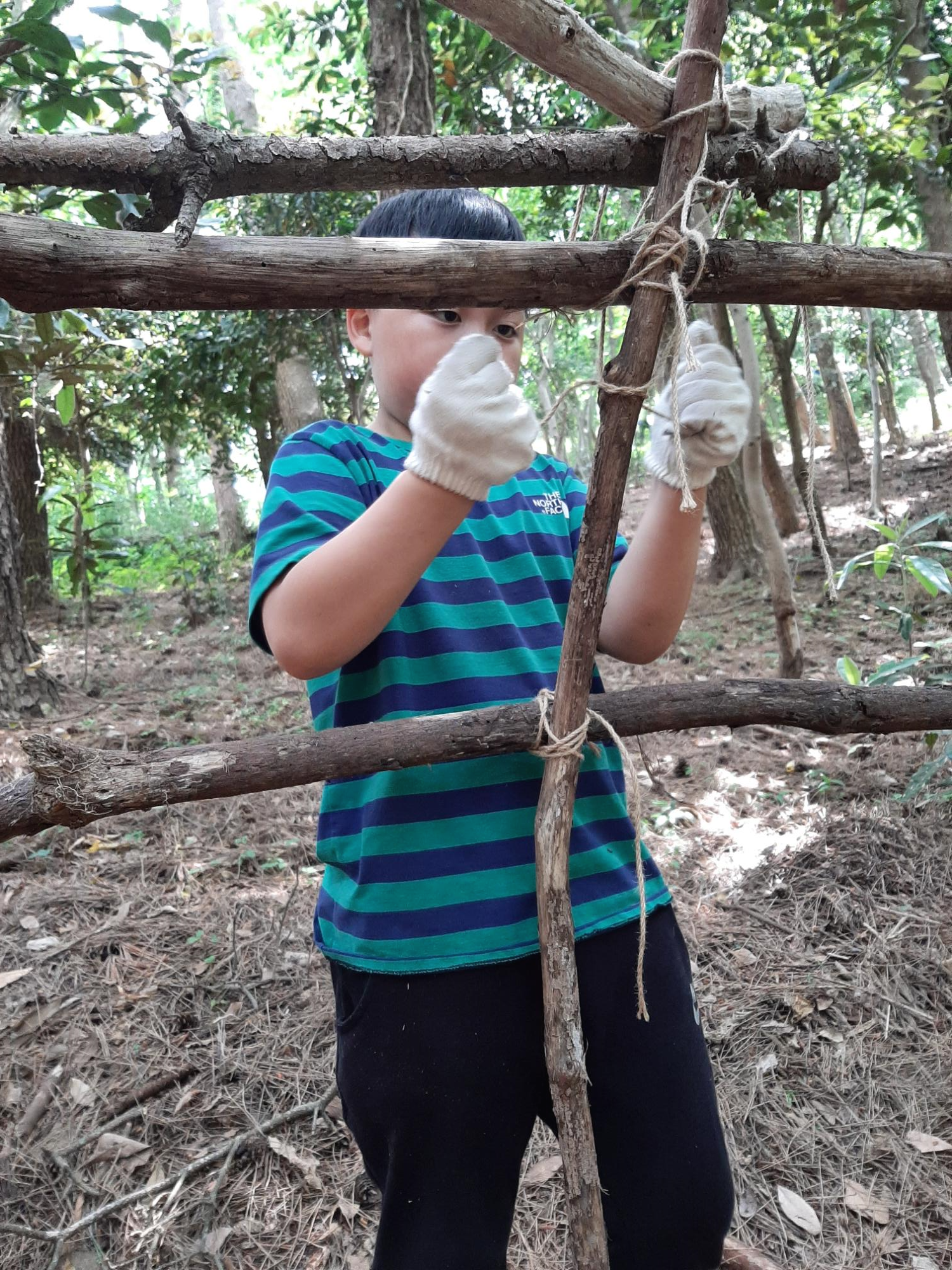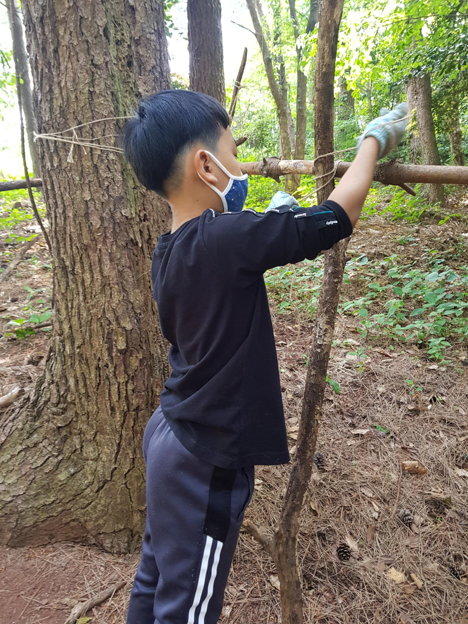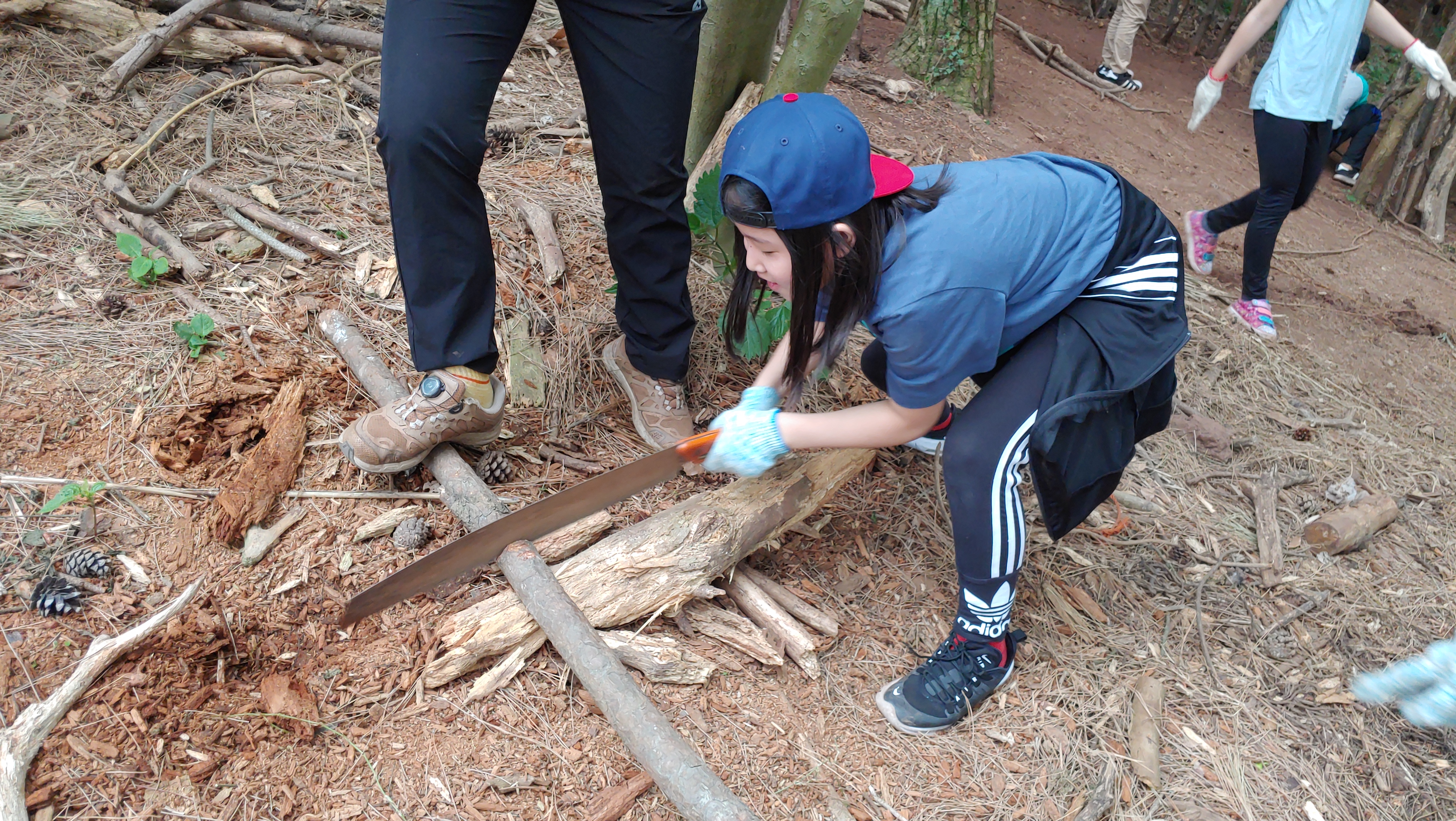 톱질 잘하는 봉사 형아의 도움을 받아 열심히 톱질하는 준영이^^