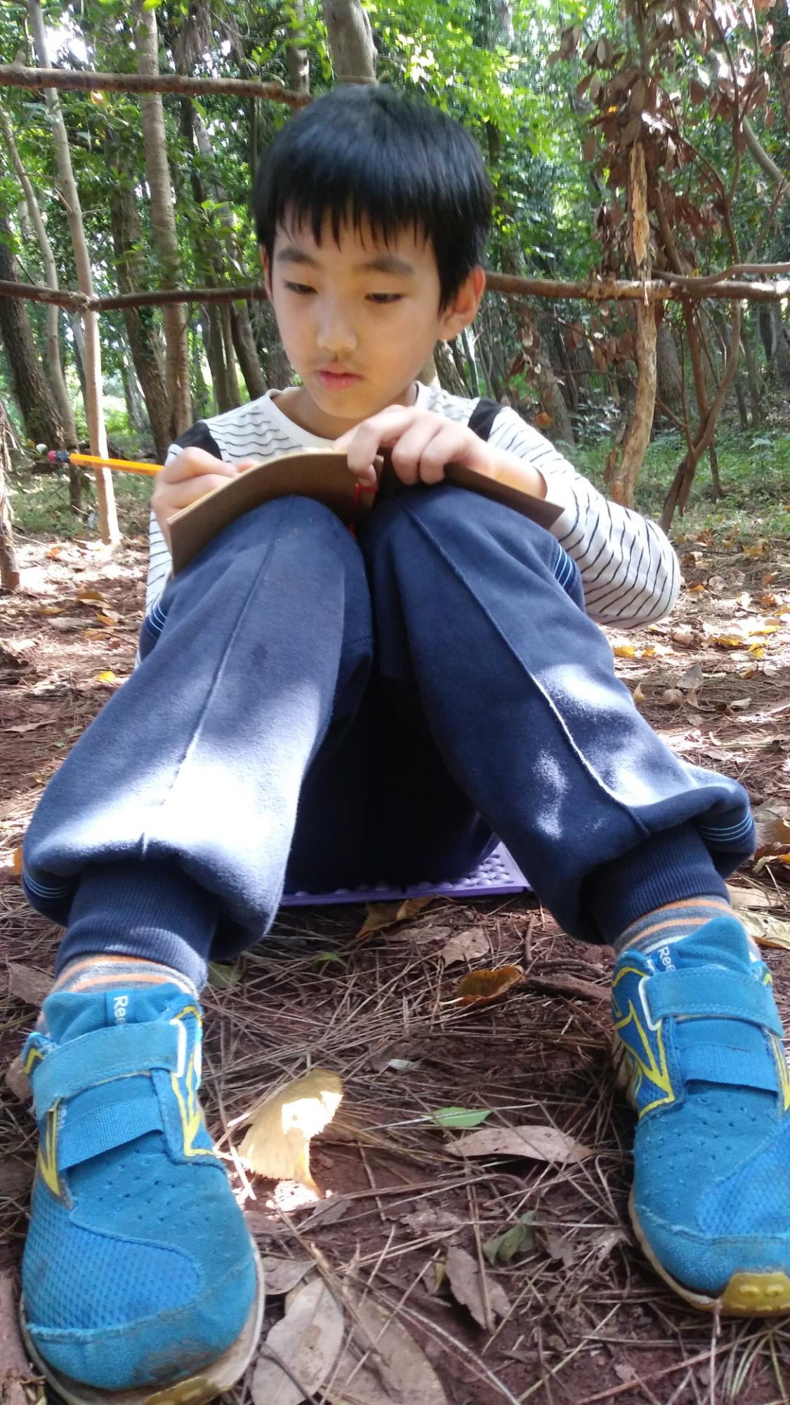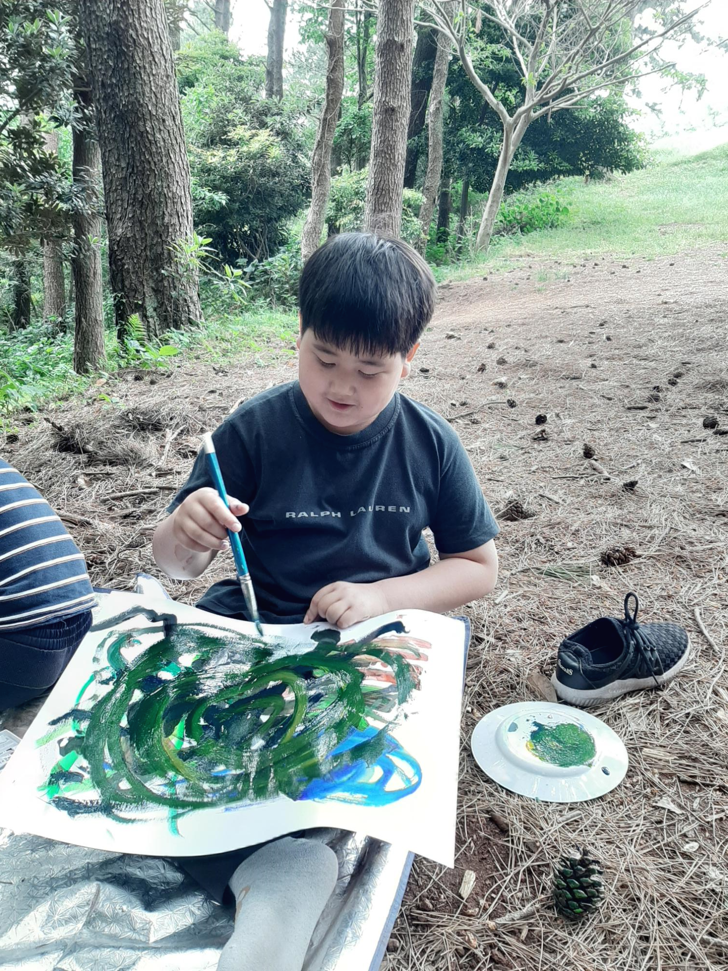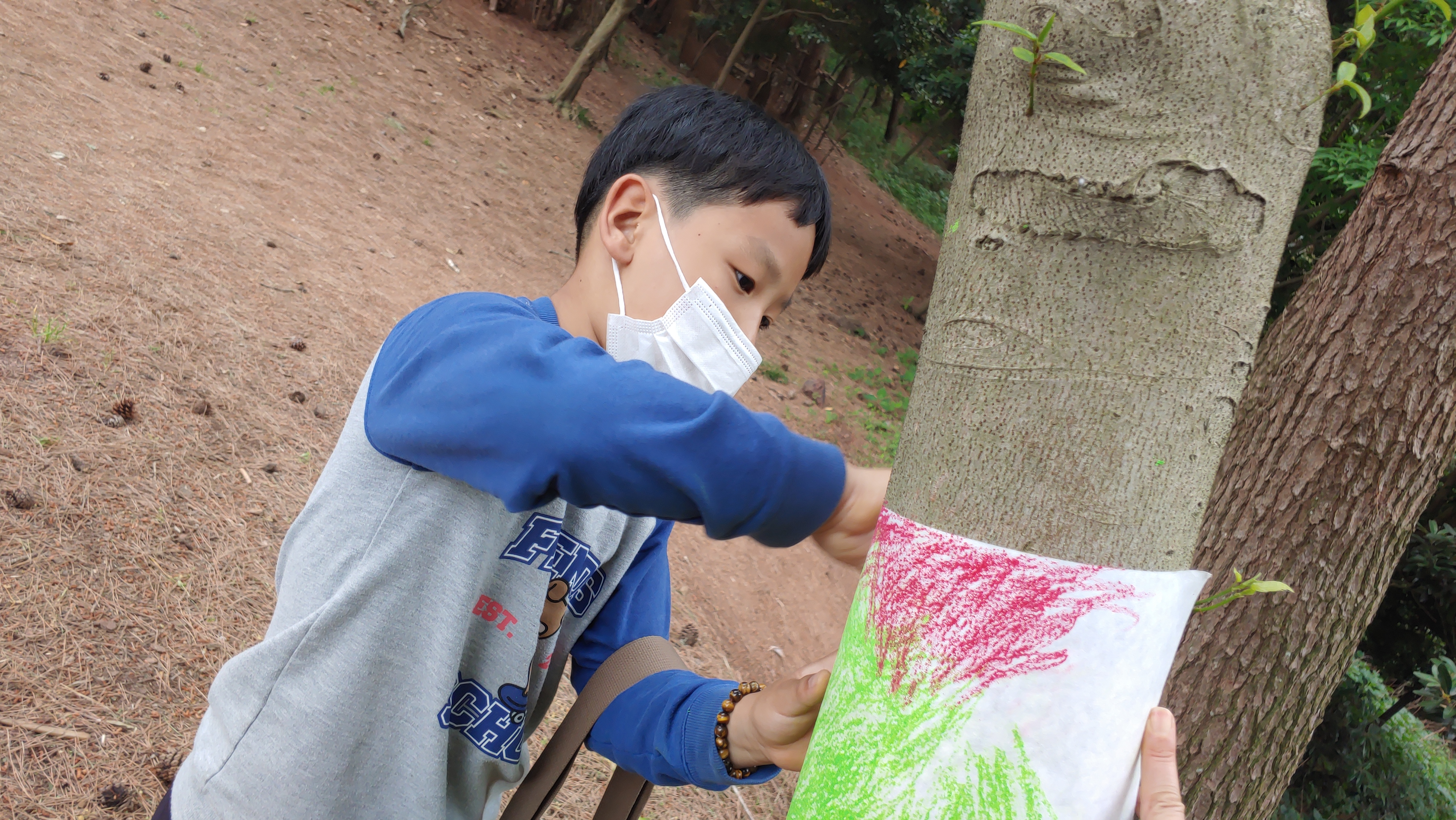 맨들 맨들한 나무를 알록하게 탁본 뜨는 정현이^^