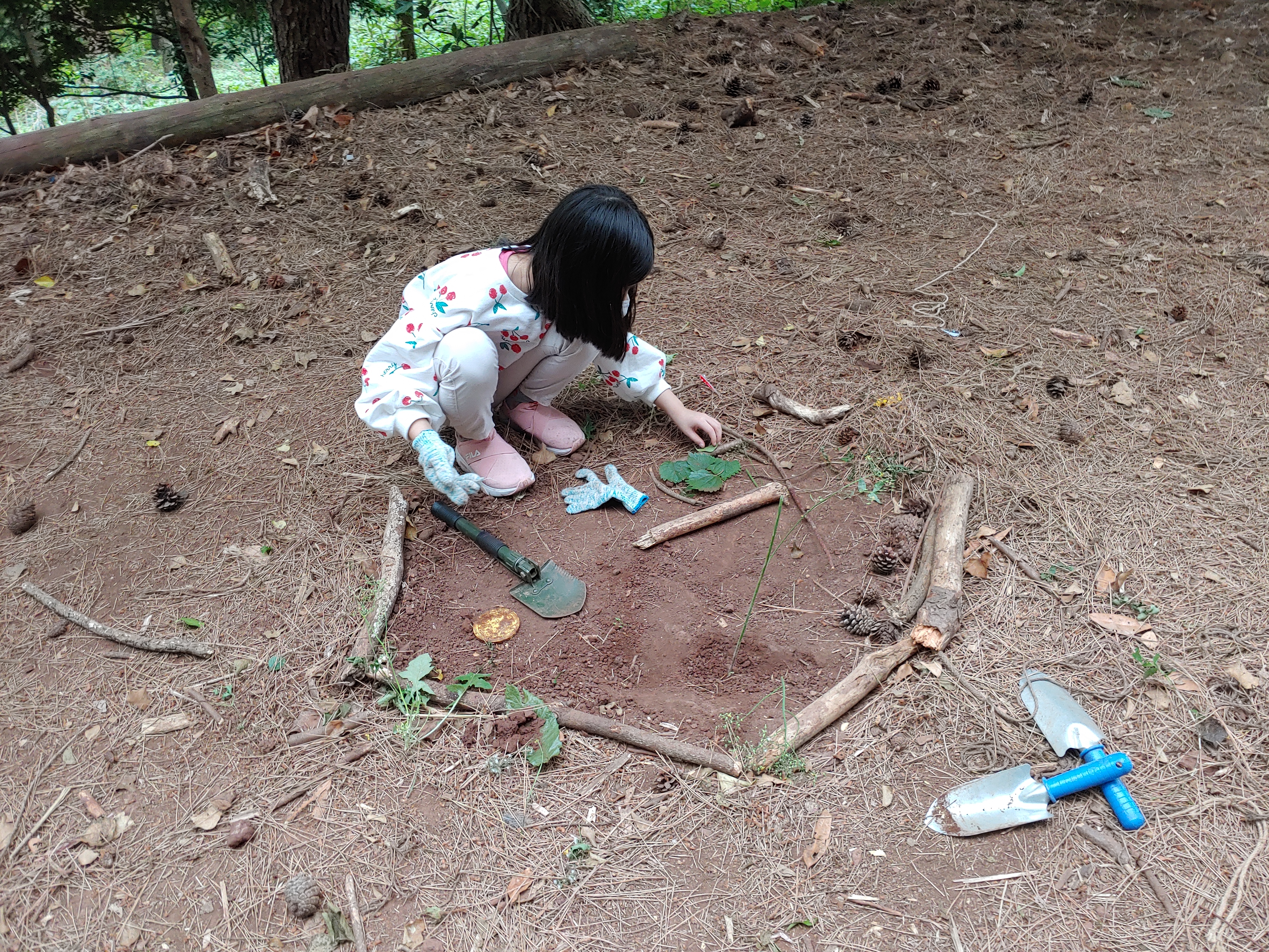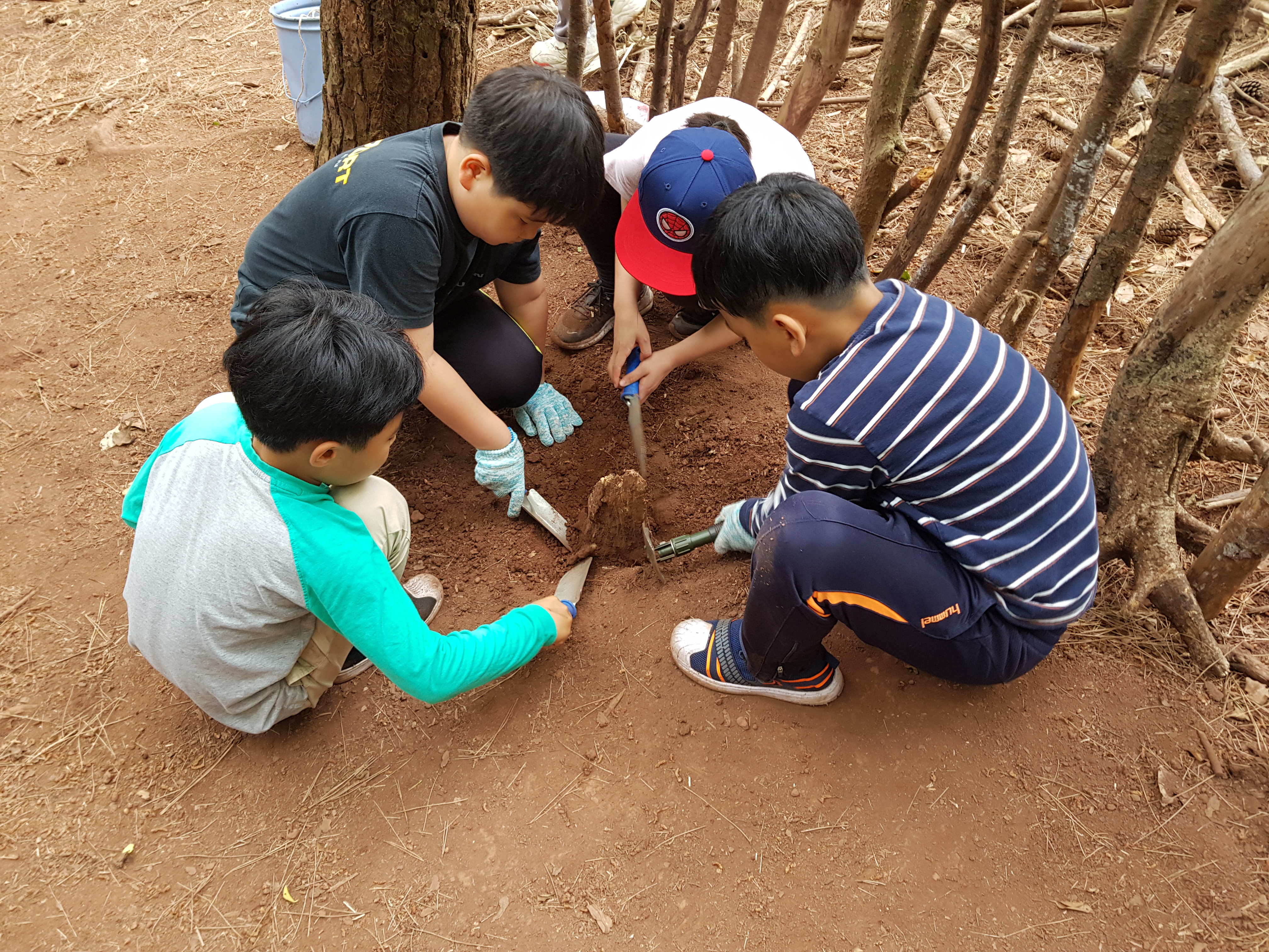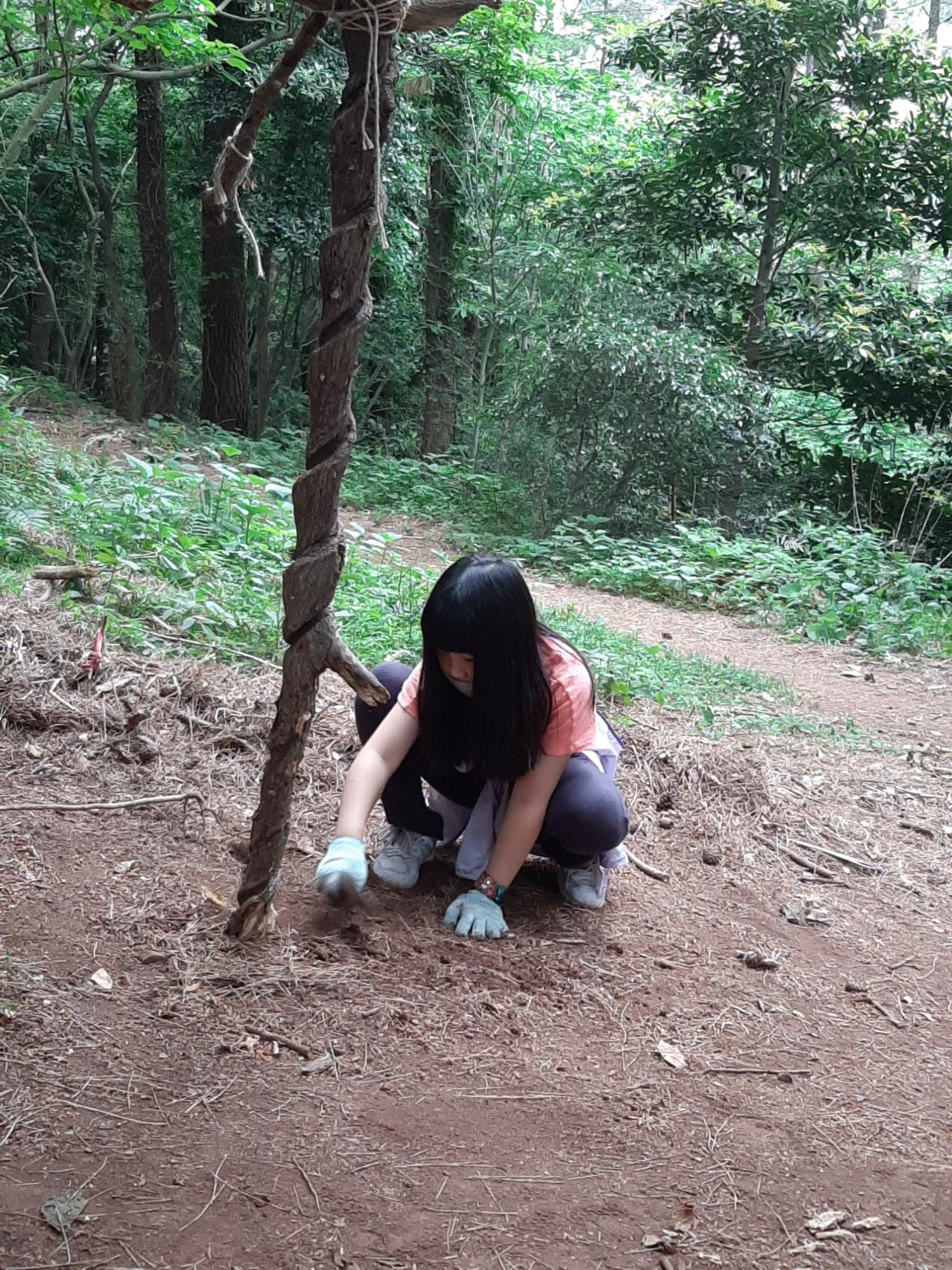 내가 찾은 신기한 막대기 옆에 식물을 심는다고 땅을 파는 시연이.