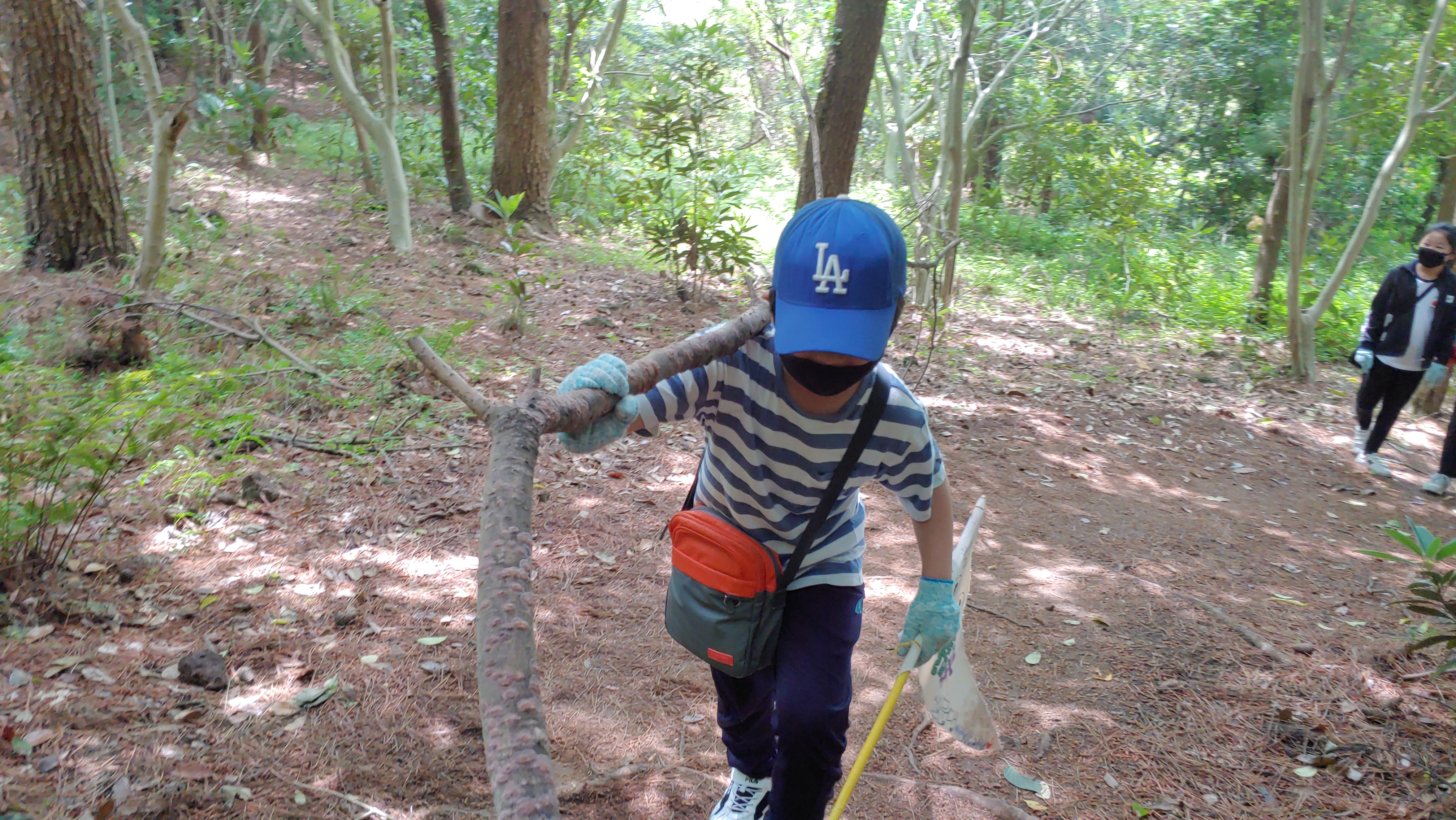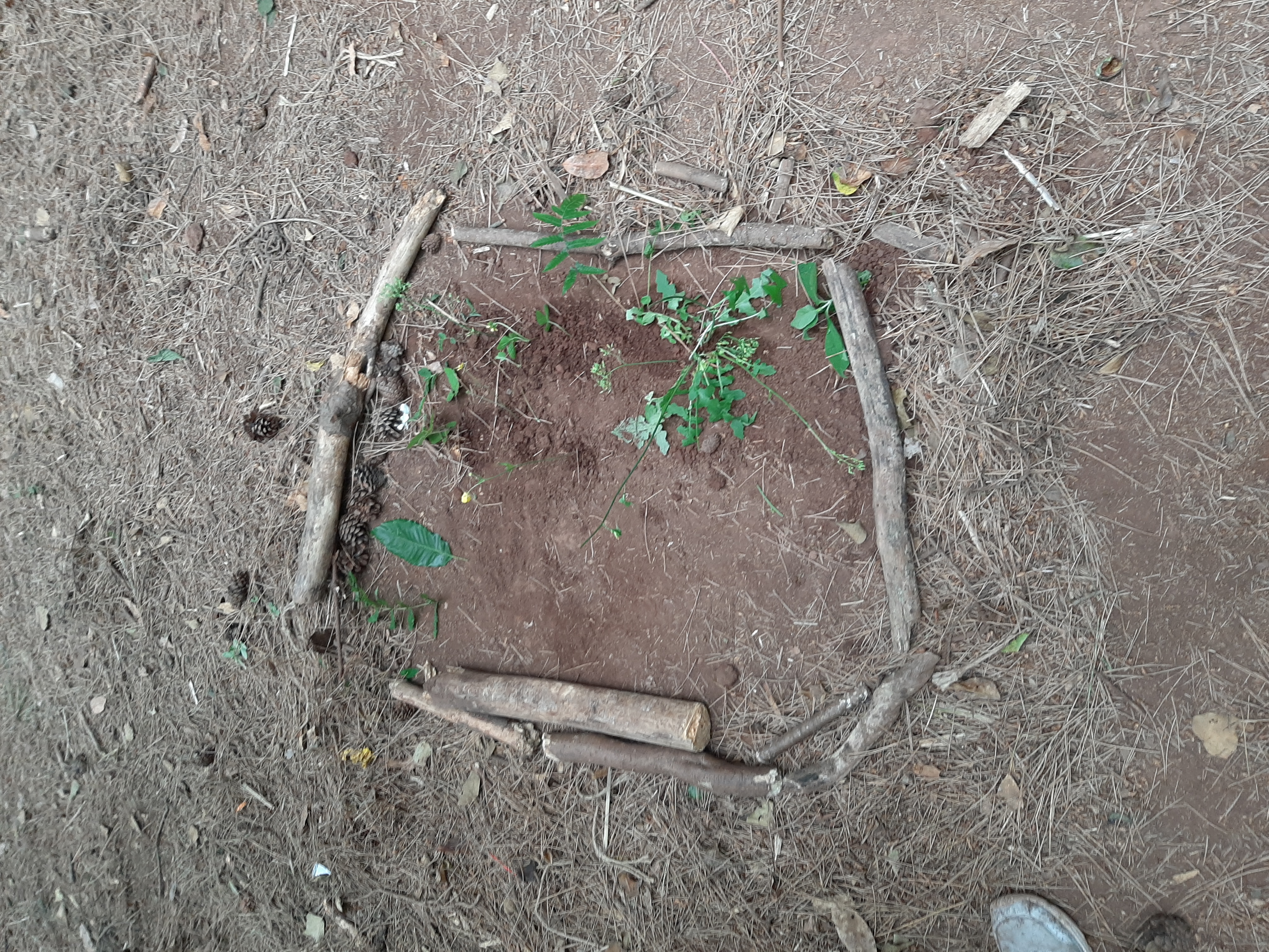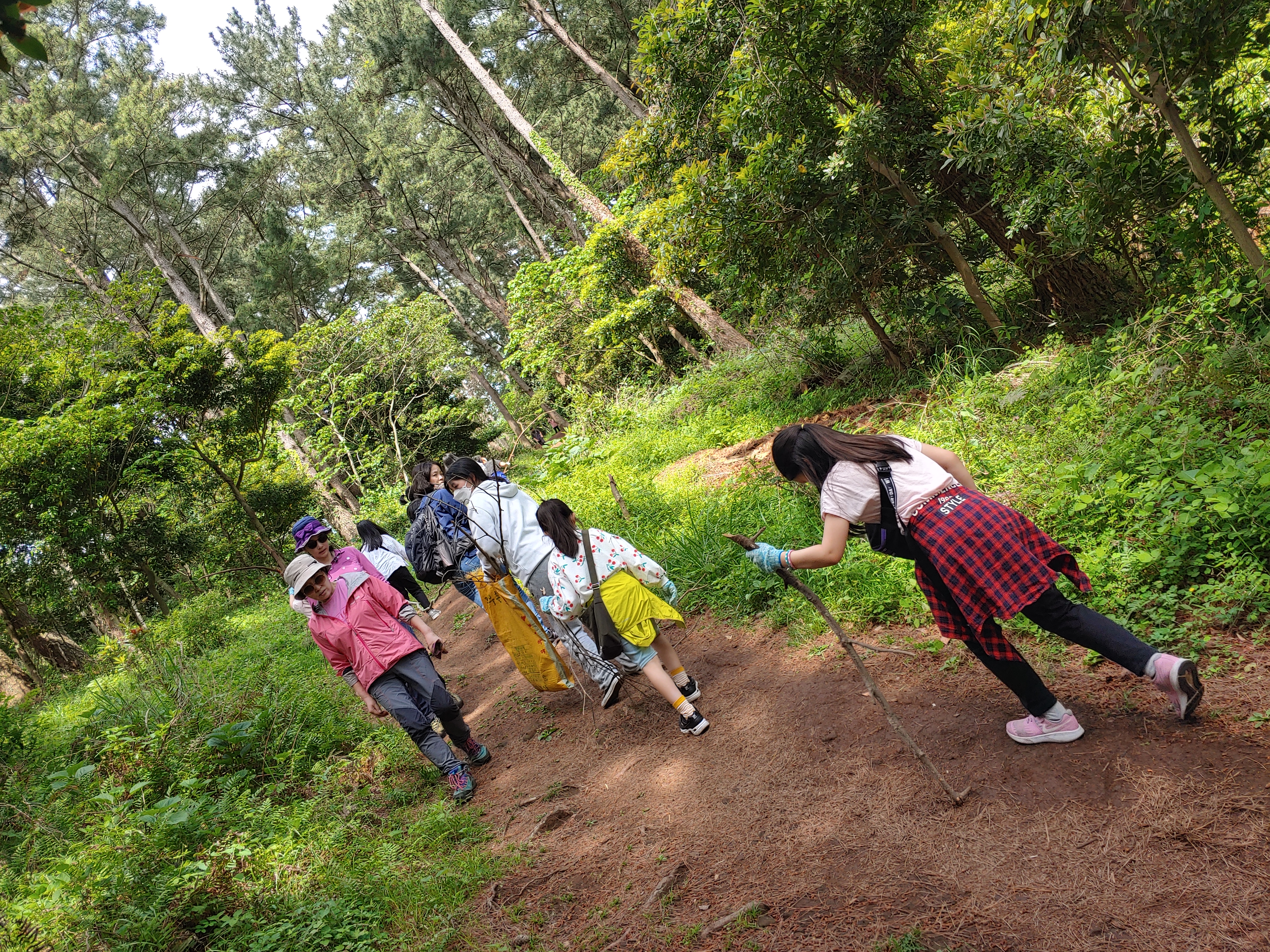 내가 찾은 신기한 막대기 옆에 식물을 심는다고 땅을 파는 시연이.