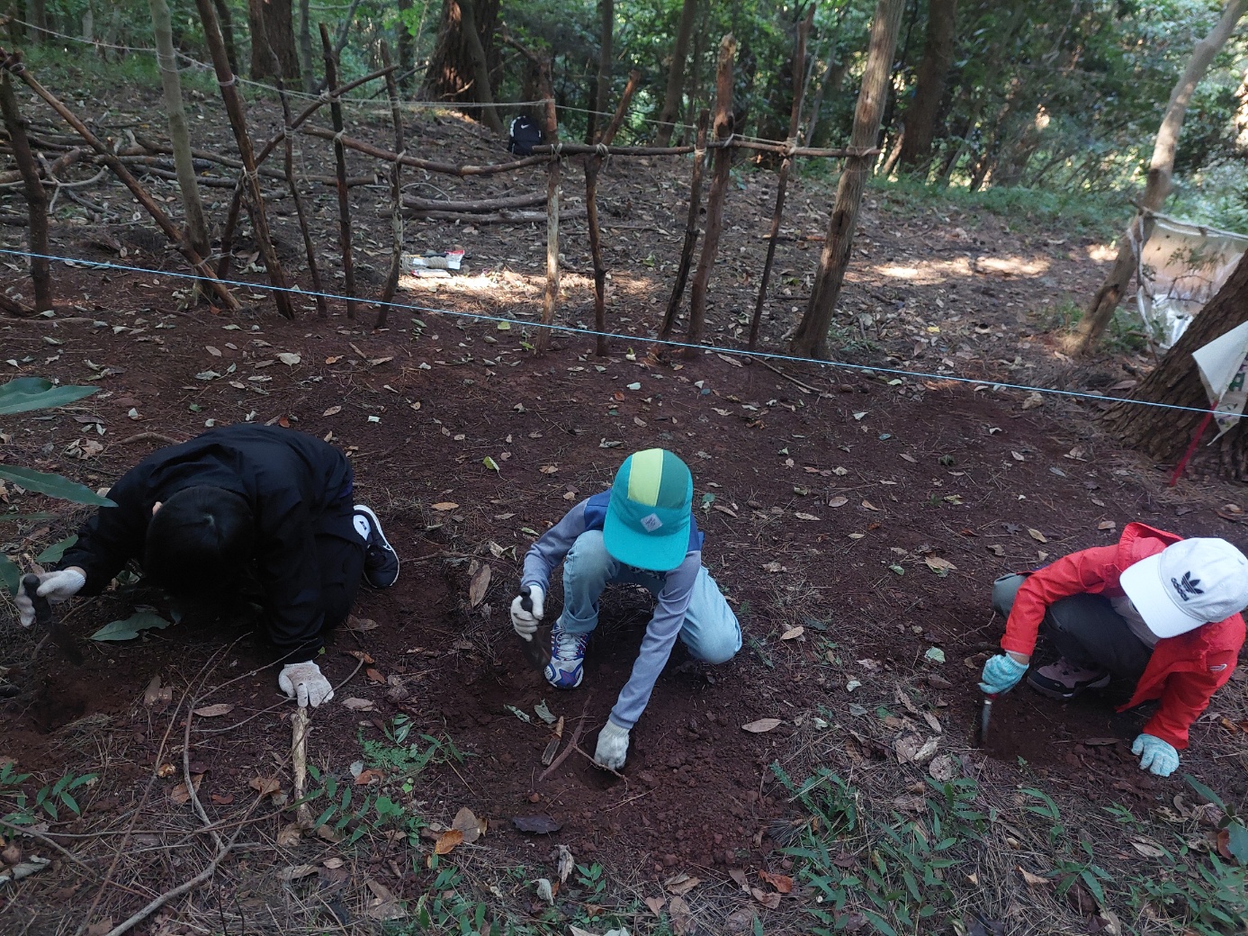 아지트 터 정리하고 땅을 파고 기둥을 세운다.