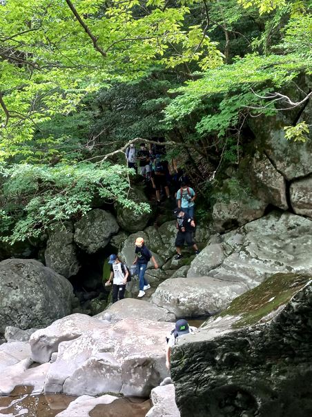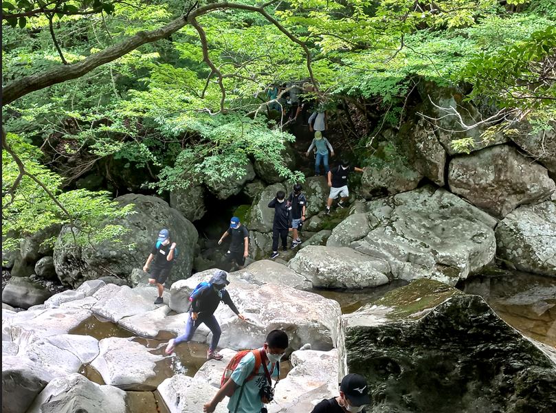 울퉁불퉁 돌길을 조심 조심 걷는다.