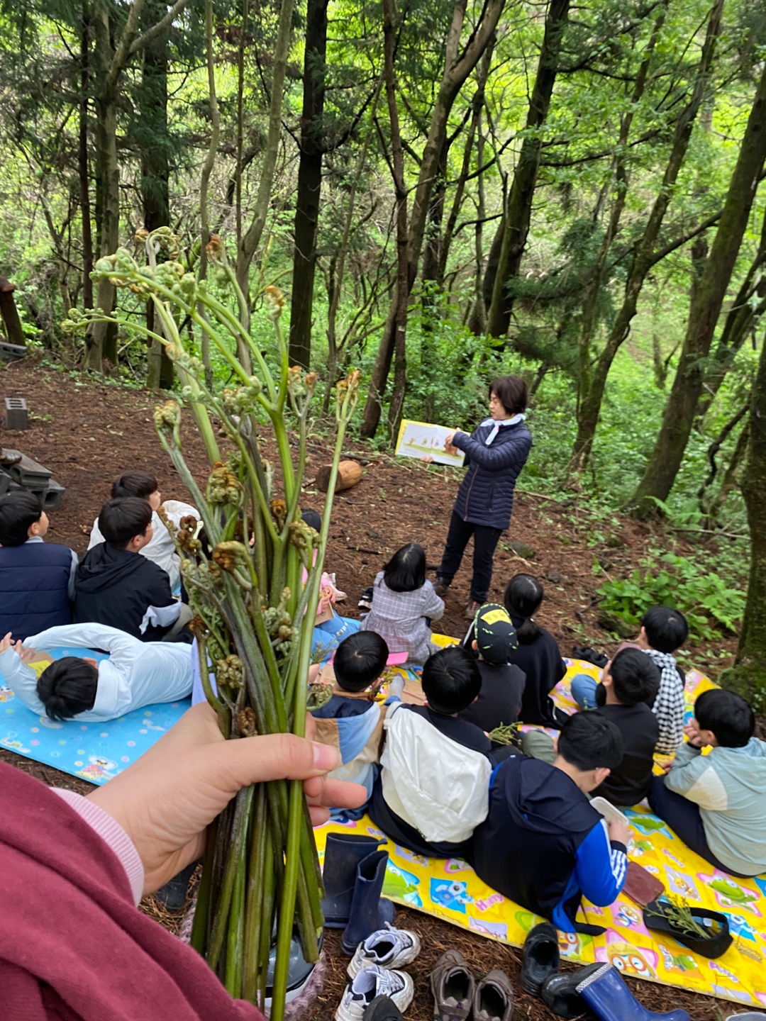 줄을 타고 올라, 고사리를 꺾은 아이들.