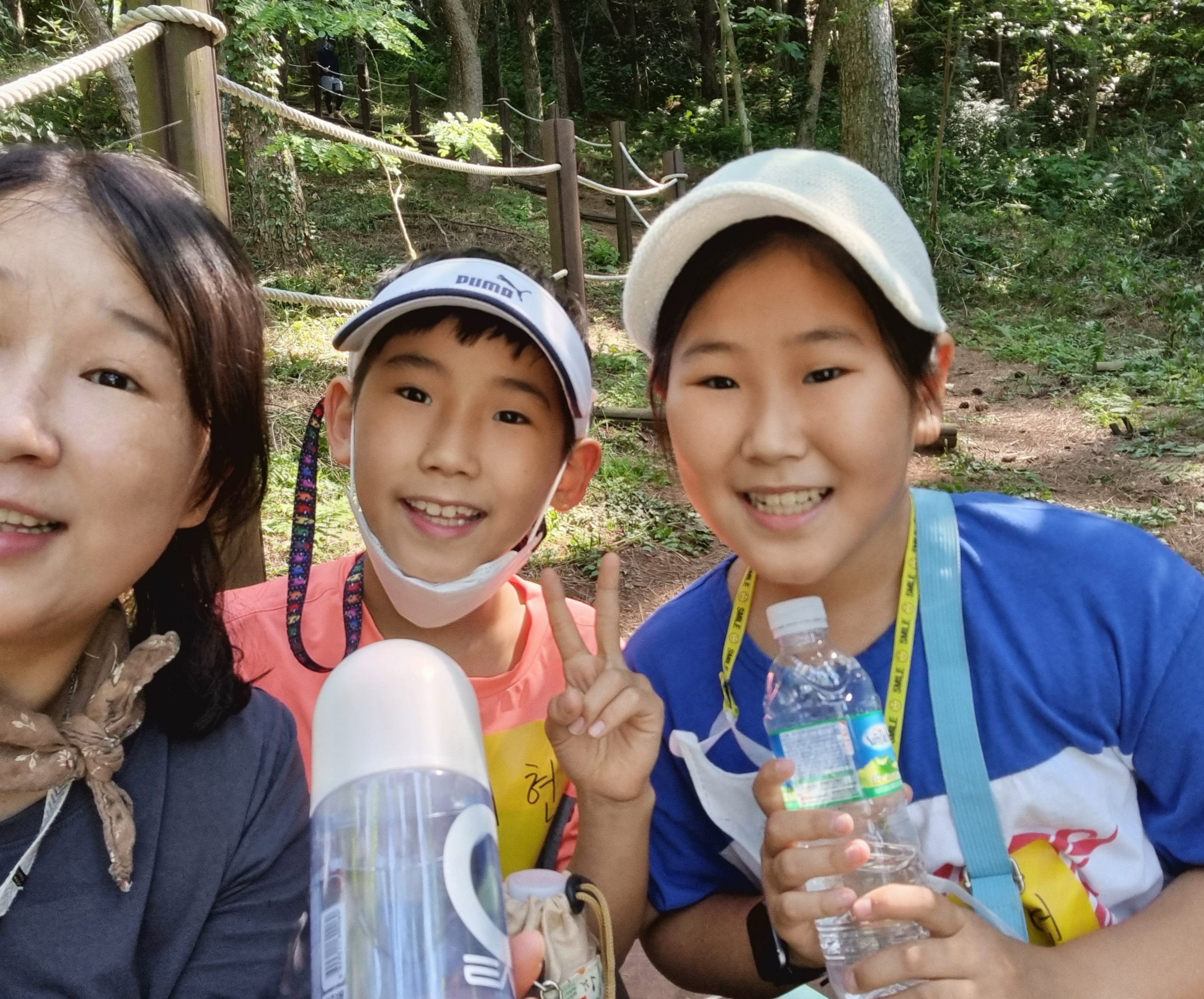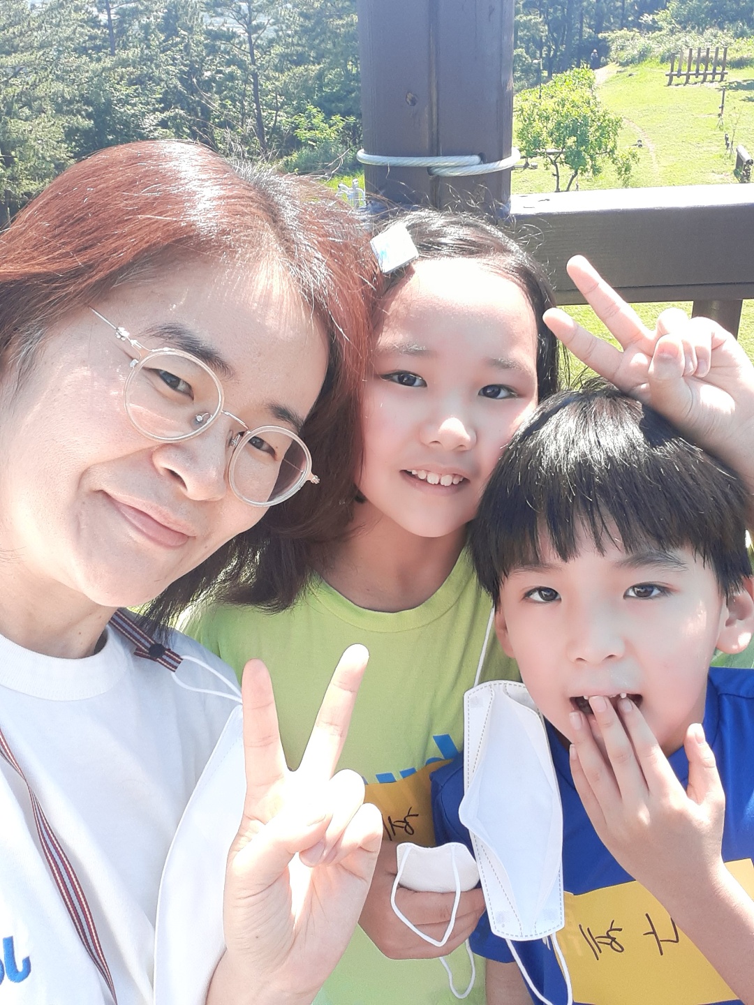 숲 안에서 가족의 모습이 빛이 납니다.