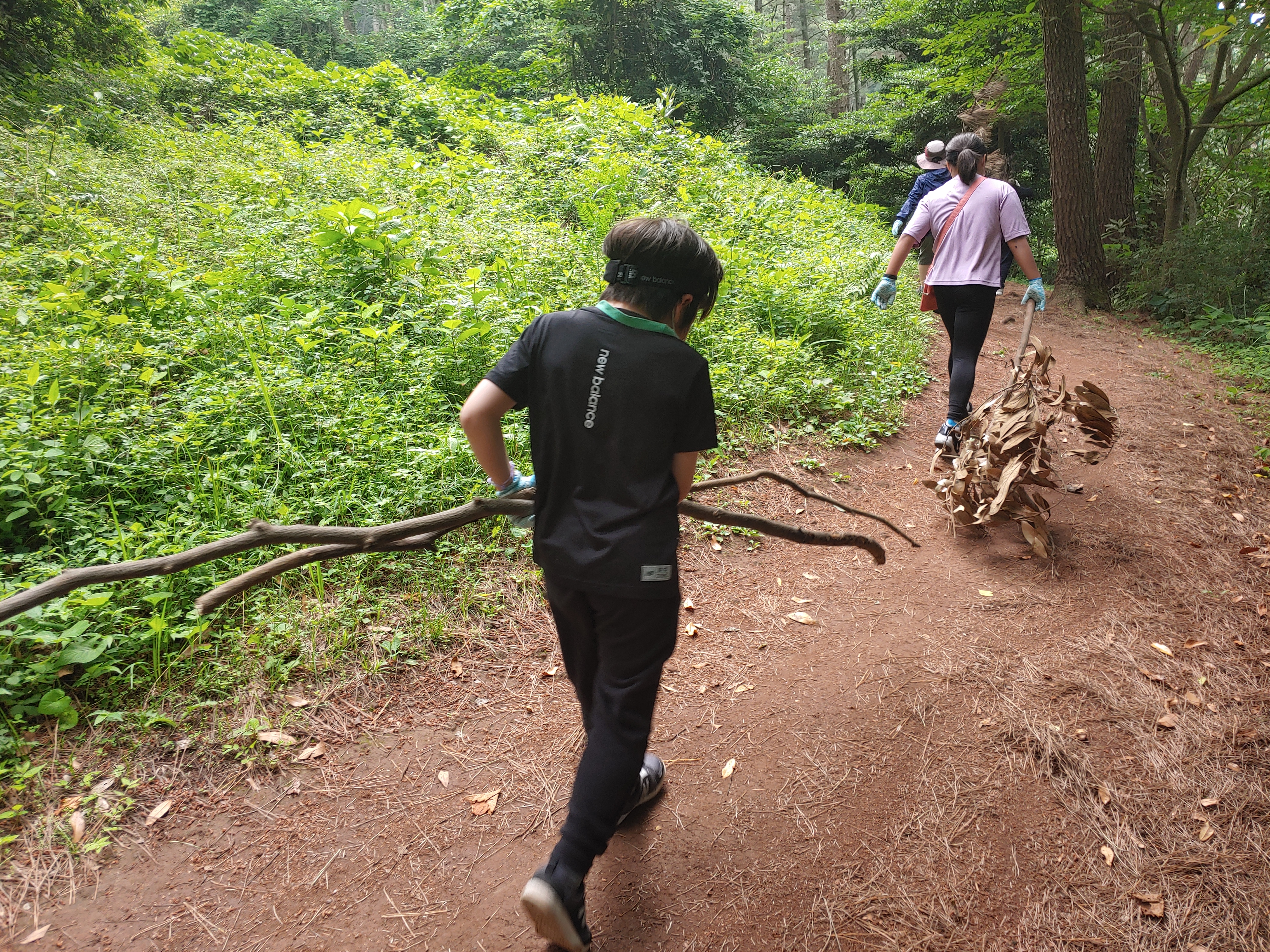 힘을 모아 기~~~인 막대기를 모아가는 성현이랑 유준이.