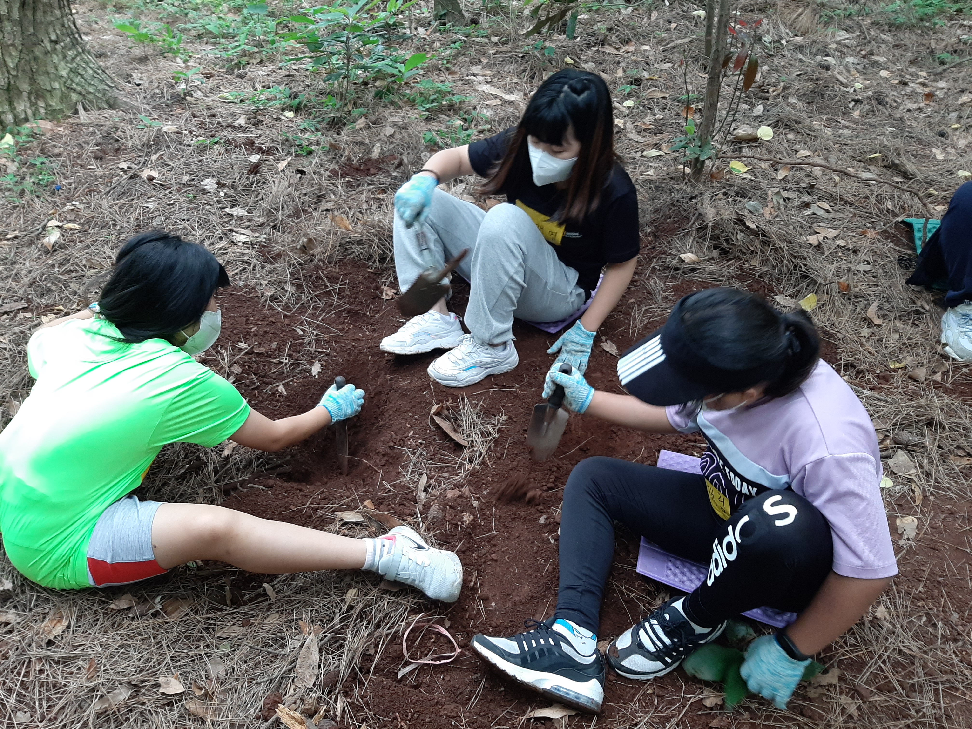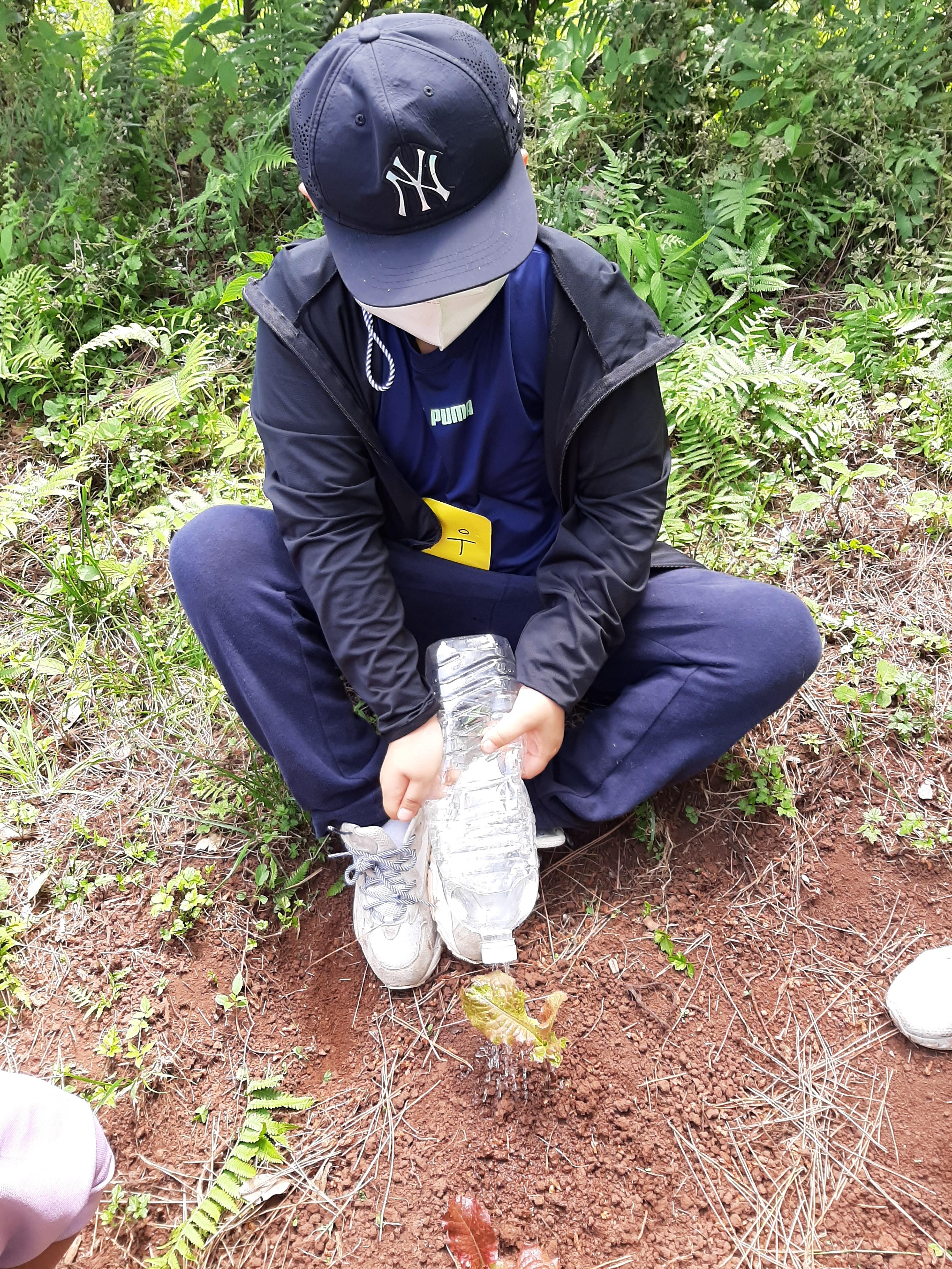 더 잘 자라라고 풀을 뽑아주는 채연이