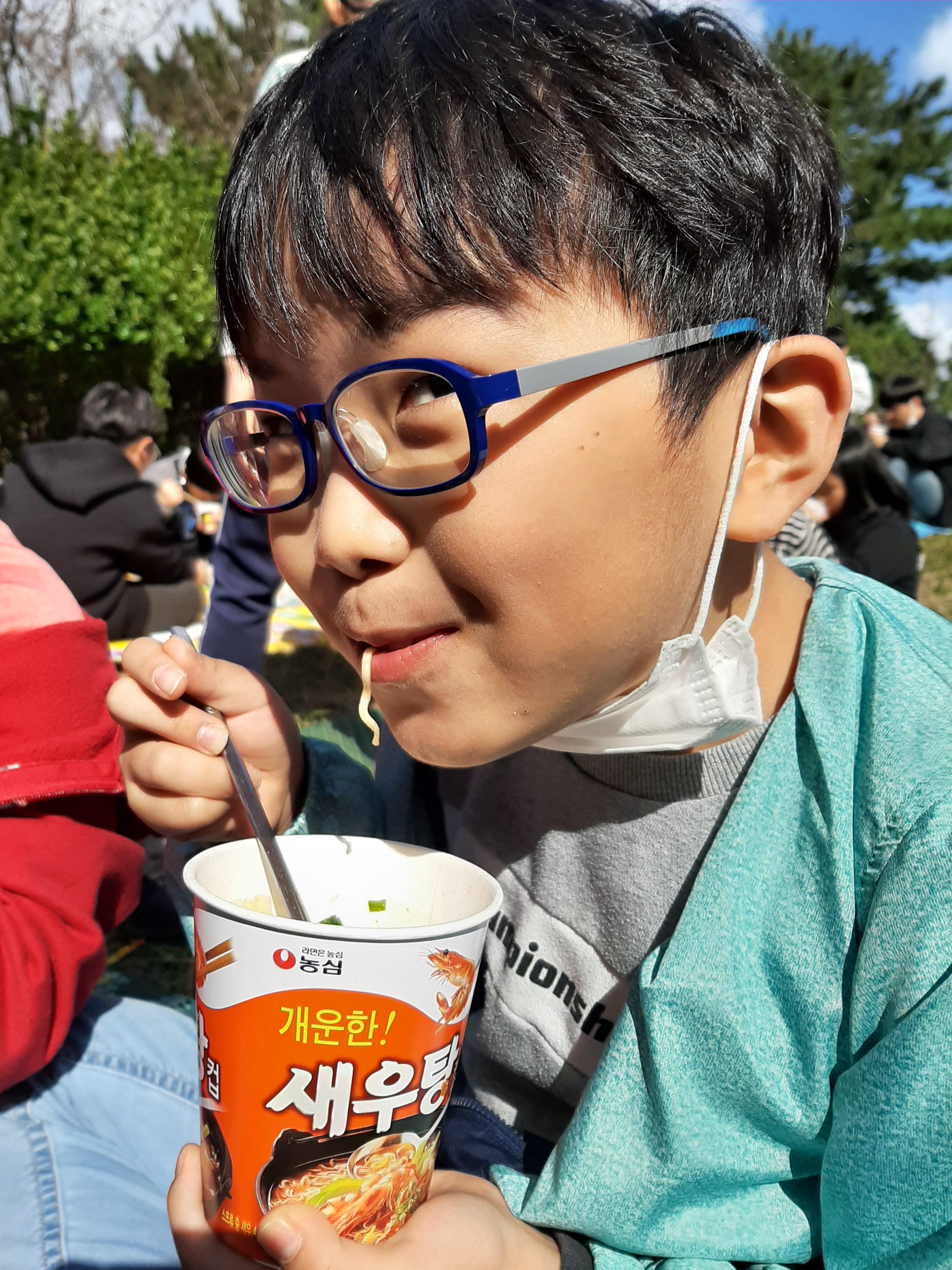 비빔밥 다 먹은 친구들은 따뜻한 컵 라면.