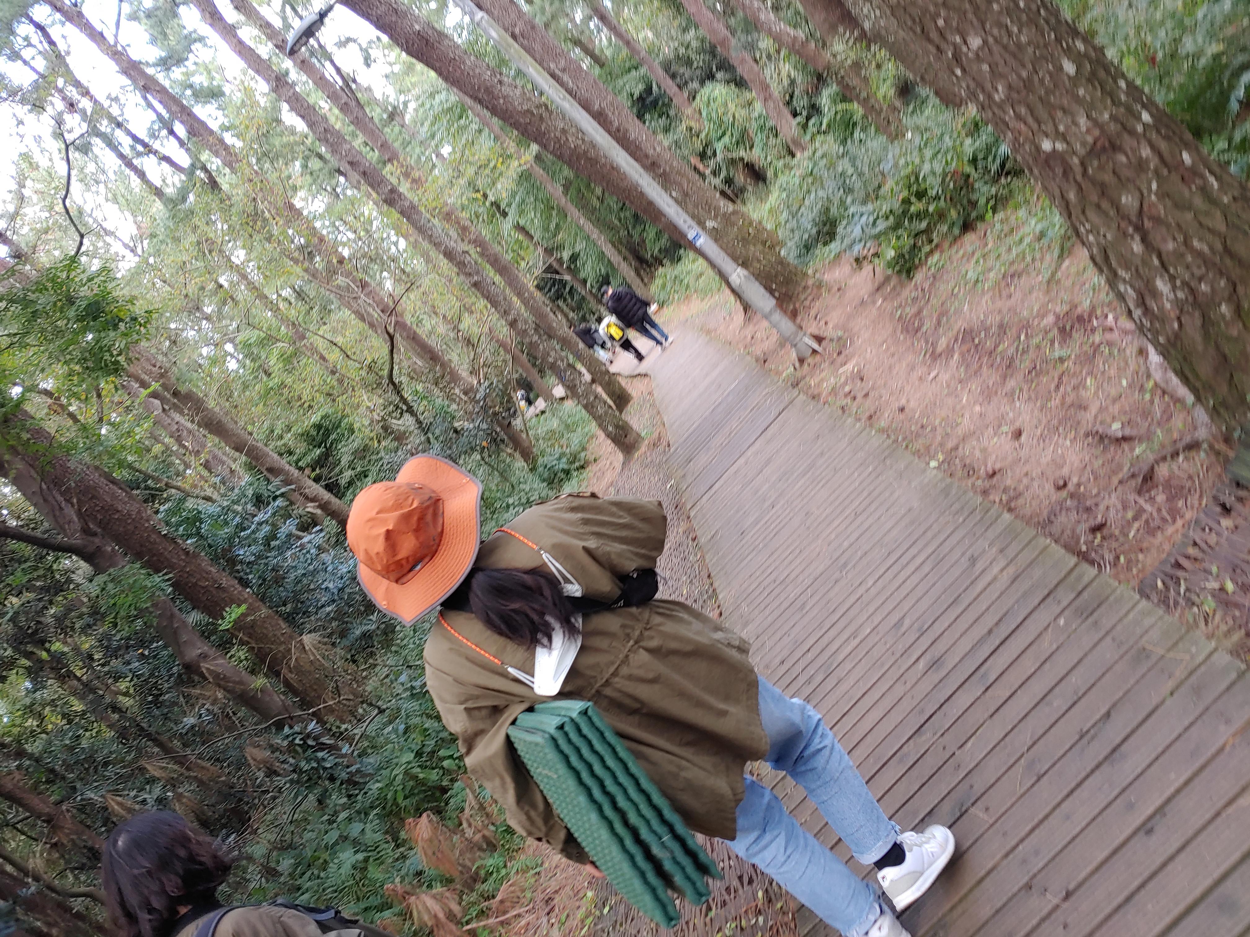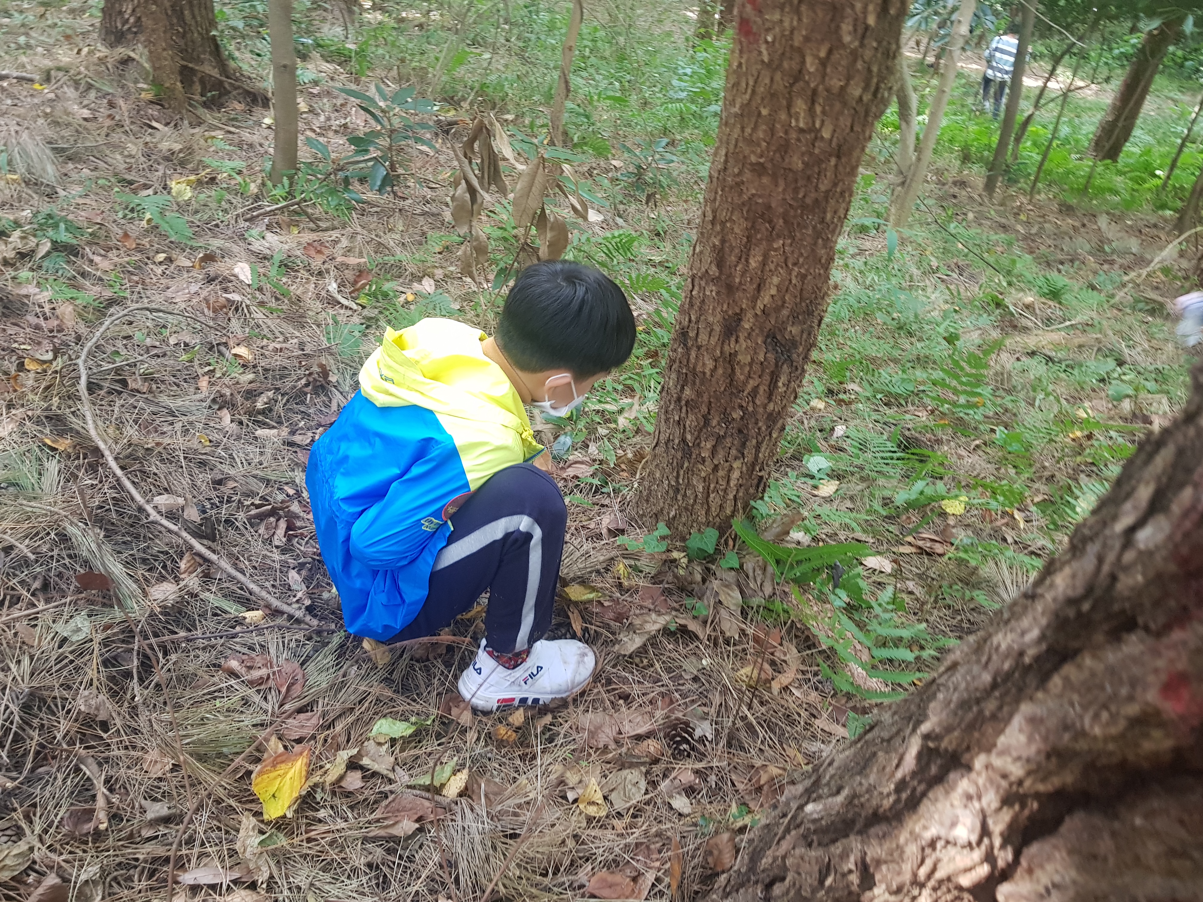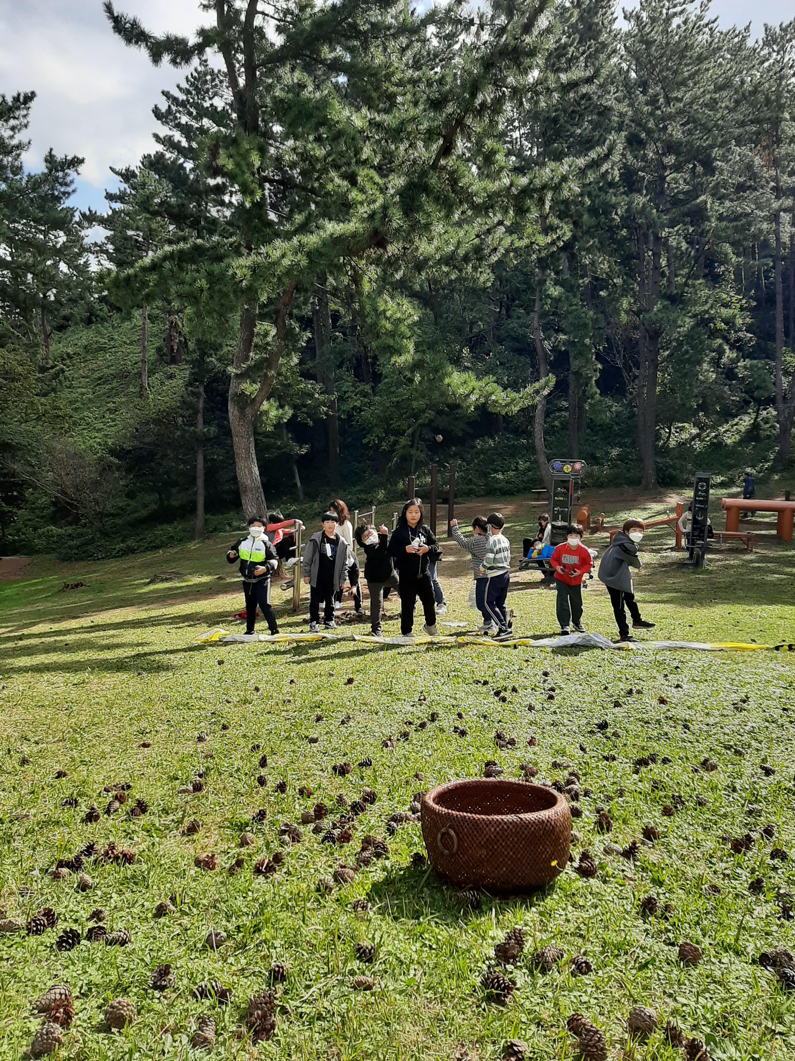 열심히 솔방울을 모읍니다.