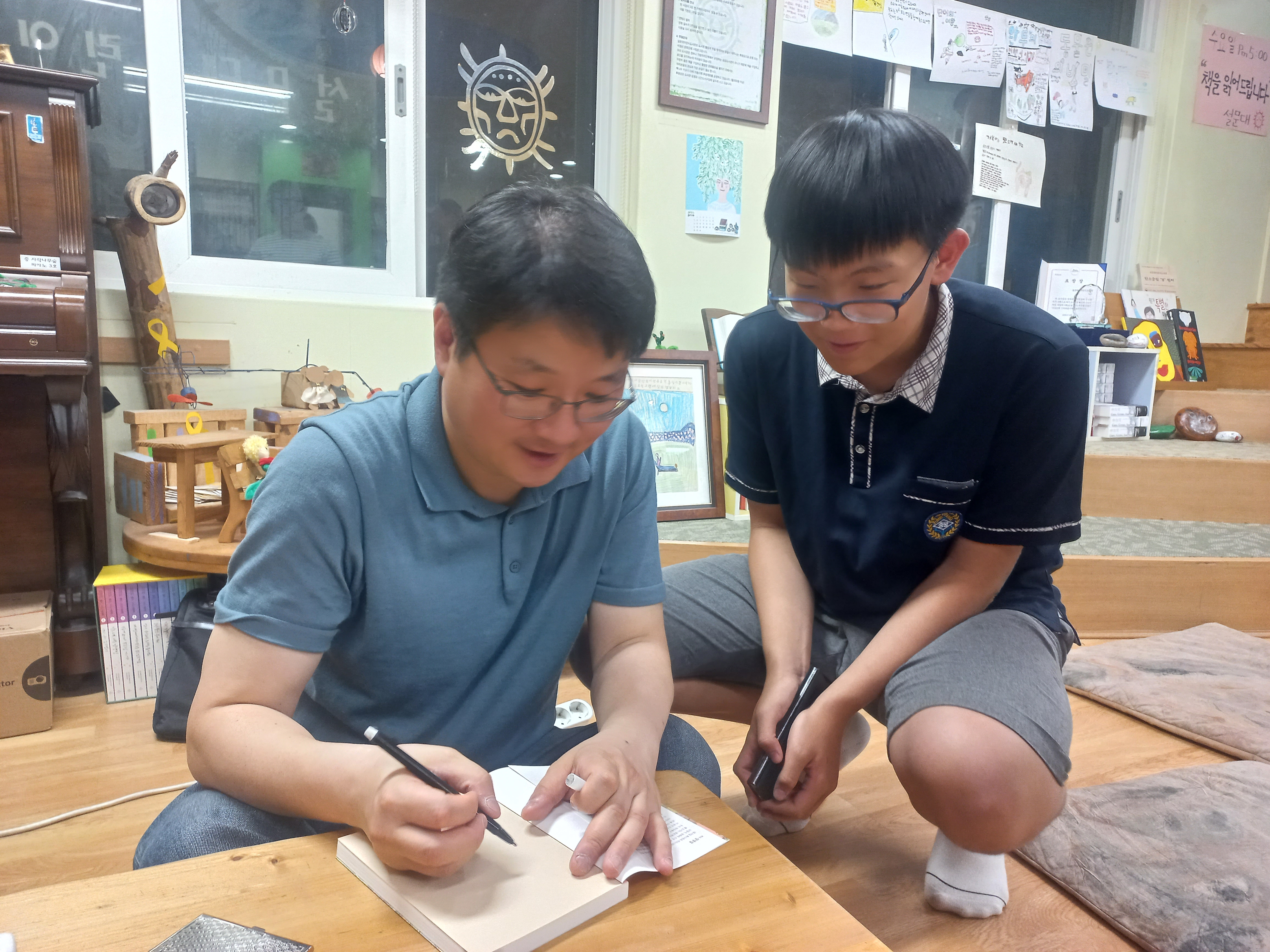 싸인을 해주며 아이들에게 덕담을 던져주시며 화이팅 해주신다.