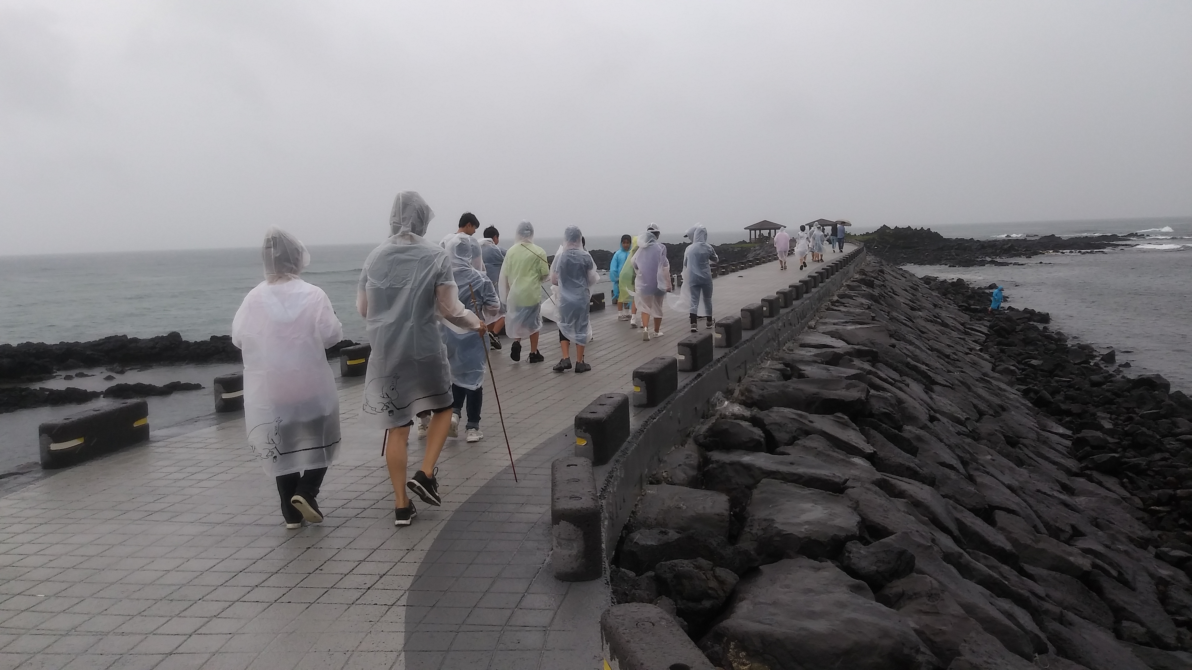 비가 오기 시작하지만 우린 아랑곳없이 간다.