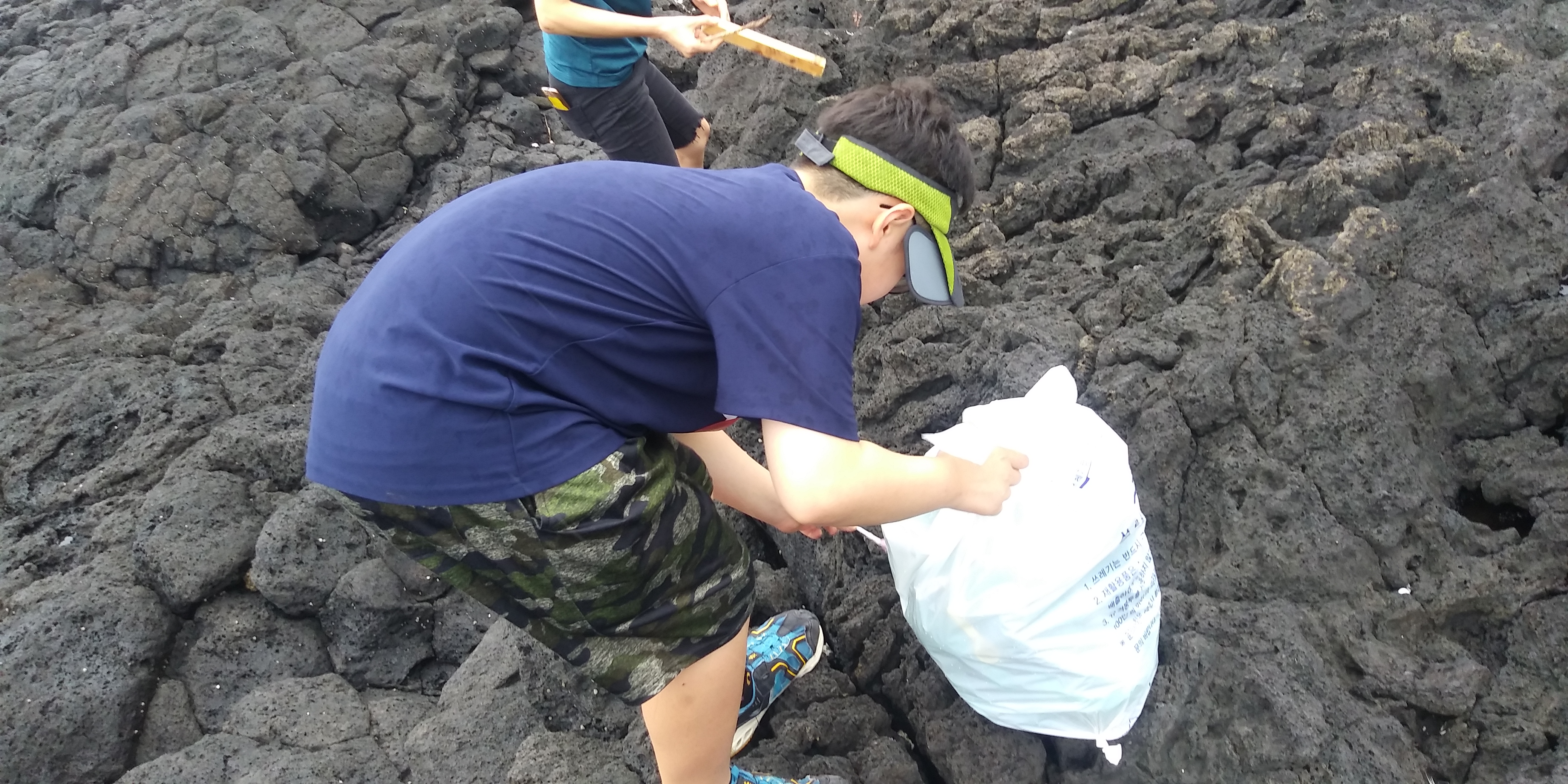 바다 사랑을 실천하며 쓰레기 줍기를 먼저했다.
