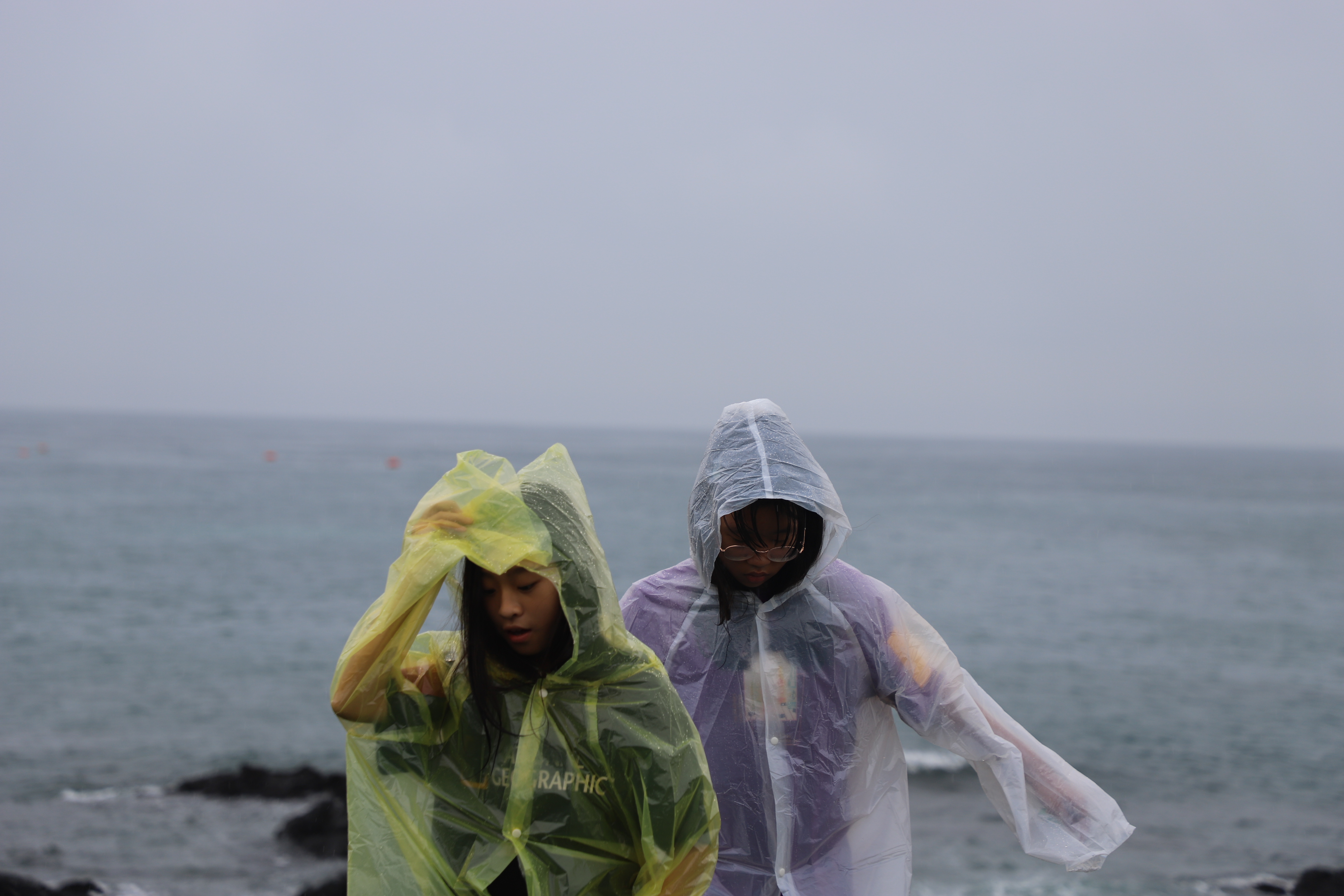 비옷으로 무장을 하고...