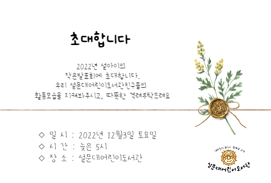 | <휴관 안내> 외부 행사 관계로 휴관 합니다. (0) | 2022.11.05 |