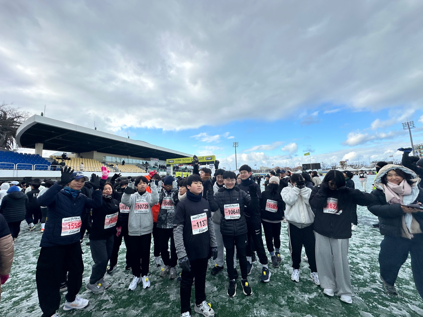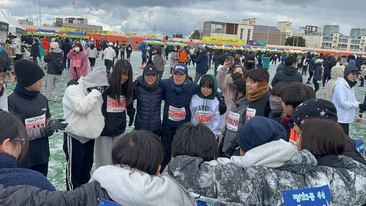 달리기 전에 우리의 마음을 모아서 화이팅하며 달린다.