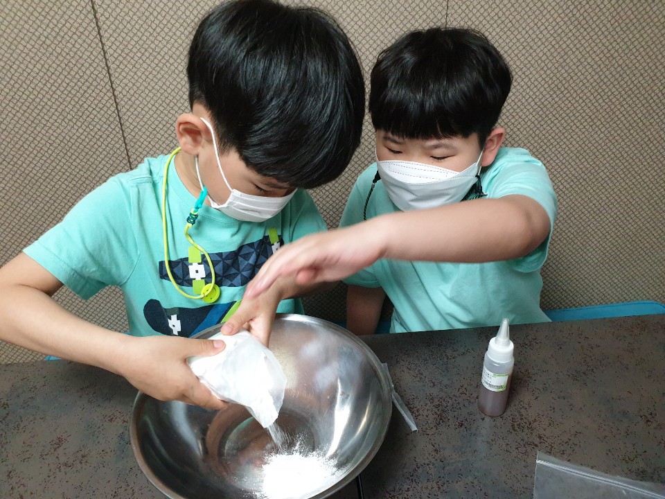 형제가 사이좋게 샴프바를 만드는 모습입니다.