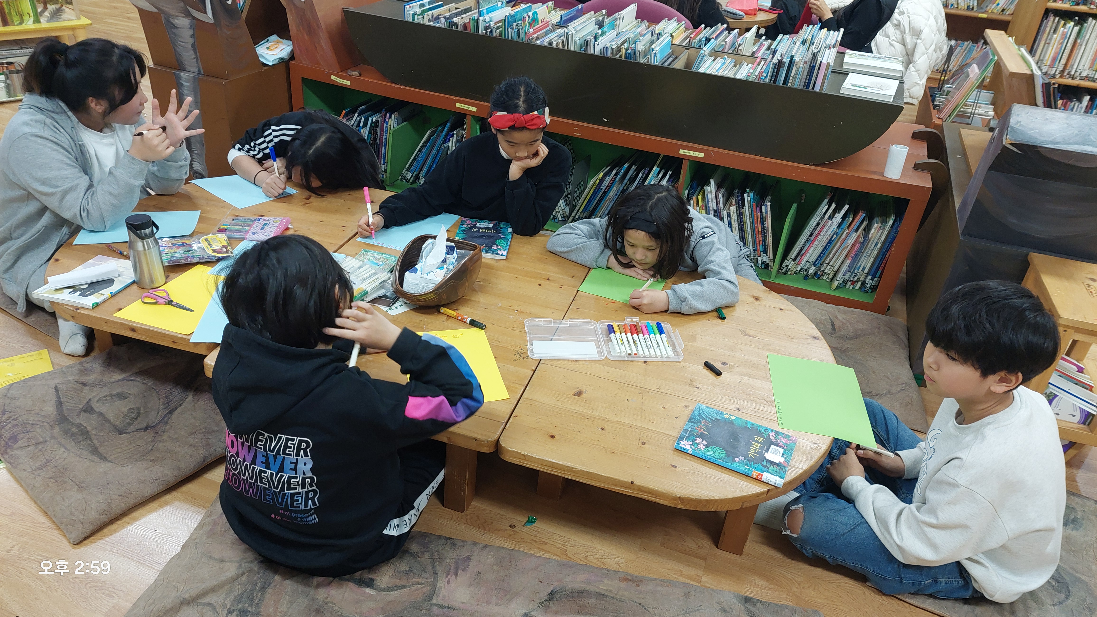 어린이가 사서인, 어린이 사서단이 설문대 어린이 도서관에 있습니다.